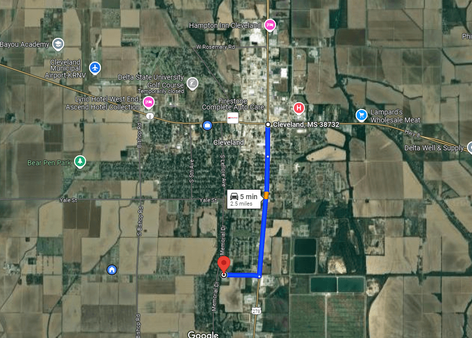 Introducing a 5.55± acre lot in the city limits of Cleveland in Bolivar County, MS. Currently, the land is in row crop production, but it could be used as residential or commercial, pending city approval. The land offers 190’ of frontage on Laughlin Road and is situated directly across from Helena Chemical Company.