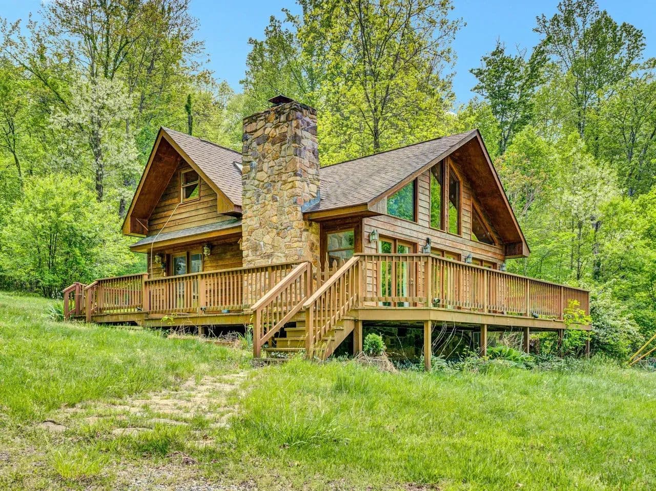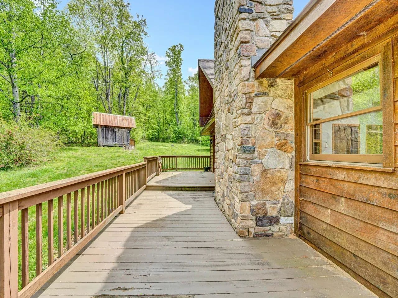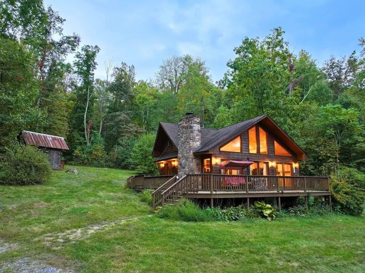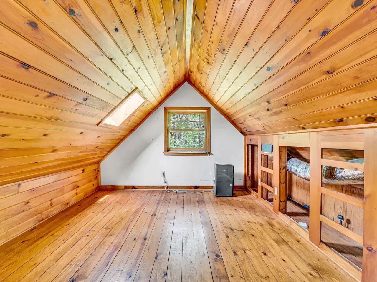 The cozy log cabin boasts rustic charm with warm wood finishes, an open living space, and a spacious loft perfect for additional sleeping quarters, a reading nook, or extra storage. Step outside onto the wraparound deck and take in views of the surrounding forest, with the soothing sound of the creek nearby – an ideal setting for morning coffee or evening stargazing.