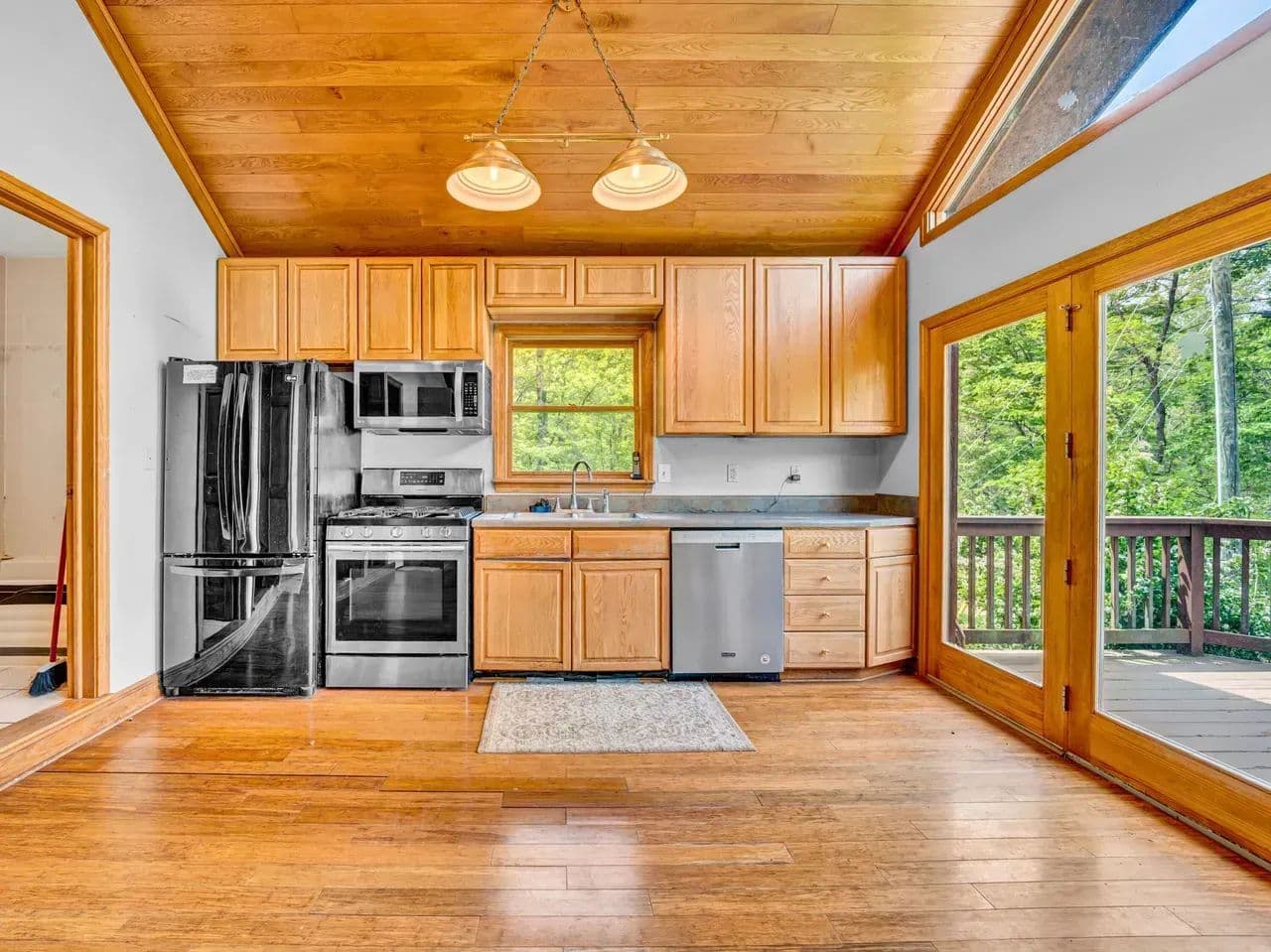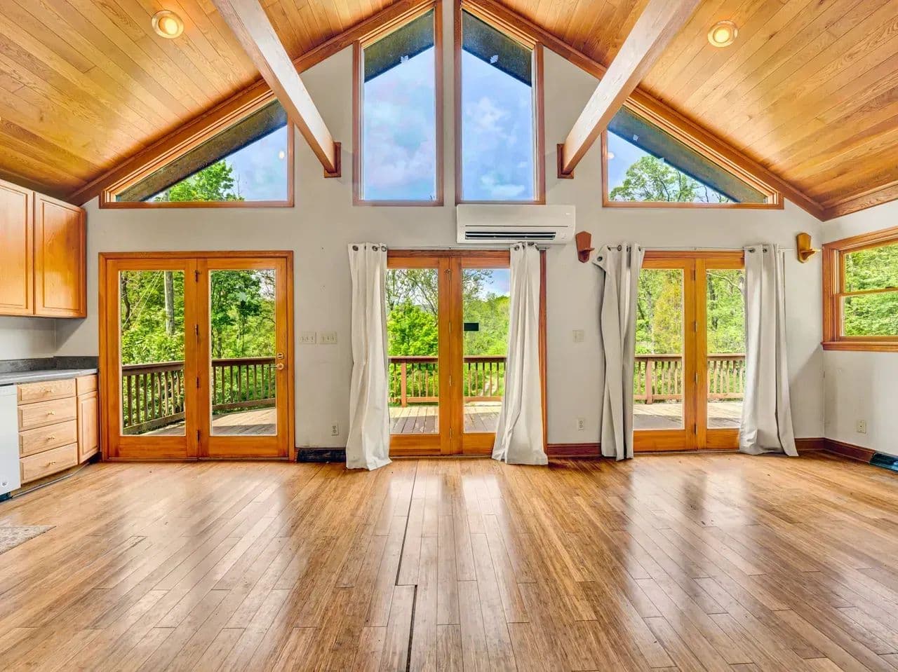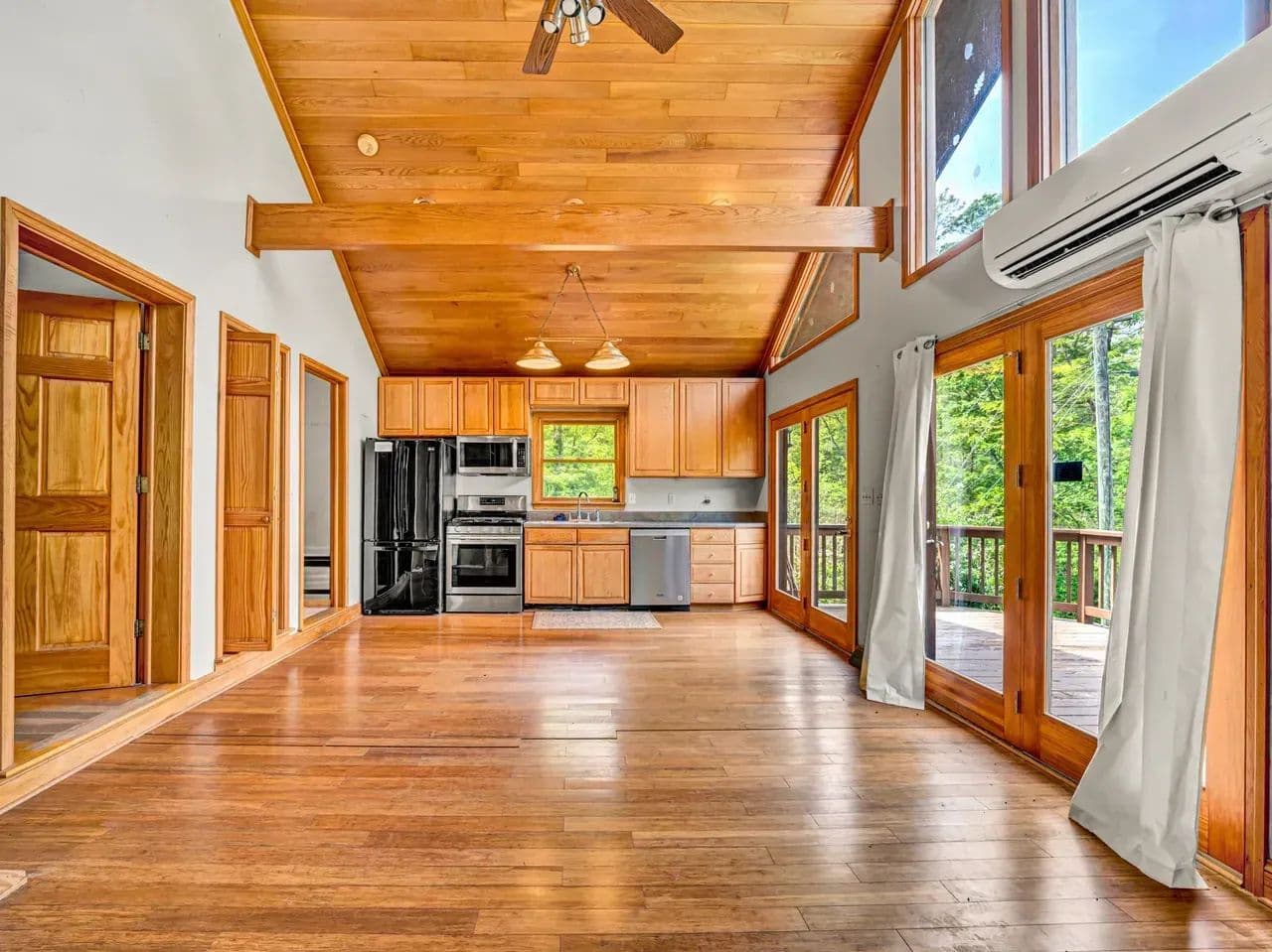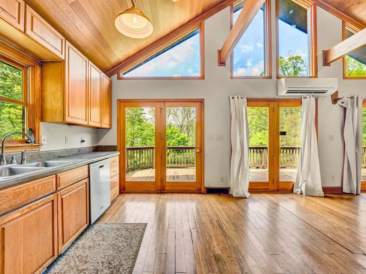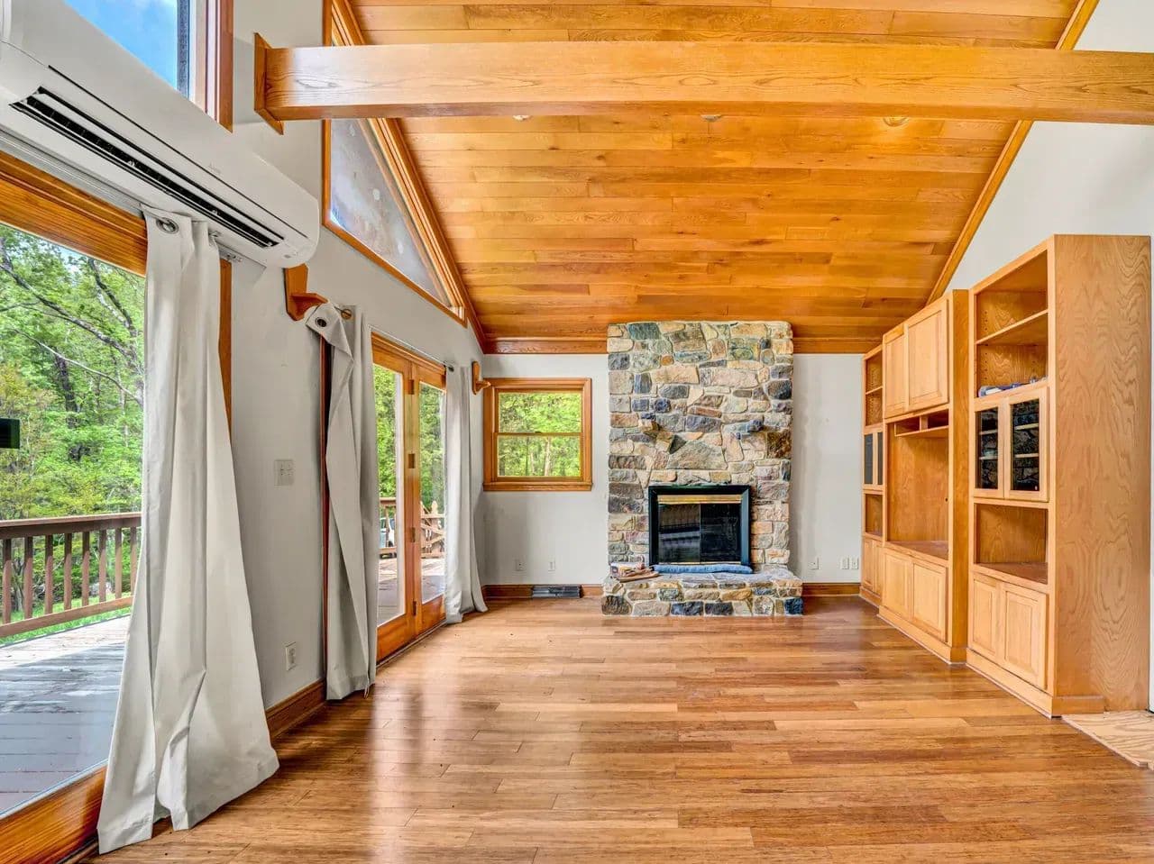 The cozy log cabin boasts rustic charm with warm wood finishes, an open living space, and a spacious loft perfect for additional sleeping quarters, a reading nook, or extra storage. Step outside onto the wraparound deck and take in views of the surrounding forest, with the soothing sound of the creek nearby – an ideal setting for morning coffee or evening stargazing.
