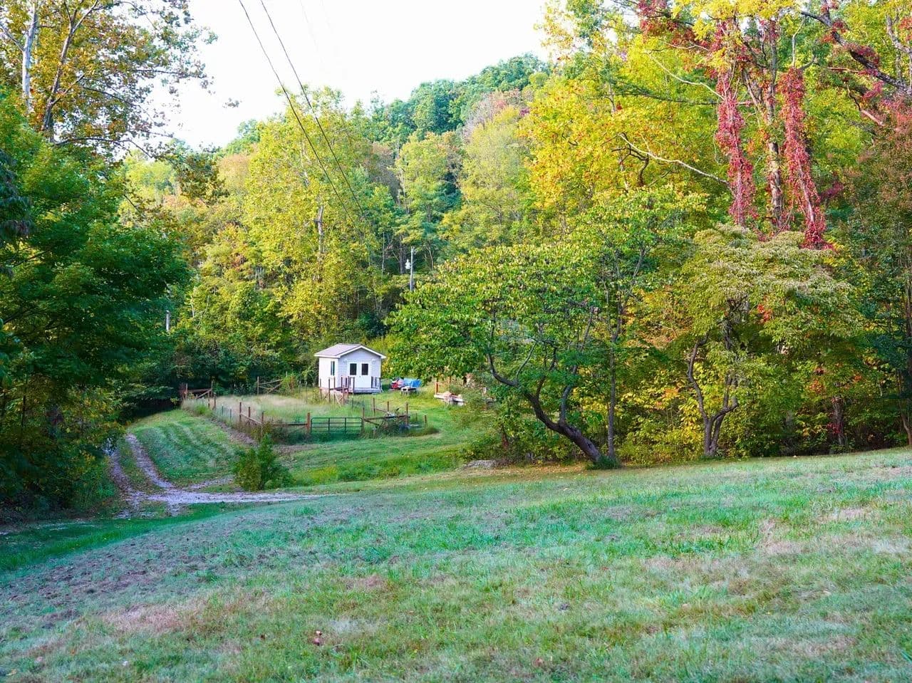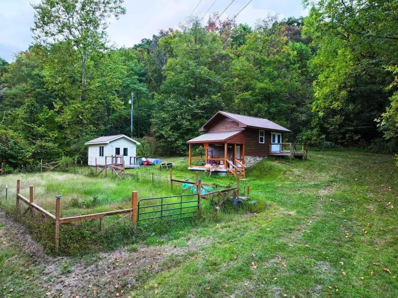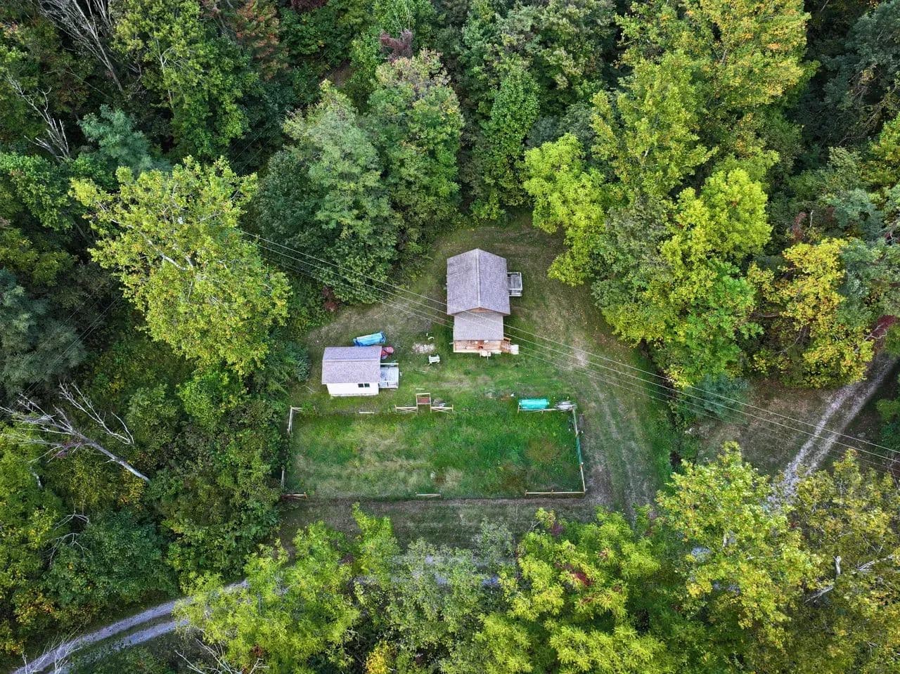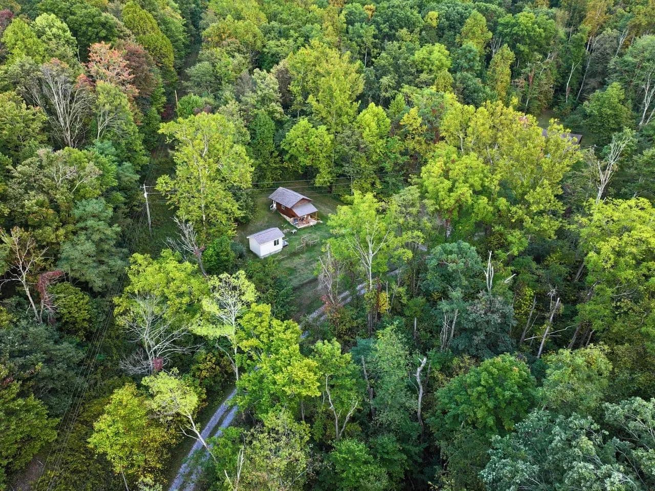 Beyond the cabin, the land includes mature hardwoods – hickory, poplar, oak, and more – offering timber investment potential or long-term sustainability. A woodworking shop with a built-in air filtration system stands ready for your next project, while a ventilated root cellar beneath it supports a more self-reliant lifestyle. A fenced garden and utility shed complete the homesteading potential, giving you all the tools to grow and store your own food.