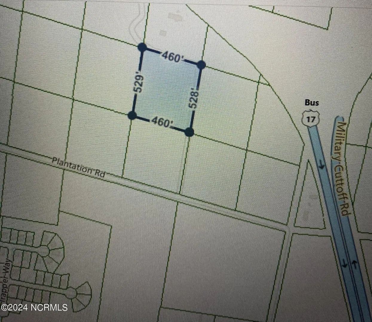 Investors take note! Over 10 acres in these 2 parcels of undeveloped, wooded land which is off the new Military Cutoff Extension. Cape Fear Public Water Authority accepted bids on 06/13/2024) for the installation sewer lines to be installed along Plantation Road. Greenview Branches located between Porters Neck and Murrayville. The 2 tracts are only being sold together.