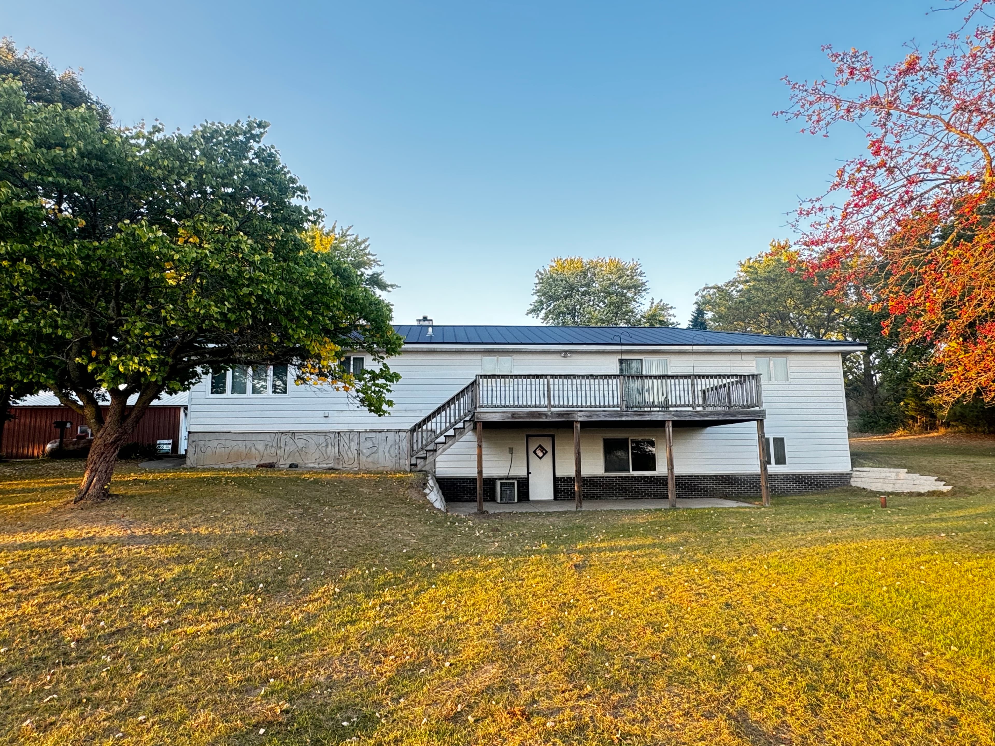 3 Bedroom Rural Ranch Home just north of Portage resting on 2 acres of land. Home has a brand new metal roof, central vac, stone wood fireplace, wood furnace for an additional heat source, hot water heat, walk out basement, black top driveway, fruit trees & plenty of space for a garden. Need extra storage beyond the 2 car attached garage there is a 24x24 shed with concrete floor and a 24x30 shed with concrete floor. The home also has fiber optics available for fast reliable internet. Enjoy watching the sun set and wildlife off the 12x25 back deck while grilling out or enjoying your favorite beverage. Large kitchen with tons of cabinets for storage & open walk out basement allows for additional rooms to add to the living space. Root ceiler for storing all those canned goods from the garden.