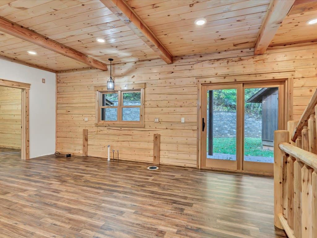 Stunning 8-bedroom, 6 full and 2 half bath luxury log home located in the sought-after Rock Harbor subdivision, offering exclusive access to Norris Lake. Spanning over 7,700 sq ft, this three-story log home showcases a stone exterior and tongue-and-groove detailing, blending rustic charm with modern conveniences. Inside, the open floor plan highlights breathtaking mountain views, perfect for entertaining.