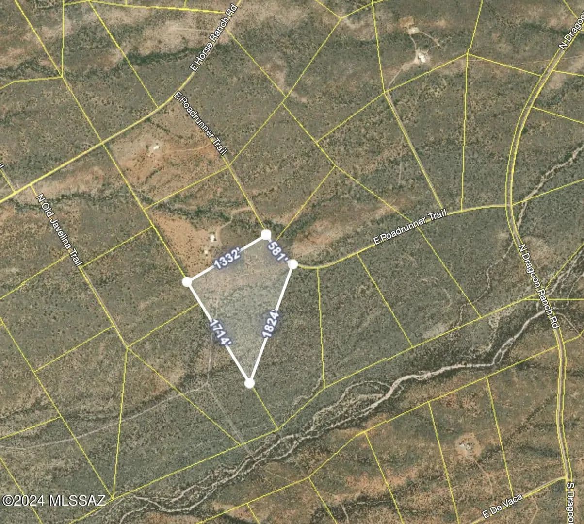 It's Roadrunner Trail. Sought after and desired for the location in the heart of Dragoon Mountain Ranch. This is prime land mostly flat and it's best use is building a home or for grazing cattle or horses. Close to the South gate, access to Tombstone and Saint David are within an easy 20. minute drive. If you are looking for prime 36 acres of flat land, you found it.