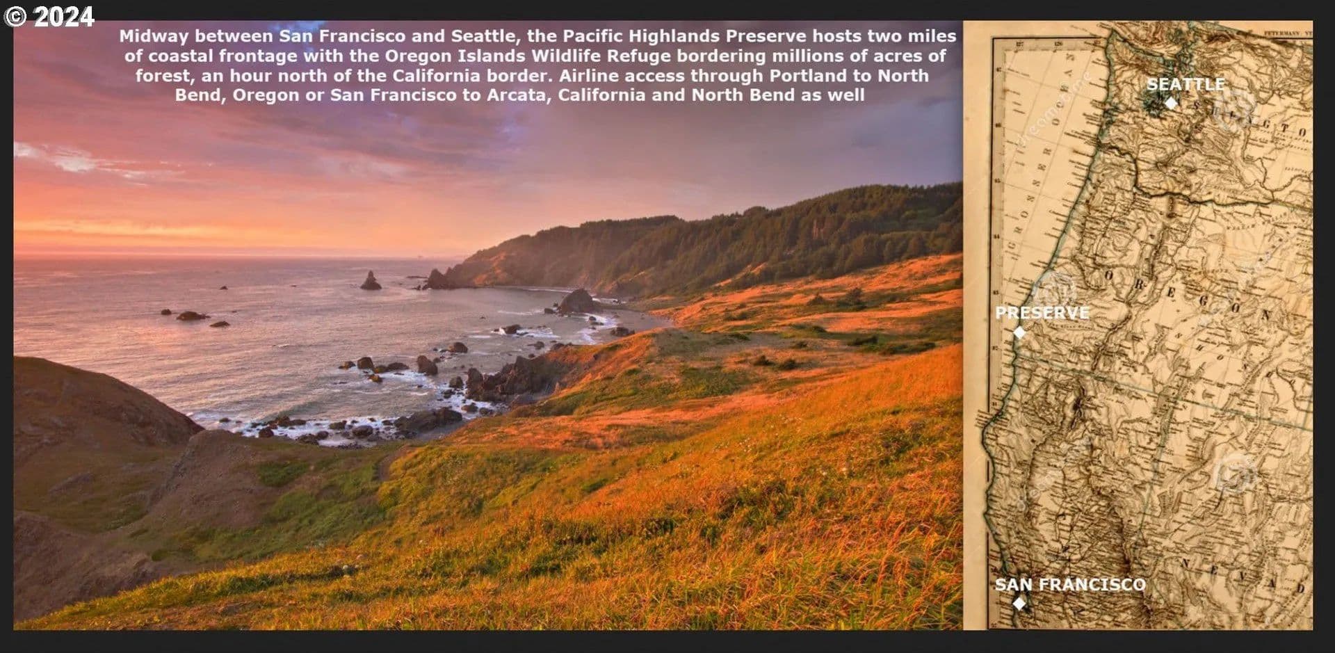 Experience ultimate privacy, seclusion, and breathtaking panoramic ocean and mountain views on the 93.88 acre property, situated along the pristine Southern. Oregon coast. This exceptional parcel is ready for its new owners and offers two home sites to choose from, or build your custom home and a guest home. Nestled within a private wildlife preserve, it borders millions. of acres of National Forest and the Oregon Island National Wildlife Refuge. The newly developed upper building site boasts spectacular uninterrupted vistas. Call today for a private tour of this incredible opportunity to own a slice of Paradise. Deed Restrictions apply.