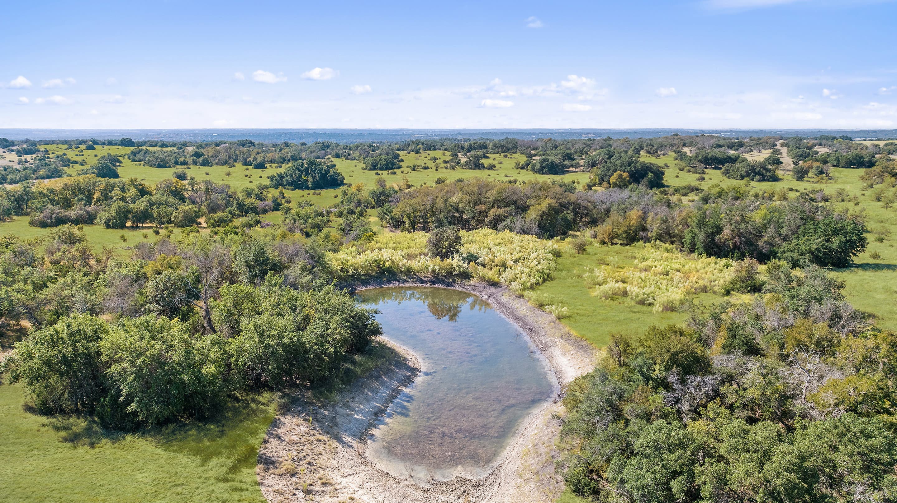 The topography is gently rolling with 100 ft elevation change. Several points offer long range views. The ranch features a diverse landscape with well wooded areas of oak, elm, mesquite and cedar trees and lush native pastures. There is over one mile of Miller Branch Creek flowing through the property. A dam backs up a nice lake that is around 2 acres, when full. The lake is stocked with bass and catfish. There are three other ponds scattered around the ranch. The majority of the ranch is low fenced that is fairly new. The north boundary and half of the western boundary is high fenced. Wildlife includes deer, turkey, dove, hogs, and varmints. Axis, red stag, and aoudad have been spotted on the ranch.
