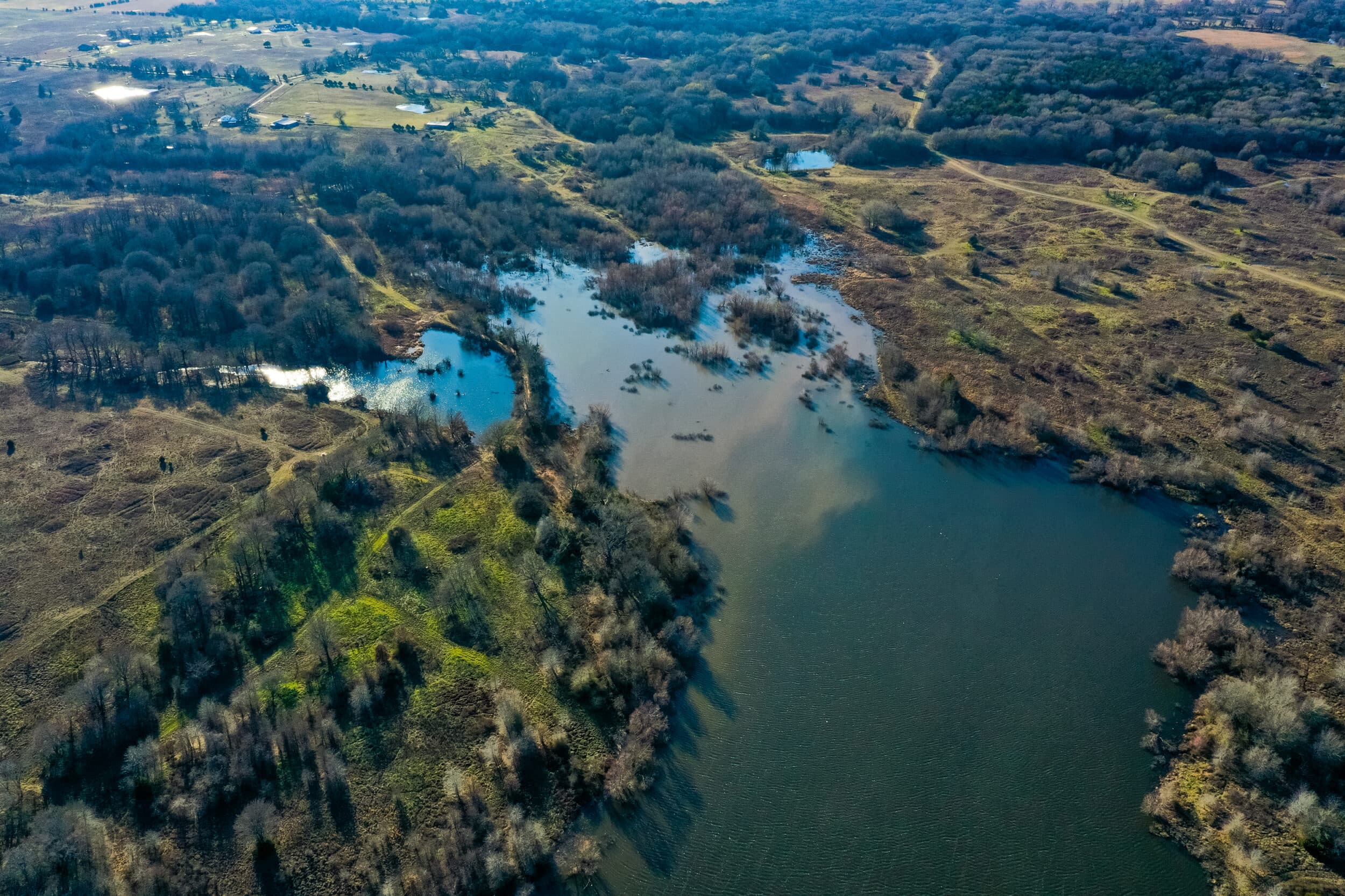 Twin Creeks Ranch is located in the fast developing area near the newly formed Bois d'Arc Lake and is one of the largest contiguous land holdings in all of Fannin County, Texas. The ranch boasts its own private, onsite +/-85 acre lake, along with numerous other managed wetlands and ponds, making it one of the premier waterfowl hunting properties in all the area. Land Spanning +/-976 contiguous acres, Twin Creeks Ranch currently sits as a testament to years and years of wildlife management, habitat enhancement and a deep respect for the land, water and their inhabitants. With that said, the property is also primed for commercial and/or residential development. Sitting only 1 hour from downtown Dallas and only 7 miles from the newly formed Bois D’arc Lake, and as the greater Dallas metroplex grows and activity at the lake increases, this property could be ripe for development of residential and/or commercial endeavors.