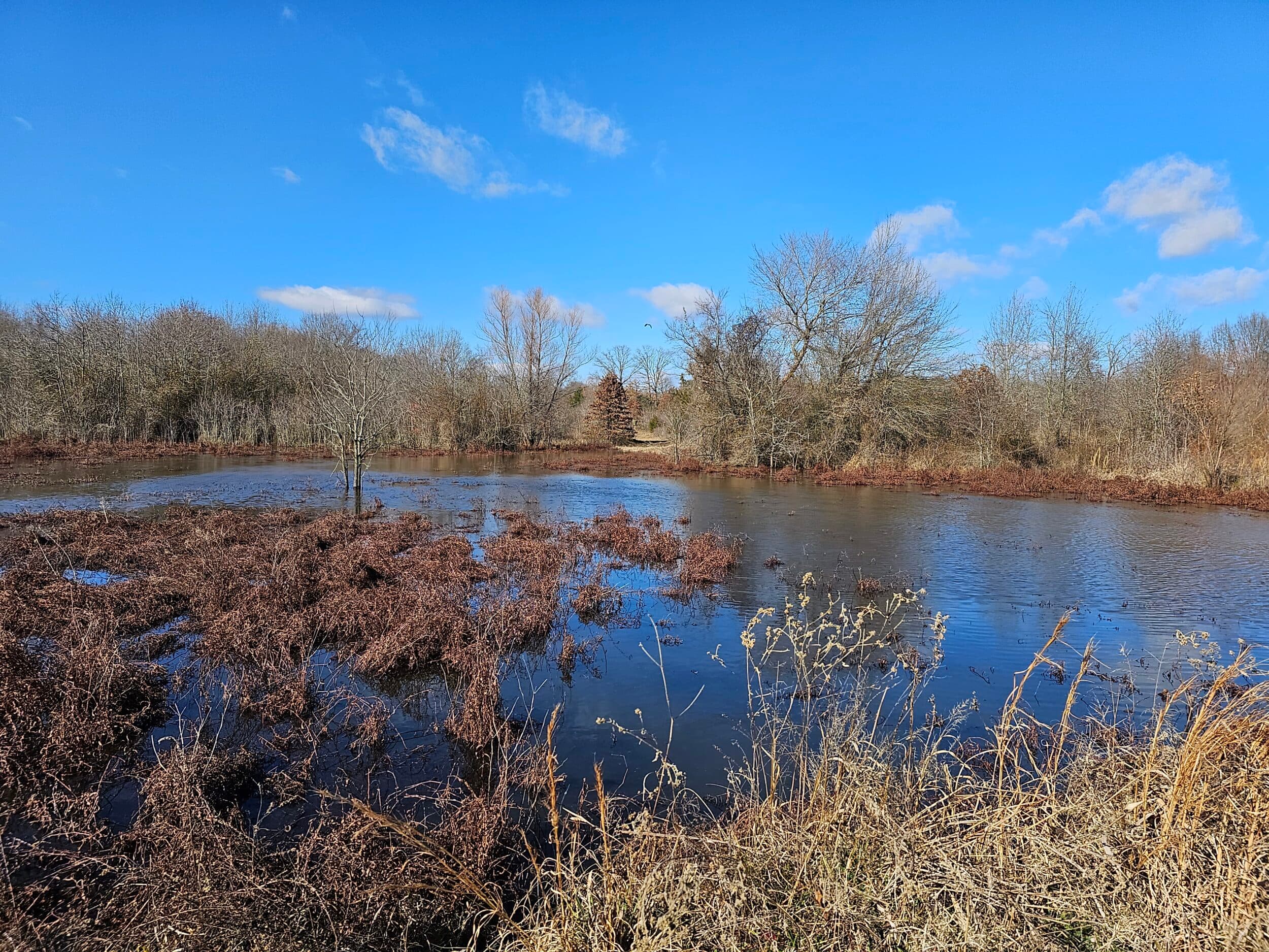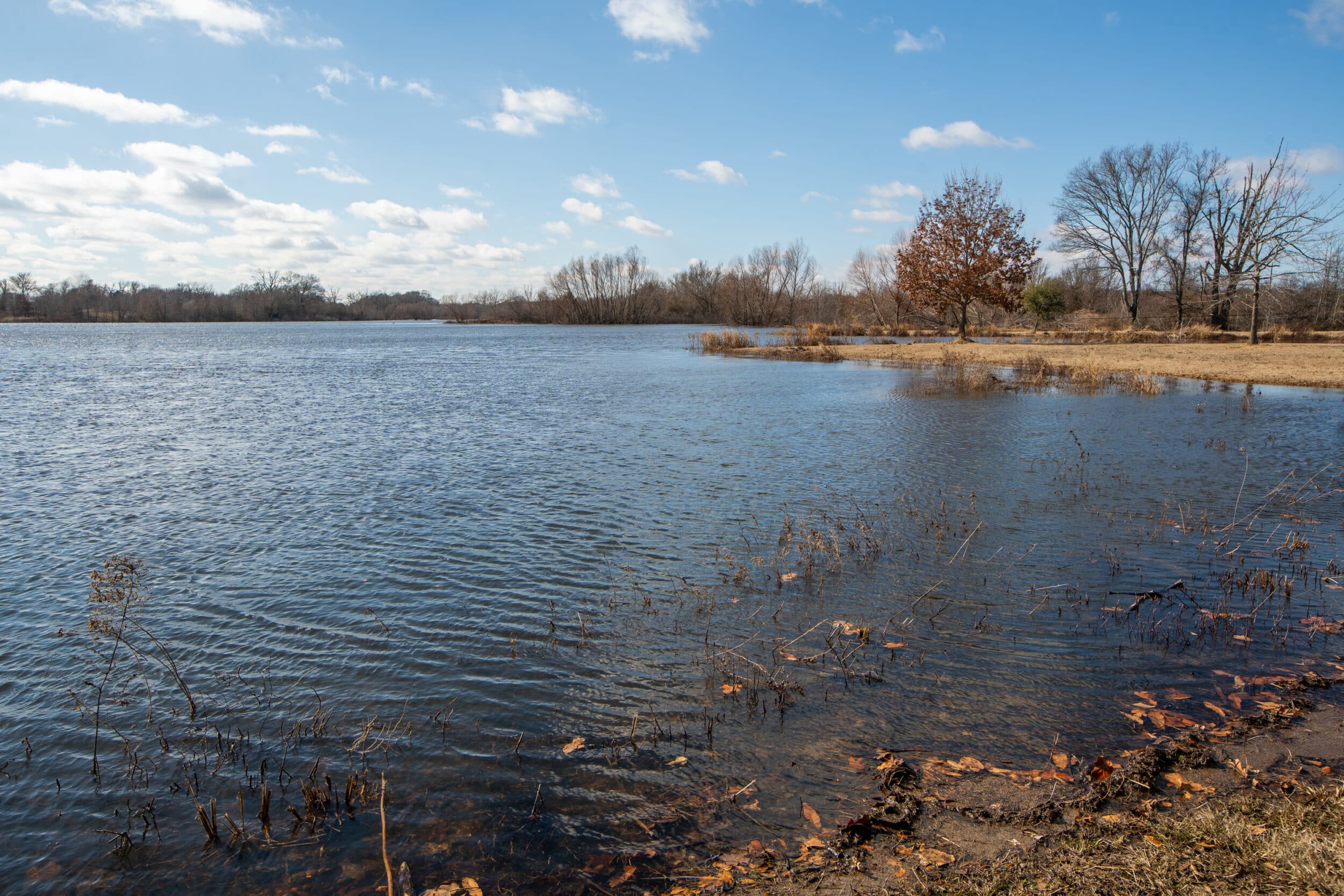A number of differing variations of large, mature oak trees dot the landscape alongside cottonwoods, cedars, elm and sycamore trees. While some of the oak trees reach hundreds of feet into the air, the specific water oak variety plays a integral role creating the wonderful duck hunting as it produces a small acorn that the ducks crave. Each water oak tree typically produces 2500 pounds per year of these small acorns, which naturally flow into the wetlands and become a natural food source for migrating ducks.