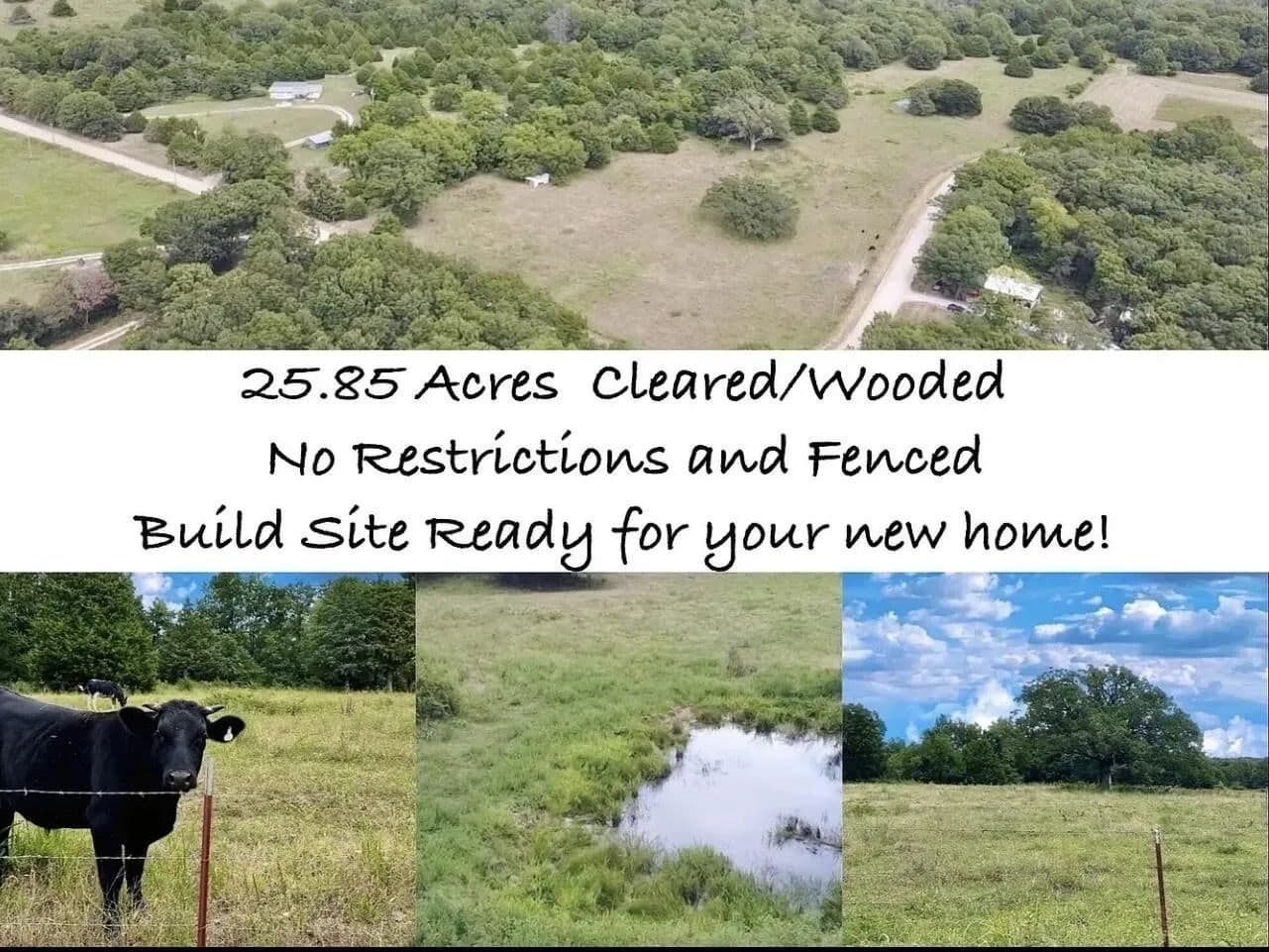 Bring an OFFER!!! Here is your chance to own a beautiful piece of property in Collins Missouri. With no restrictions, this 25.85 Acre property is ready for its new owners! With already having a part of the land cleared for you, you can start to plan on building your dream home!! This location is quiet and peaceful. 9+ of the acreage is cleared, and consists of 2 ponds which stay full all year round. Have cows or other animals? The 9+ acres is fully fenced and ready for them! The rest of the 16+ acres can be conjoined and fully fenced with a little fencing left to complete. Electricity is at the road and will be simple to have transferred over. Call today for your showing or questions!