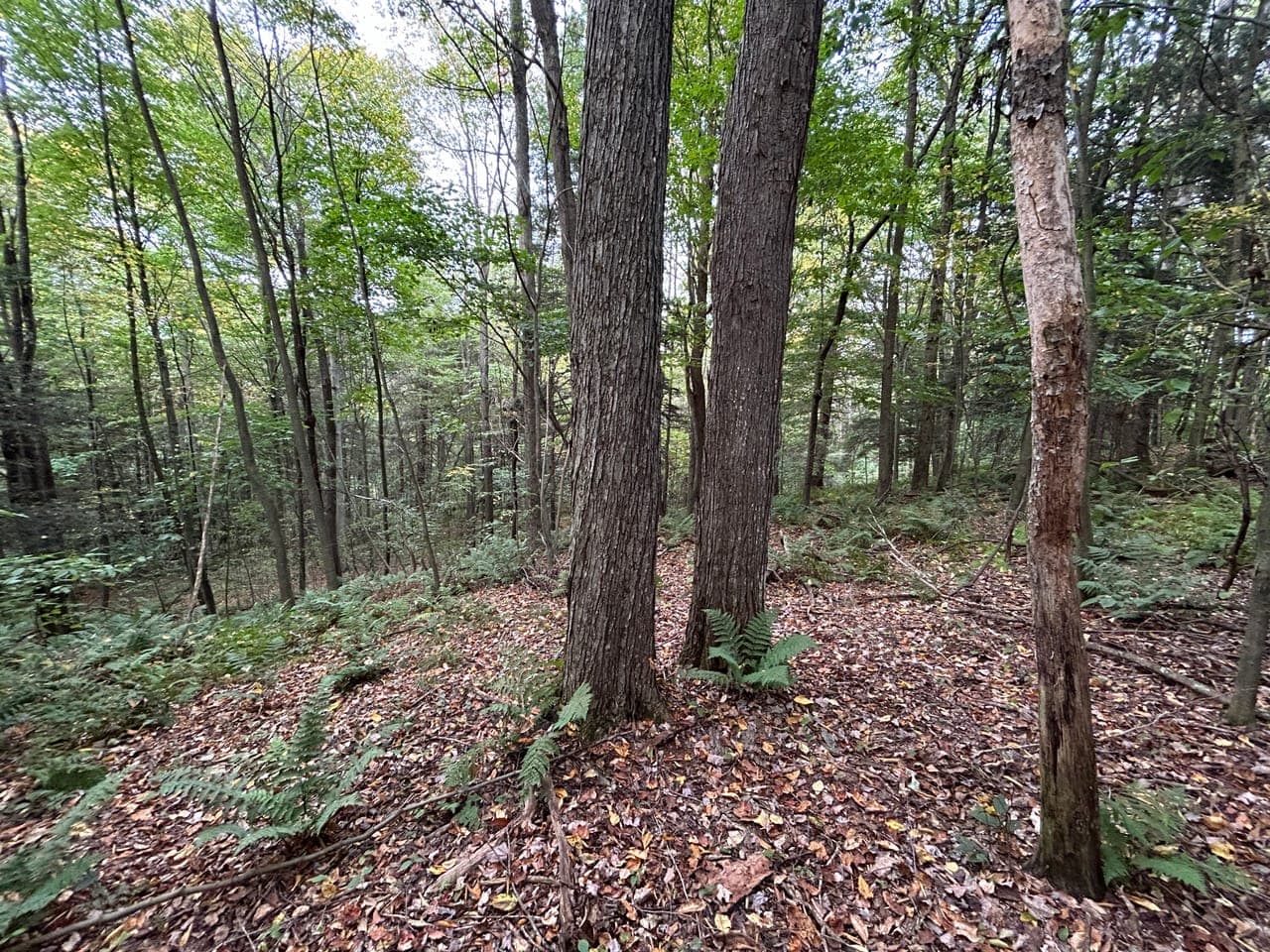 The land features a mix of mature hardwoods, marketable timber, and varied topography ranging from level benches to gentle slopes. Several potential building sites provide ideal locations for a new home or cabin retreat. Public utilities are available nearby, and there is excellent frontage along Route 271 for convenient year-round access.