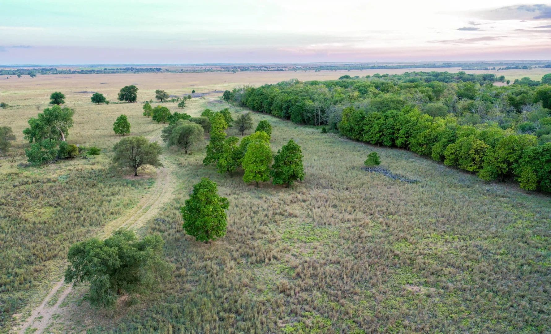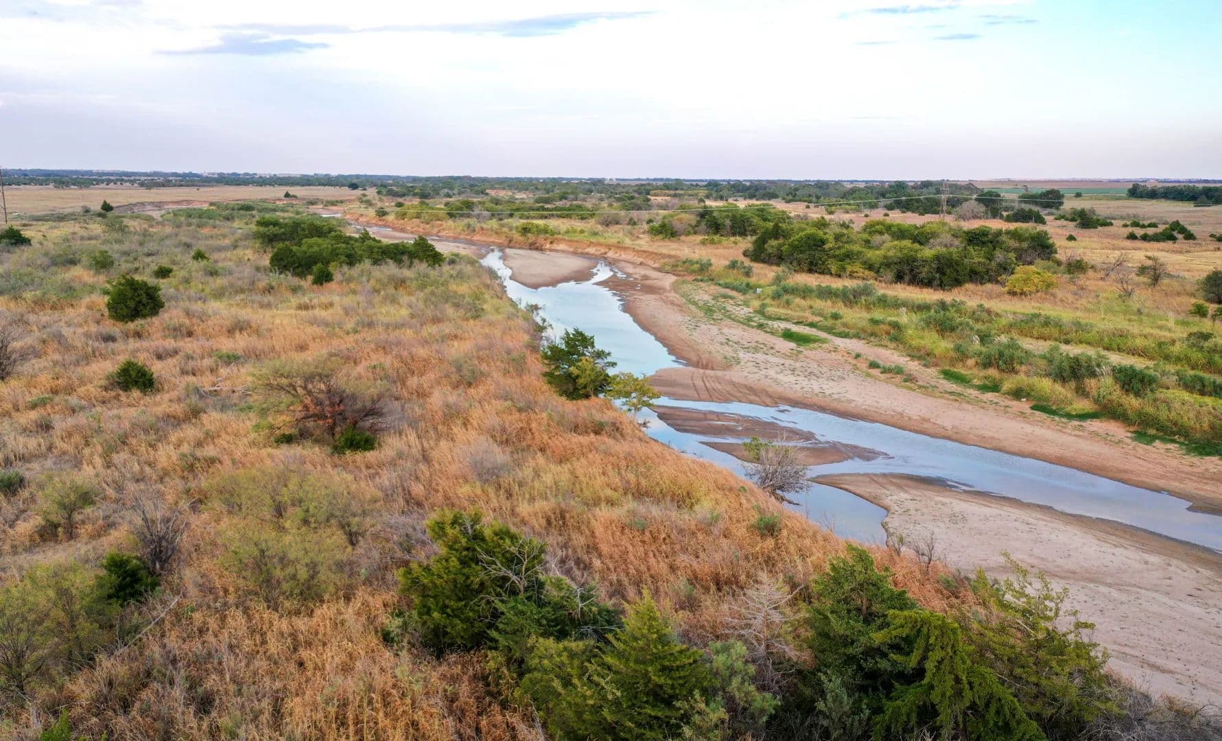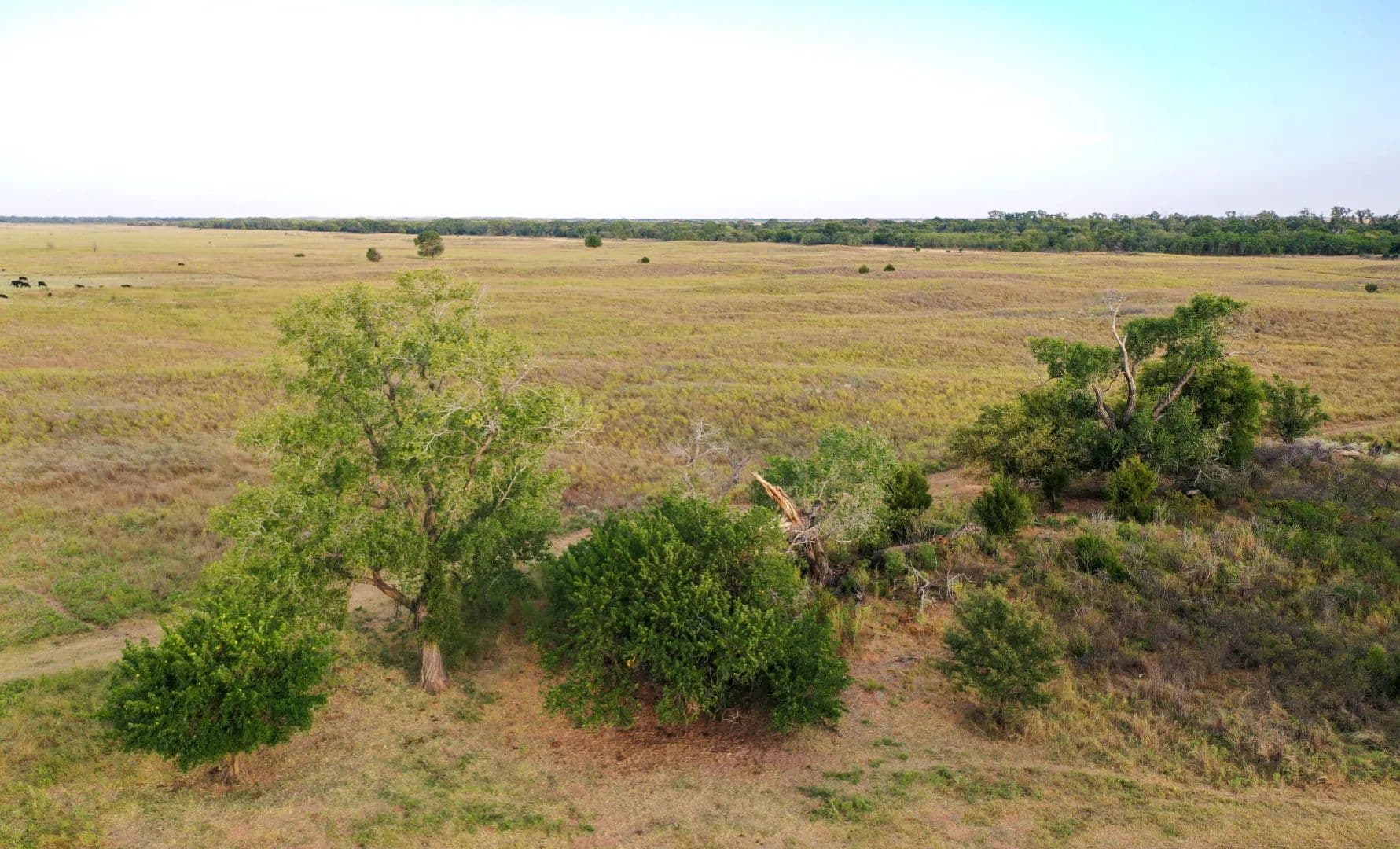 The topography and landscape varies throughout the property but is generally described as gently rolling and sometimes hummocky sand hills, gently draining south to the river. The East Division is all native pasture with principal grasses being several varieties of bluestem, Indian grass, switchgrass, sand reed, eastern gamma grass, and wild rye, to name a few. Scattered plum thickets are common. A variety of trees throughout the ranch include oak, elm, ash, hackberry, mulberry, chinaberry, some cedar, and a small amount of salt cedar adjacent to the river.
