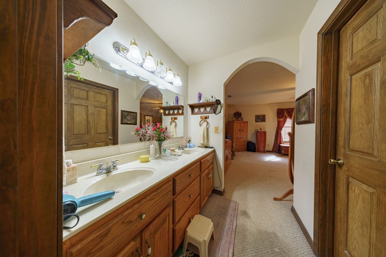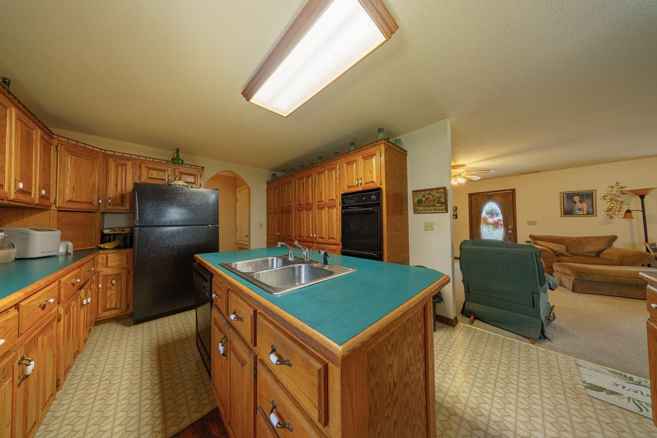 Kitchen: Abundant oak cabinetry, perfect for meal prep and family gatherings.