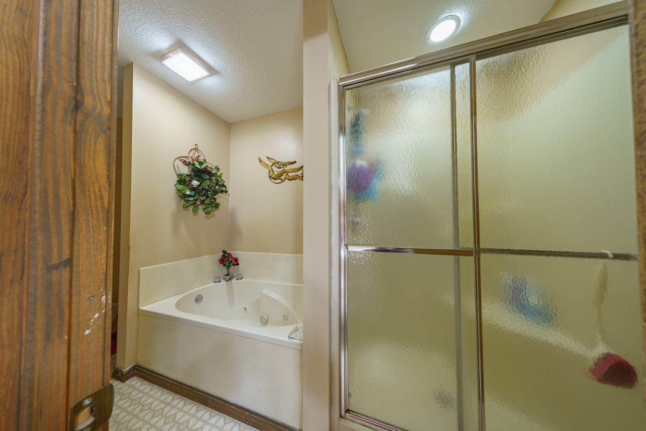 Master Suite: Large master bathroom with a whirlpool tub and separate stand-up shower.