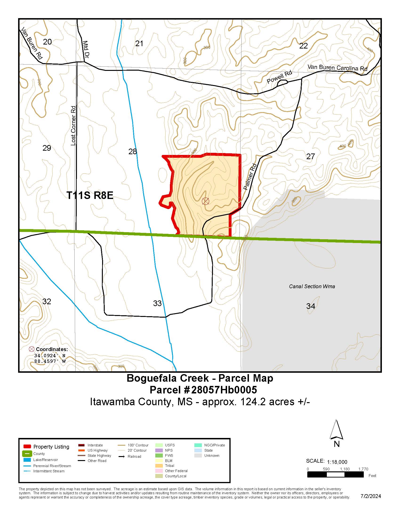 Explore the ultimate outdoor escape with this 124.2 +/- acres of timberland in Itawamba County, MS. Conveniently located on Palmer Road, you're just 14 miles from Amory, 15 miles from Nettleton, and 24 miles from Tupelo, making access a breeze. This property features approximately 77 +/- acres of pine plantation established in 2016, complemented by hardwoods along a tributary of Boguefala Creek. A gas transmission line crosses the tract, enhancing its value with existing wildlife food plots. With abundant hunting opportunities for deer, turkey, and small game, plus a natural slough/pond area, it’s a hunter’s dream. Whether you’re looking to invest in timber or build your ideal hunting camp, this land offers the perfect canvas for your adventures!