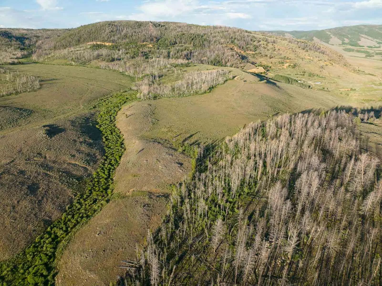 Bordered on the north by the Medicine Bow National Forest, on the west by the large State Line Ranch, and on the east by BLM and state lands, this ranch offers plenty of seclusion and privacy. Although the 2020 Mullen Fire burned a fair amount of the ranch, the regrowth is very encouraging, with new stands of aspen and fur trees throughout the property. Spring-fed ponds and diverse terrain and topography also attract and retain wildlife throughout the year. The ranch is located in Colorado's Game Management Unit (GMU) 6 and qualifies for two landowner preference program applications annually for mule deer and two applications for pronghorn. GMU 6 is noted for trophy-caliber antelope, mule deer, moose, and a strong elk population. The ranch was historically used as a mining claim, but the mines have been sealed, and all that is left are remnants of days gone by. With expansive views of North Park and back-door access to thousands of acres of public lands, Rimrock Ranch offers limitless recreational opportunities to incoming ownership.