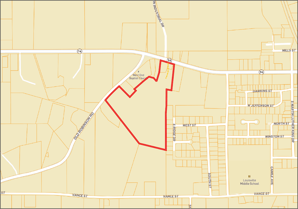 Are you looking for the perfect location for your business? Look at this 24.46± acre Winston County property, ideal for various commercial uses. This B-2 commercial site, located within the city limits of Louisville, Mississippi, offers excellent potential. With frontage on Highway 14 (West Main Street) and easy access to major routes, it's less than a mile from the four-lane Highway 15, Highway 25, and Highway 14 interchange. The property features two separate entrances from the bypass around Louisville, providing convenient access. Take advantage of this opportunity and call Michael Halfacre today!