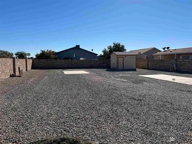 Amazing corner lot in Vista Del Sol! This 7,096 sq ft property features a large front gate with RV access, two 50-amp RV hookups with their own meter, and two concrete RV pads. The on-site shed includes plumbing and electrical, along with a washer and dryer. A perfect lot for RV living or to build your dream home!