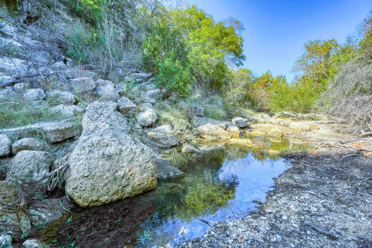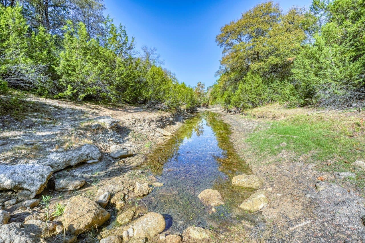 Mason Ranch boasts approximately 1,500 feet of frontage on Campbells Branch Creek, adding natural beauty and endless recreational possibilities. With 100 feet of elevation change, the landscape provides varied terrain that is ideal for hiking, hunting, and exploring. The property is a hunter’s paradise, teeming with deer, turkey, dove, hogs, and other wildlife.