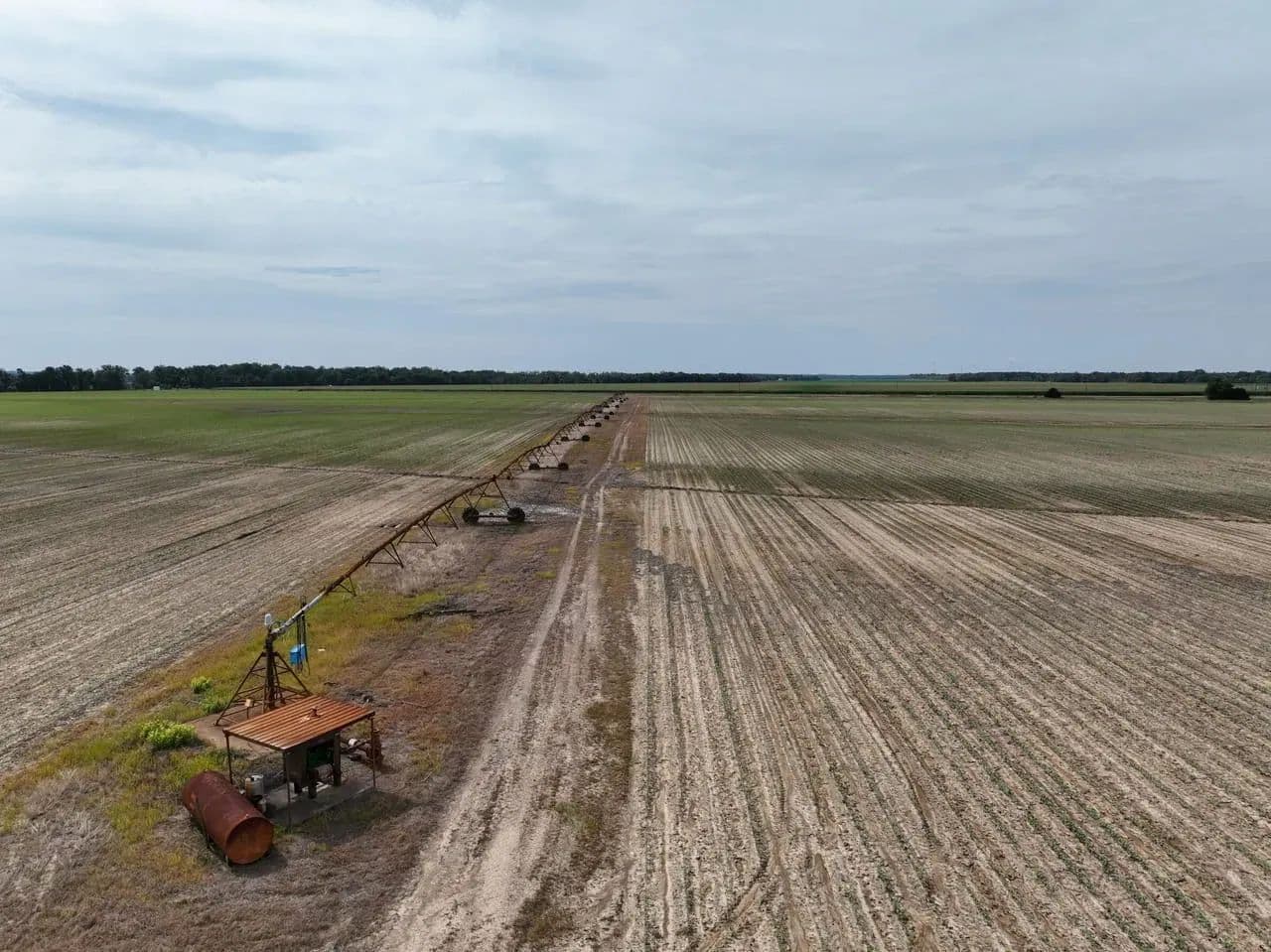 The farm is improved with both row-fall and center pivot irrigation. The center pivot is 1,630' and waters around 195 acres. It has a dedicated 14" irrigation well with a 60hp gearhead and John Deere power unit. The two northern corners of the pivot field are irrigated using row-fall and watered from a 16" irrigation well equipped with a 60hp gearhead and three-phase electric motor. The southeast corner has been row-fall watered utilizing a relift pump (not included) from the ditch along the eastern boundary. The field along the west side of Highway 49 has been landformed for row-fall irrigation utilizing two pads, underground piping and risers. Water is provided by a 10" well with an electric submersible pump. One small field, west of the railroad tracks, is not irrigated.