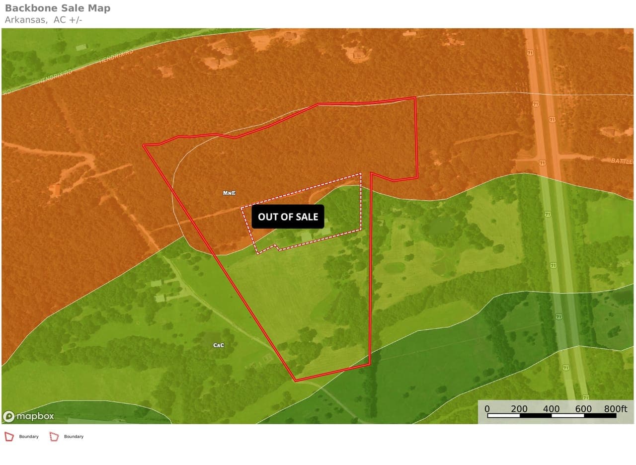 When the owner first bought this property he was told of a battle that had taken place on the north side of Devils Backbone Mountain adjacent to the property as well as the fact that there was a civil war road that had been built to transport artillery and troops across the mountian from Waldron to Fort Smith. The owner found the road on the property and began the process of clearing it all the way to the top where it crosses in a saddle along the ridge. An area was cleared just to the west of where it crosses and a swing was palced there for a wonderful view to the southern mountians. Several artifacts, horse shoes and wagon parts have been found, as well as a cannon ball in the field which is now in a museum. The old road starts at the red gate entrance and goes north through the trees bending to the west and up the mountain. There is a man made rock fence that follows the entire property at the top of the ridge. Call or text the listing agent today for a private showing, (Michael Gray - Mossy Oak Properties Field, Farm and Homes), 479-597-9279 .