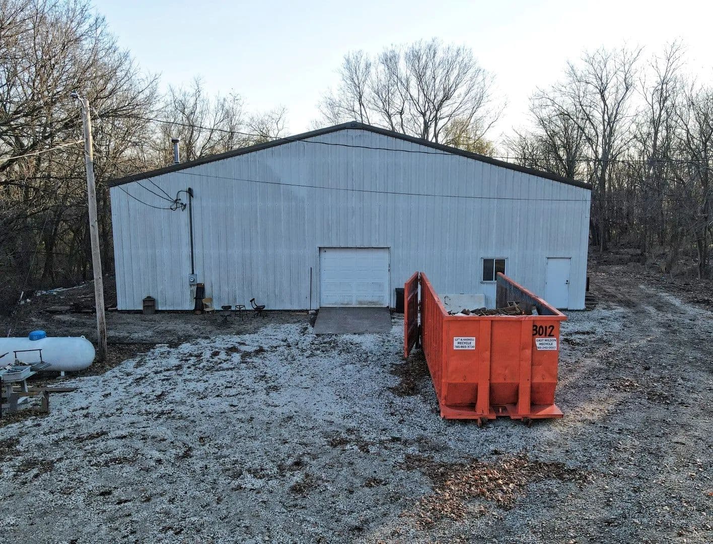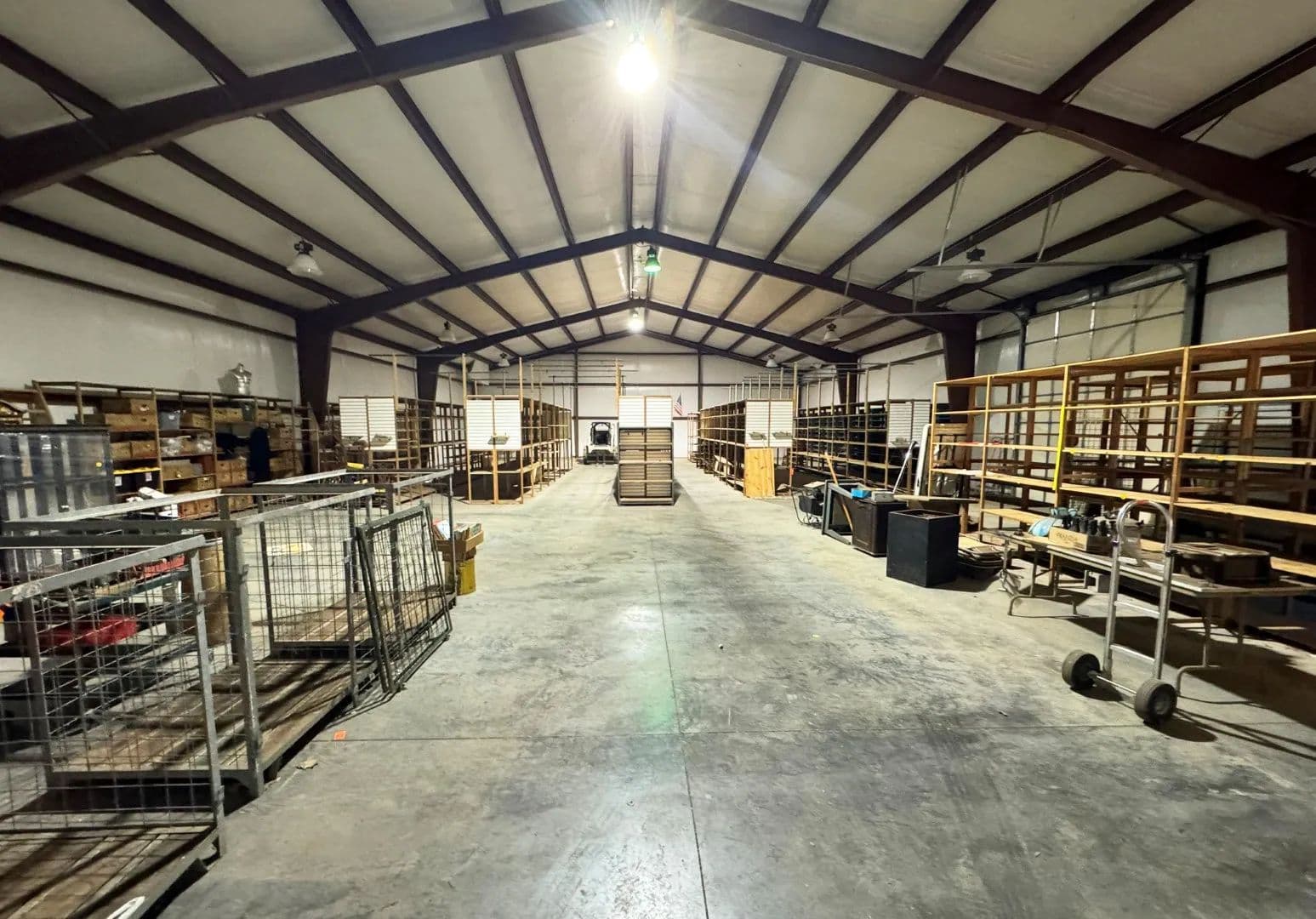 60′ x 100′ insulated, steel-frame metal building with overhead propane heat