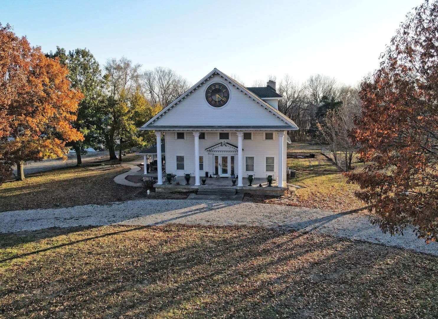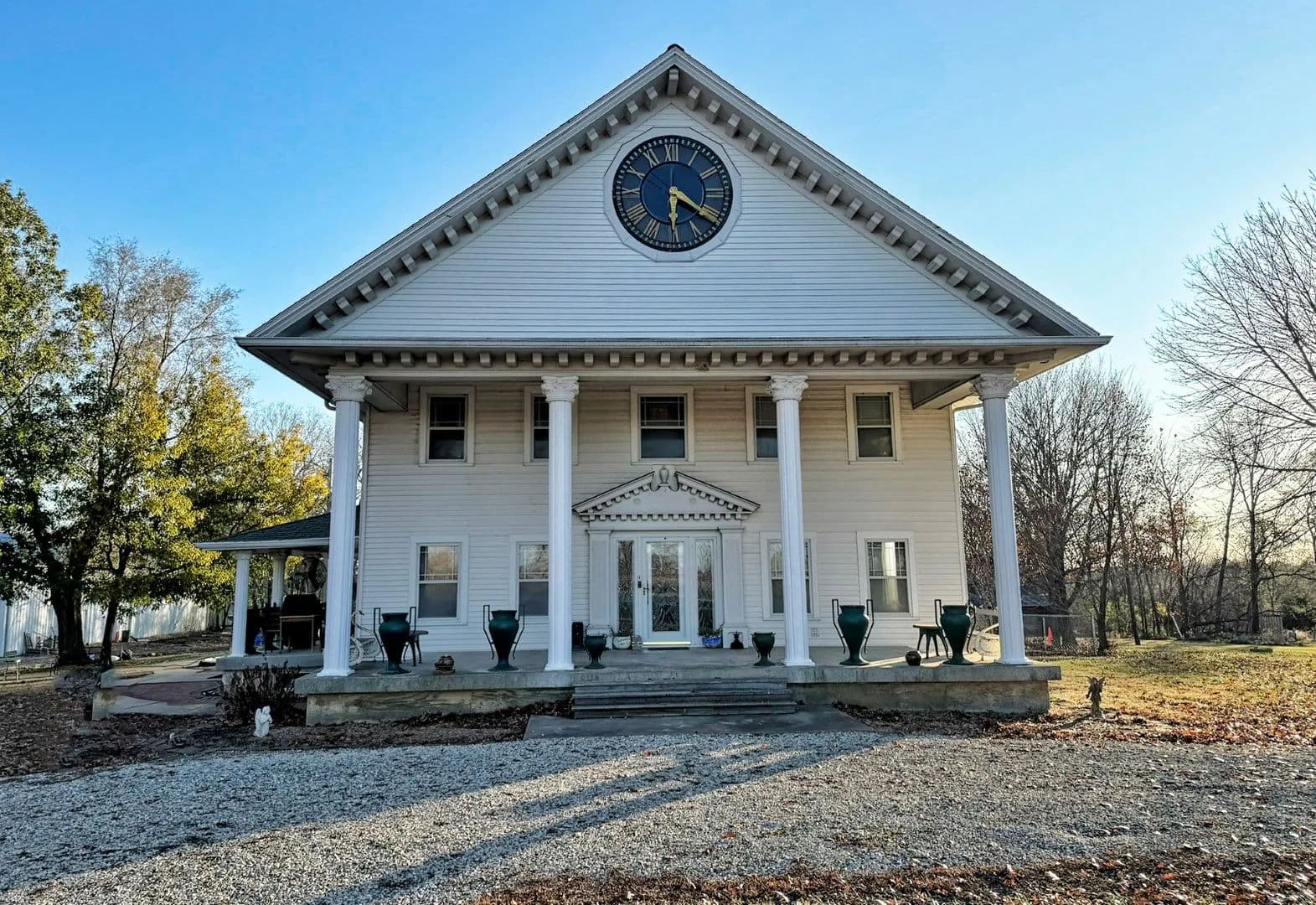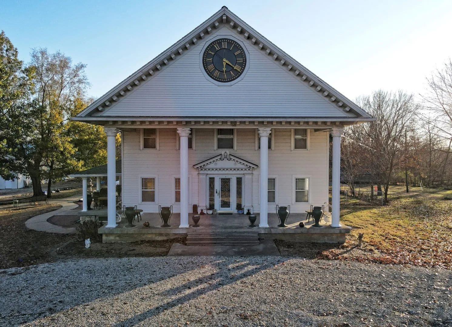 The home features more than five acres of property and includes the famous “Clock House” in addition to a massive 60′ x 100′ insulated and heated, steel-framed metal building and a detached garage/shop.
