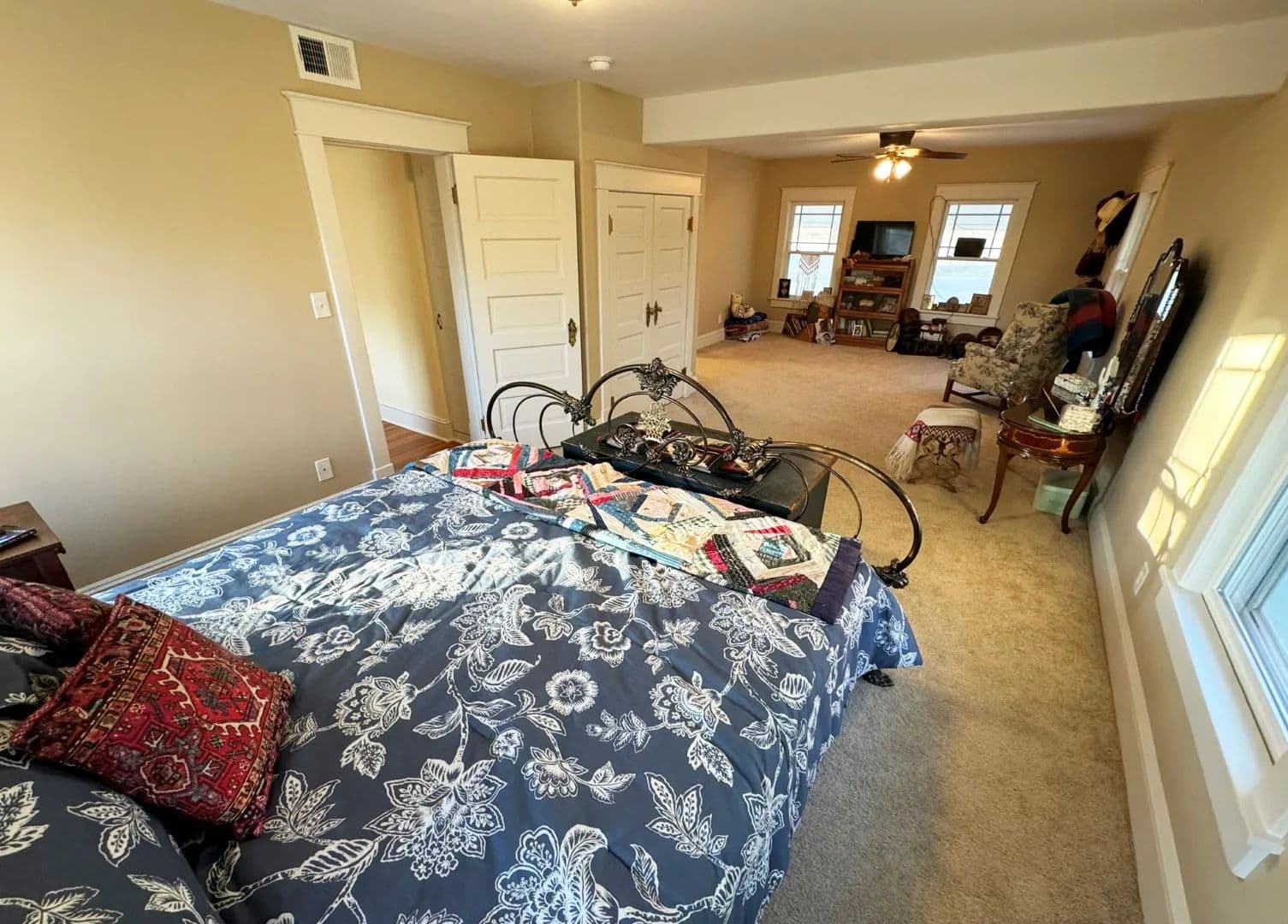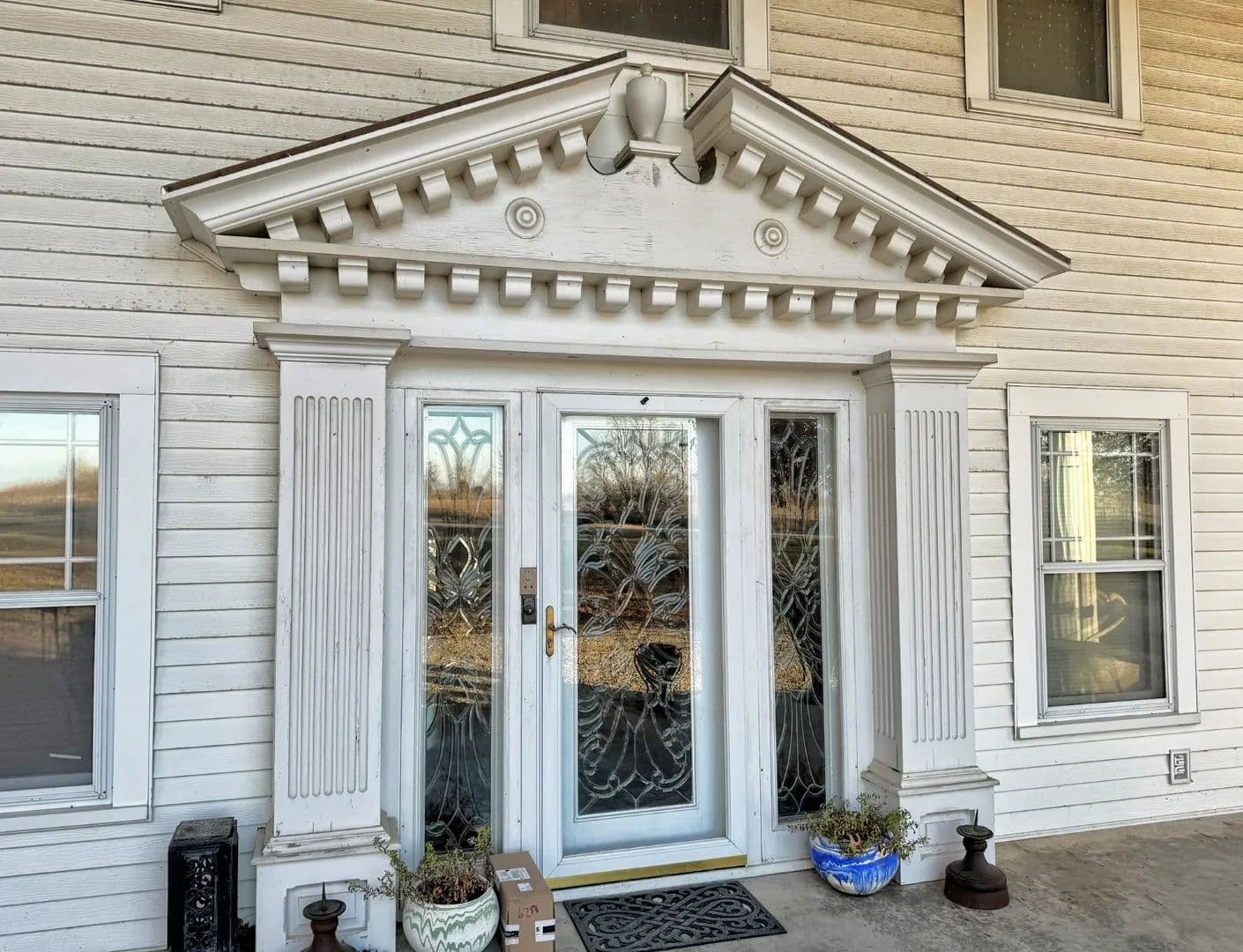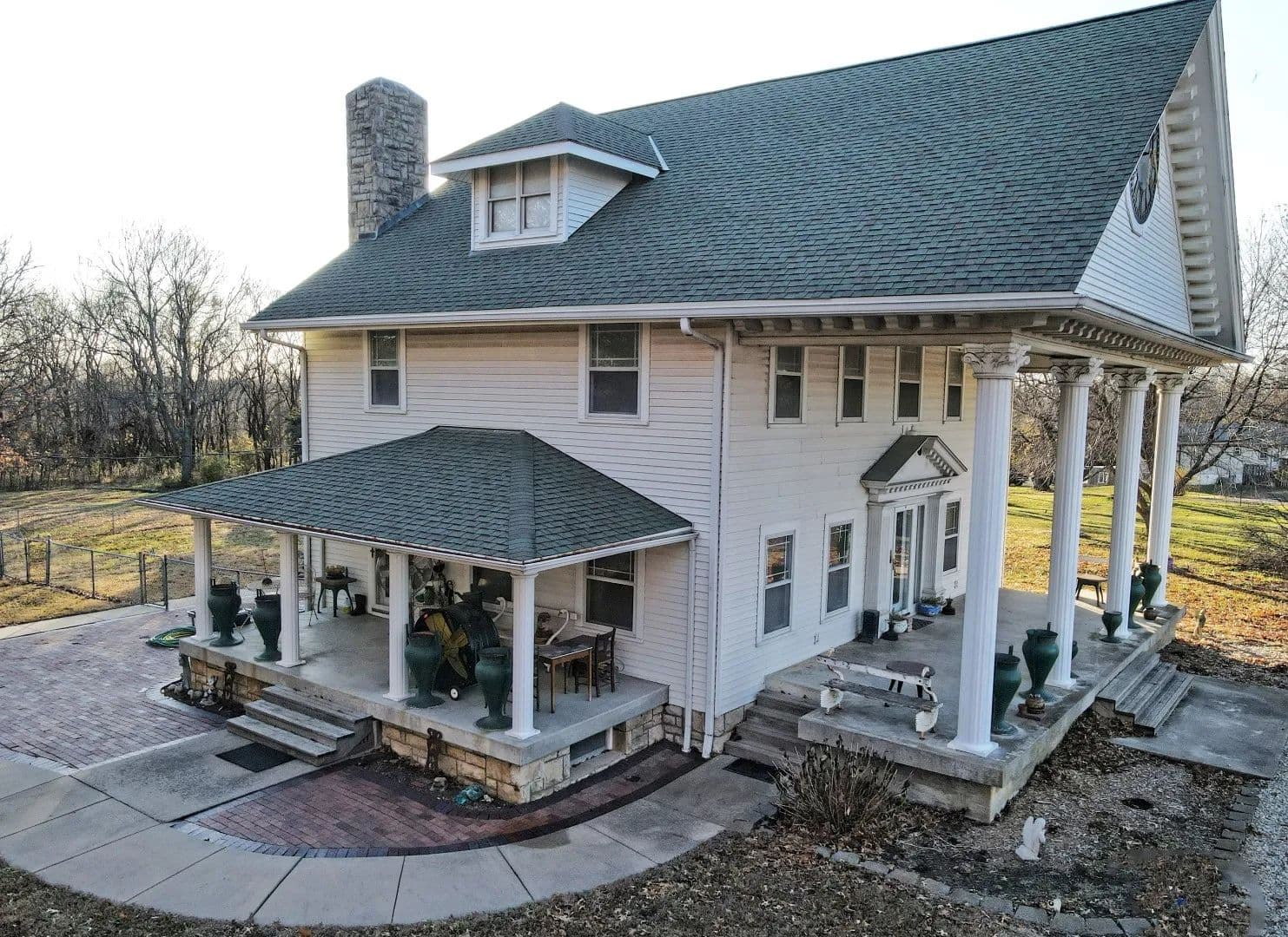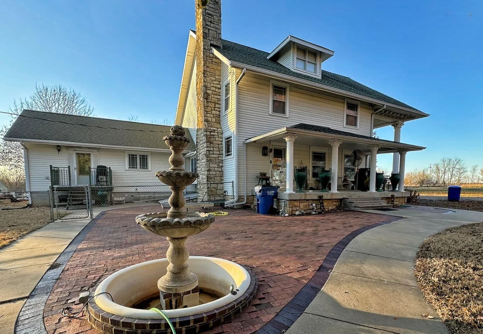 The home commands your attention as you walk up to the expansive front porch with it’s towering clock. The clock was saved from a building in Nebraska and moved to its current location where it stands as a sentinel along I-70 between Topeka and Lawrence.