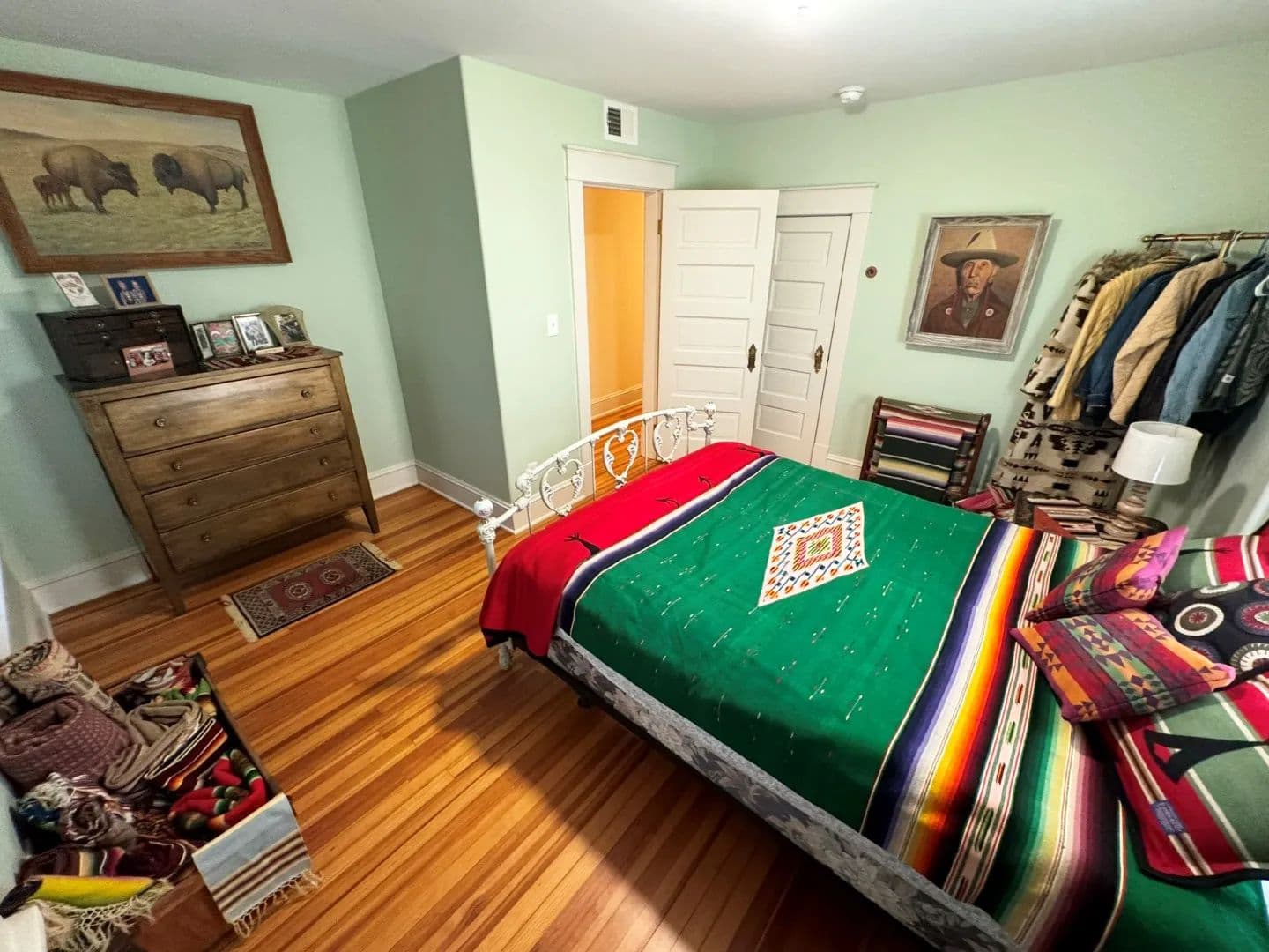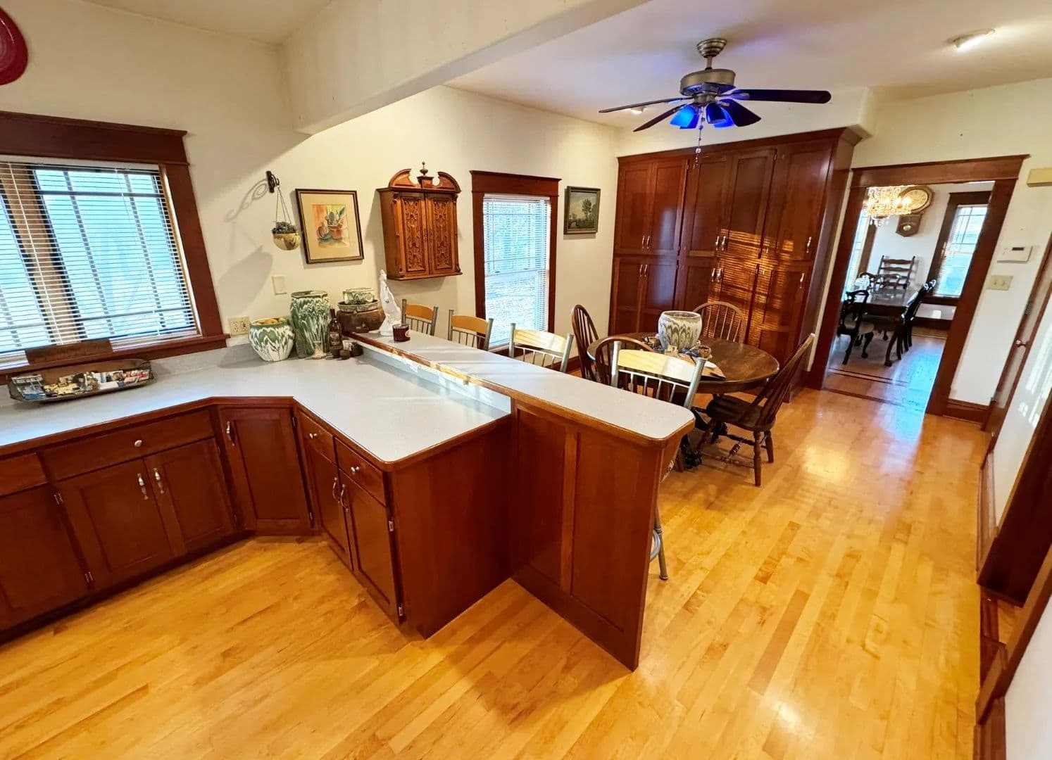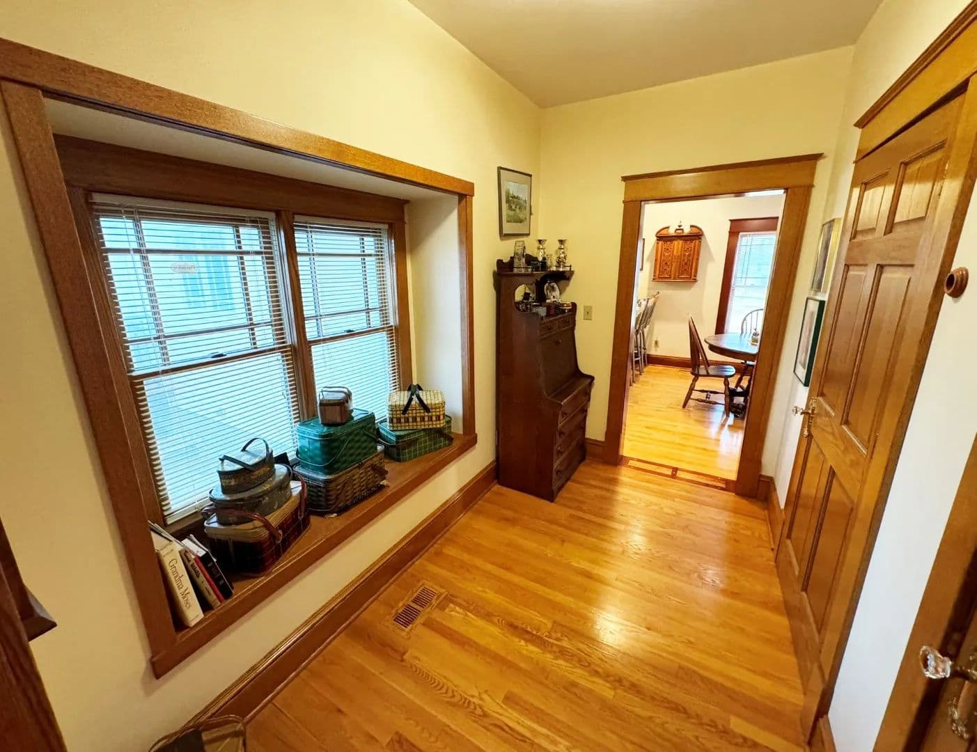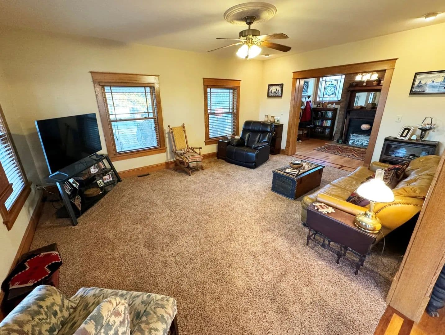 The home commands your attention as you walk up to the expansive front porch with it’s towering clock. The clock was saved from a building in Nebraska and moved to its current location where it stands as a sentinel along I-70 between Topeka and Lawrence.