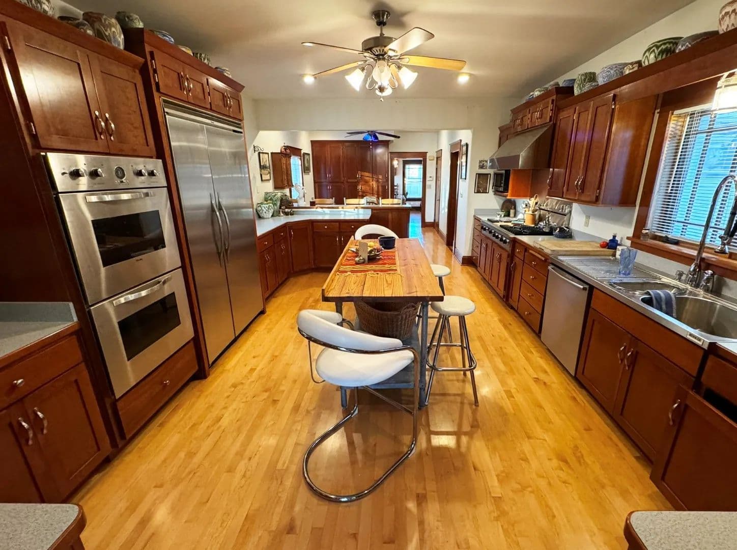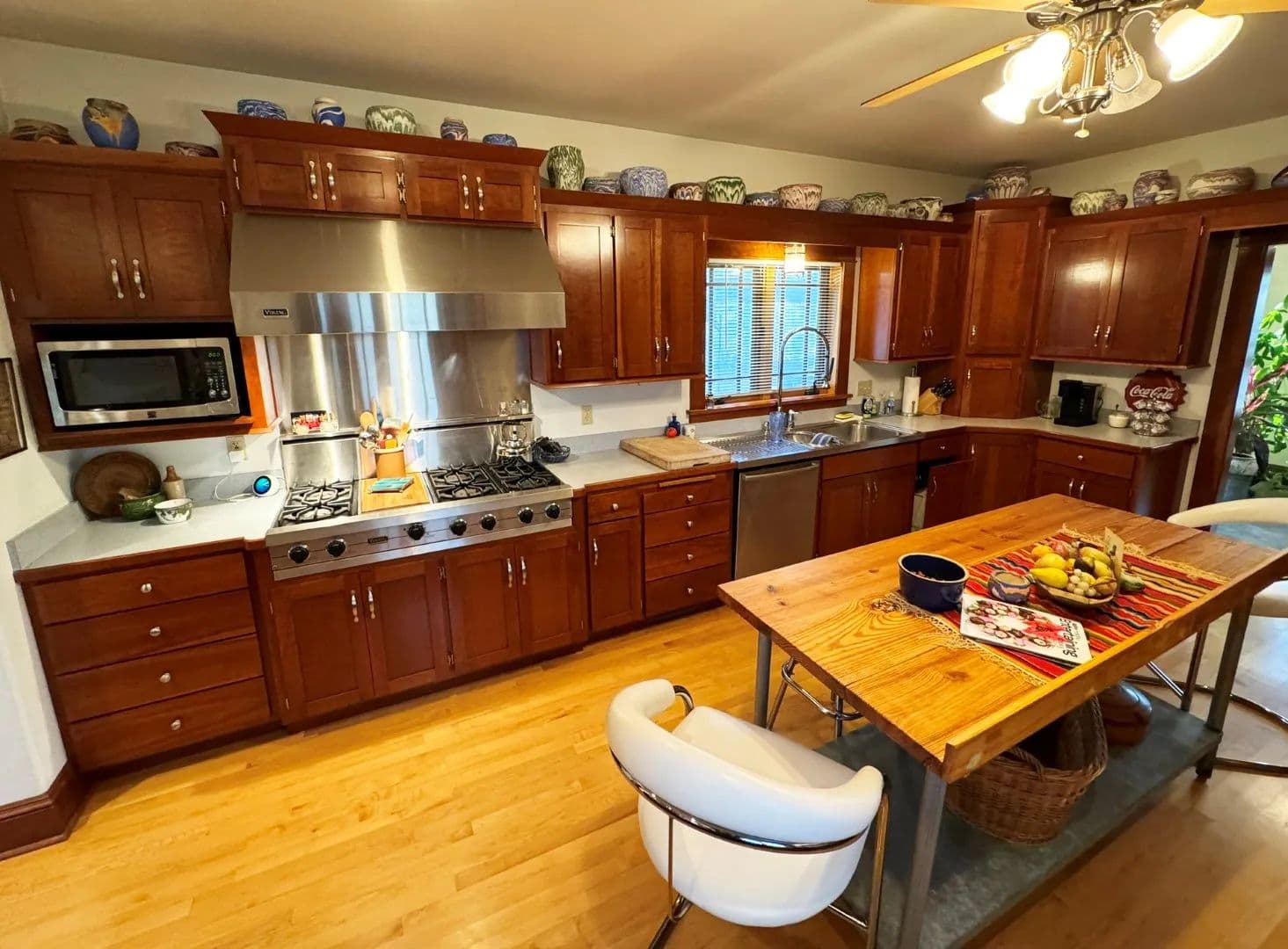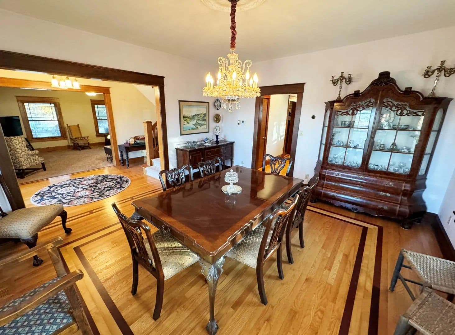 The house is well appointed with beautiful lighting fixtures, a passion of the home’s antique obsessed curator. A large, chef’s kitchen is the cornerstone of the main floor. The kitchen features high-end quality Viking appliances, tons of counterspace, ample cabinets and a layout designed for entertaining.