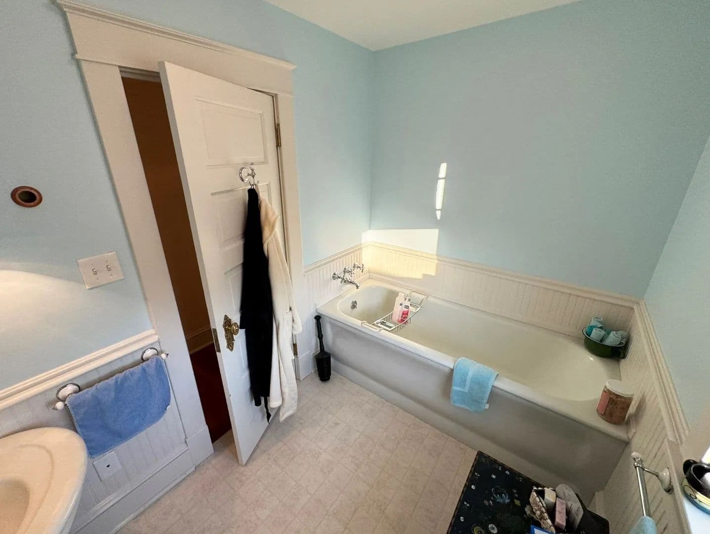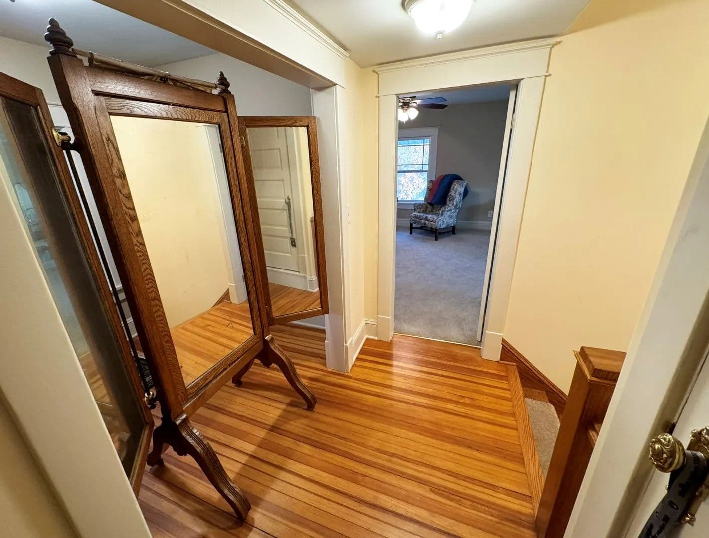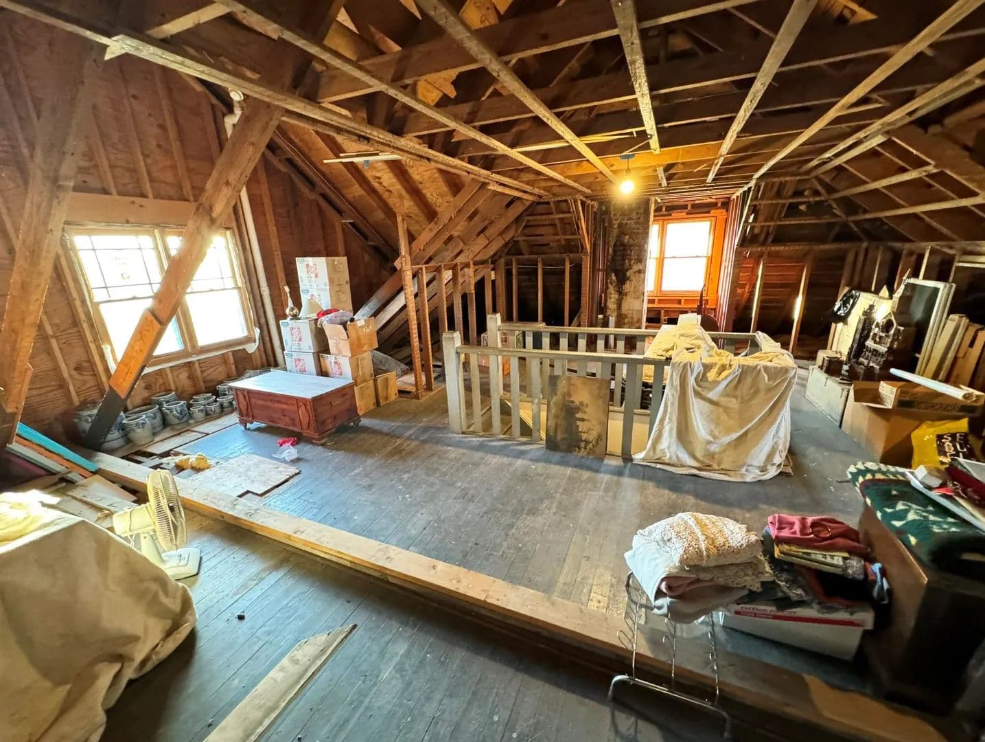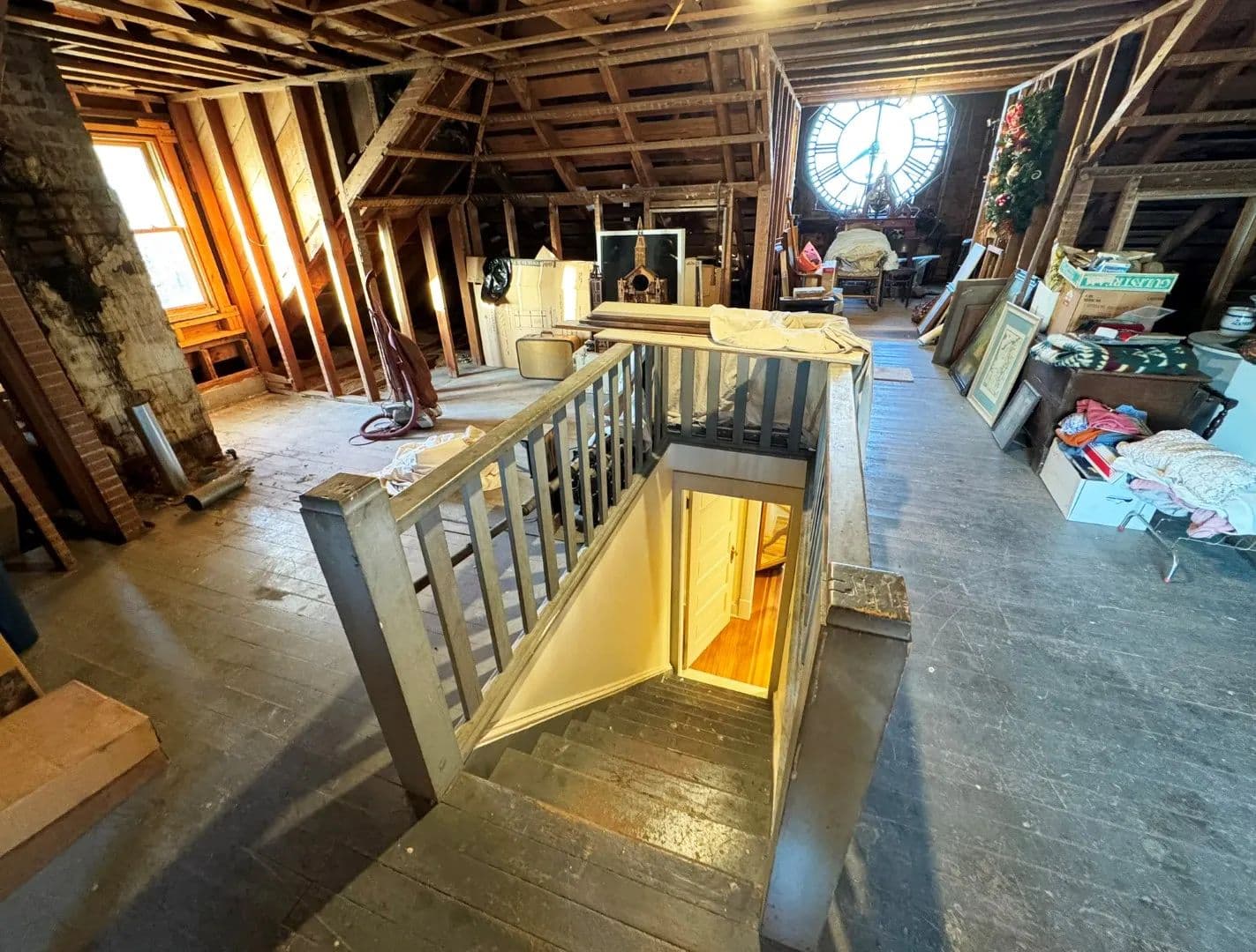 Three bedrooms on the second floor plus one primary bathroom. The third floor attic space is where the clock is housed. This space is currently used for storage overflow but is well situated to be a finished space, adding additional living area to the property.