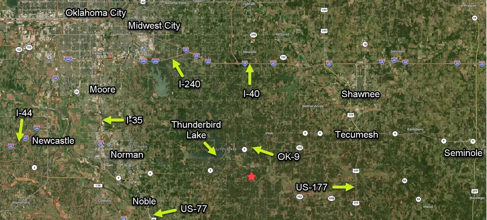 EXPLORE THE VERSATILITY OF THIS EXCEPTIONAL 6.67 +/- ACRES OF VACANT LAND IN THE PICTURESQUE NORMAN COUNTRYSIDE—ONLY 14 MILES FROM I-40 AND 18 MILES FROM I-35! Conveniently located just outside city limits on a paved road for easy access, this amazing 6.67 +/- acre property features a good mix of heavily treed landscape with a few strategically cleared spaces, making it ideal for a multitude of purposes including building your custom dream home, using it as a recreational retreat, or enjoying nature. Outdoor enthusiasts will love being just 5 miles from Lake Thunderbird, known for its vibrant recreational opportunities. Lake Thunderbird State Park, located 17 miles away, boasts marinas, boat ramps, swimming beaches, camping facilities, and trails for hiking, biking, and horseback riding. Activities like archery, hunting, and watersports make it a hub for adventure. Other nearby natural highlights include the Canadian River (18 miles) and Lexington State Wildlife Management Area (10 miles), offering unmatched opportunities for exploration. For commuters or city seekers, the property is incredibly well-connected: 6 miles from OK-9, 14 miles from I-40, and 18 miles from I-35, with Downtown Norman and the University of Oklahoma just 16 miles away. Oklahoma City is an easy 28-mile drive, offering all the modern conveniences and amenities while maintaining the peace of countryside living. With close proximity to world-class outdoor activities and urban convenience, this property is perfect for your dream home, a private retreat, or an investment in future possibilities. Don’t miss the chance to own such a wonderful property! Schedule a private showing today.