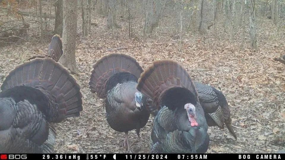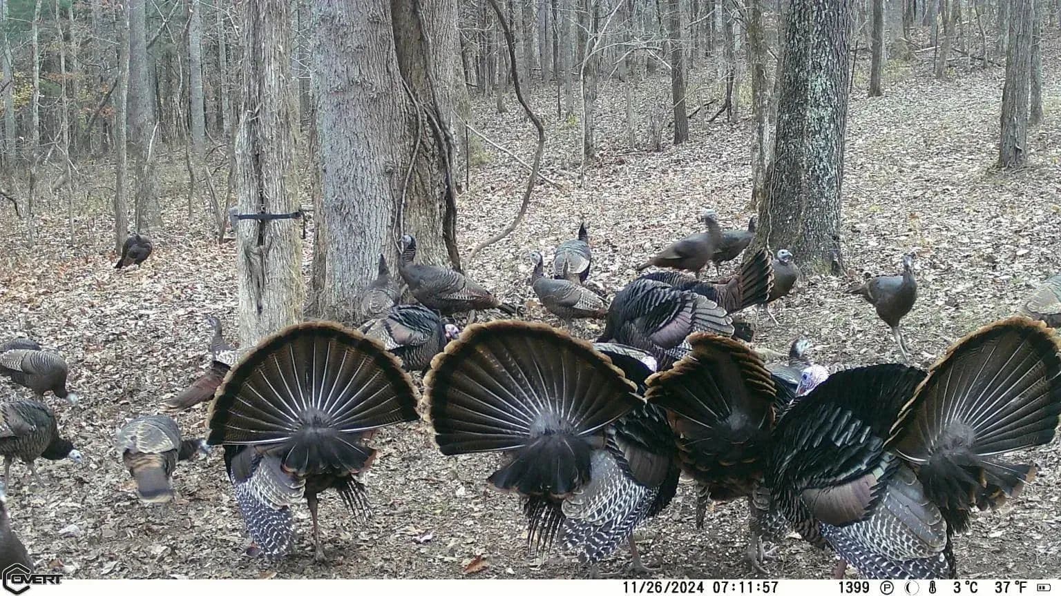 Naturally, all wildlife benefit from the dedicated efforts of habitat enhancement, timber management, food plots, supplemental nutrition and a sound harvest plan. Each Fall the abundance of mature mast producing trees drop their blessings of protein rich nutrition that wildlife crave and feast upon. As a result of these focused management efforts, the deer along with the wild eastern turkey population thrives, providing springtime magic for those that love turkey hunting or just simply enjoy watching and hearing these majestic strutting birds