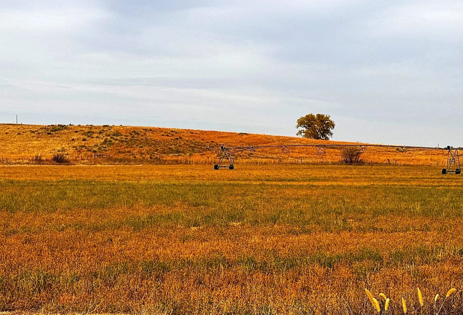 Irrigated Cropland: Approximately 40 acres with water provided by two wells on the sale property, but the pivot system and power unit is owned by the present tenant. The tenant also farms the land adjoining on the south. His windshield wiper pivot extends onto the sale property and provides more irrigated acres.