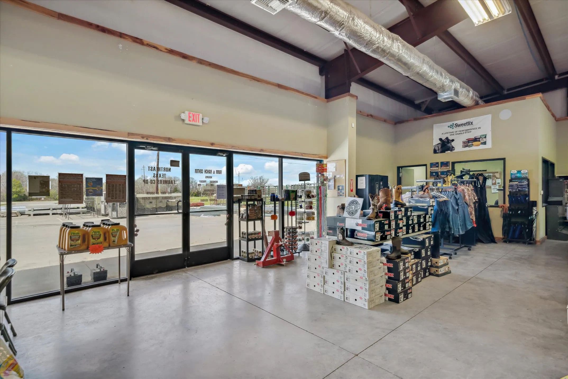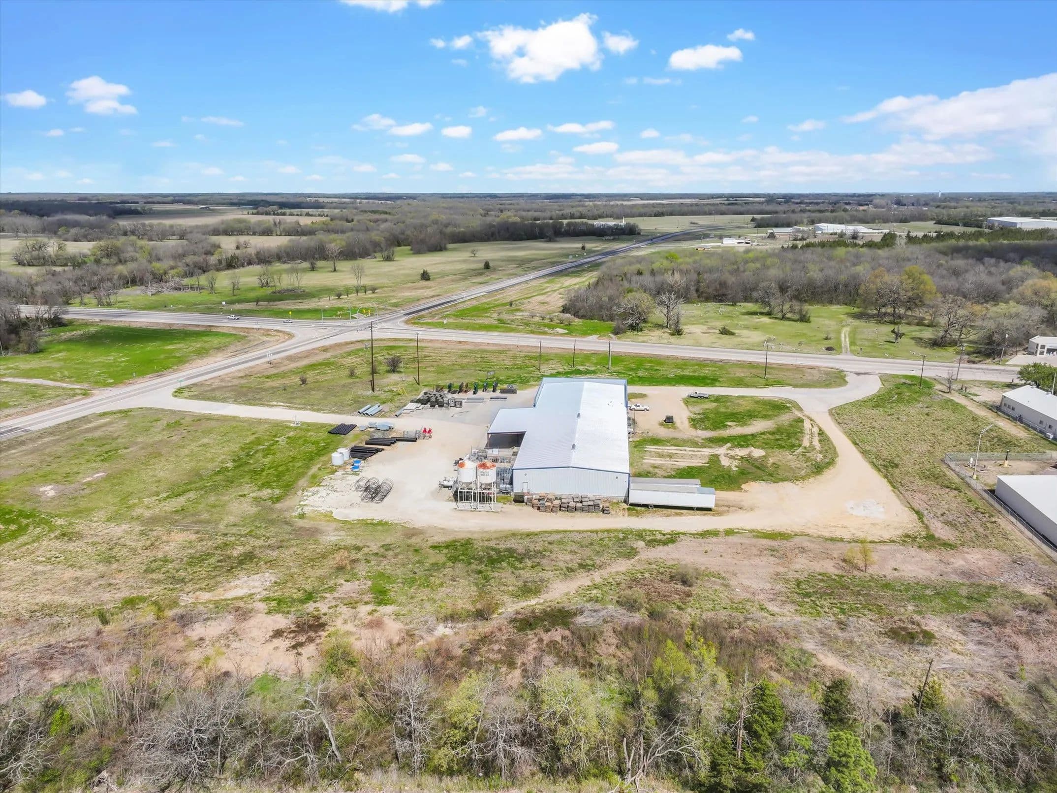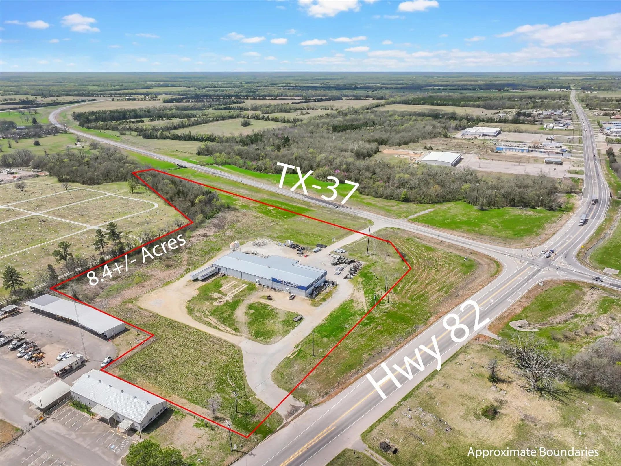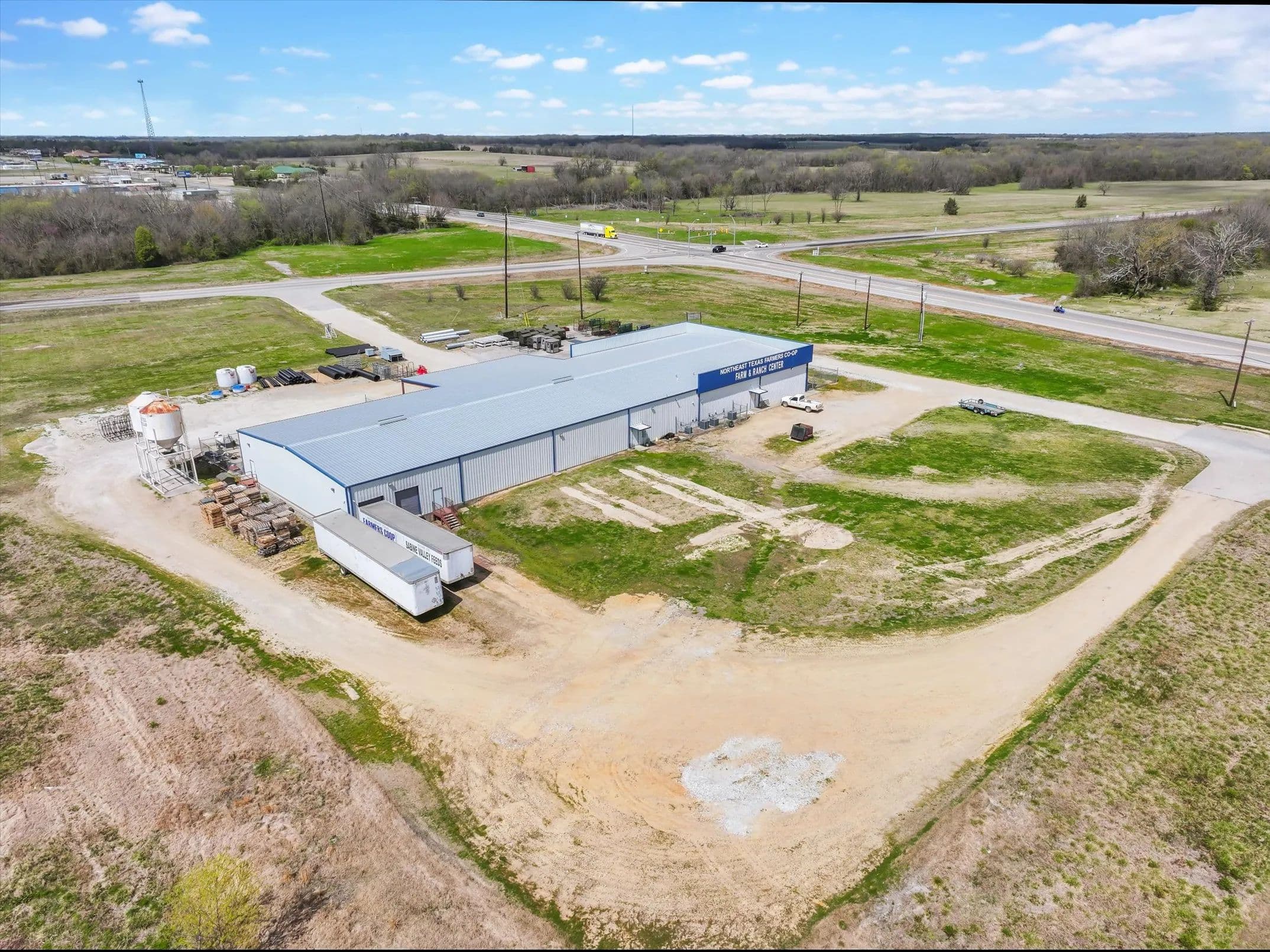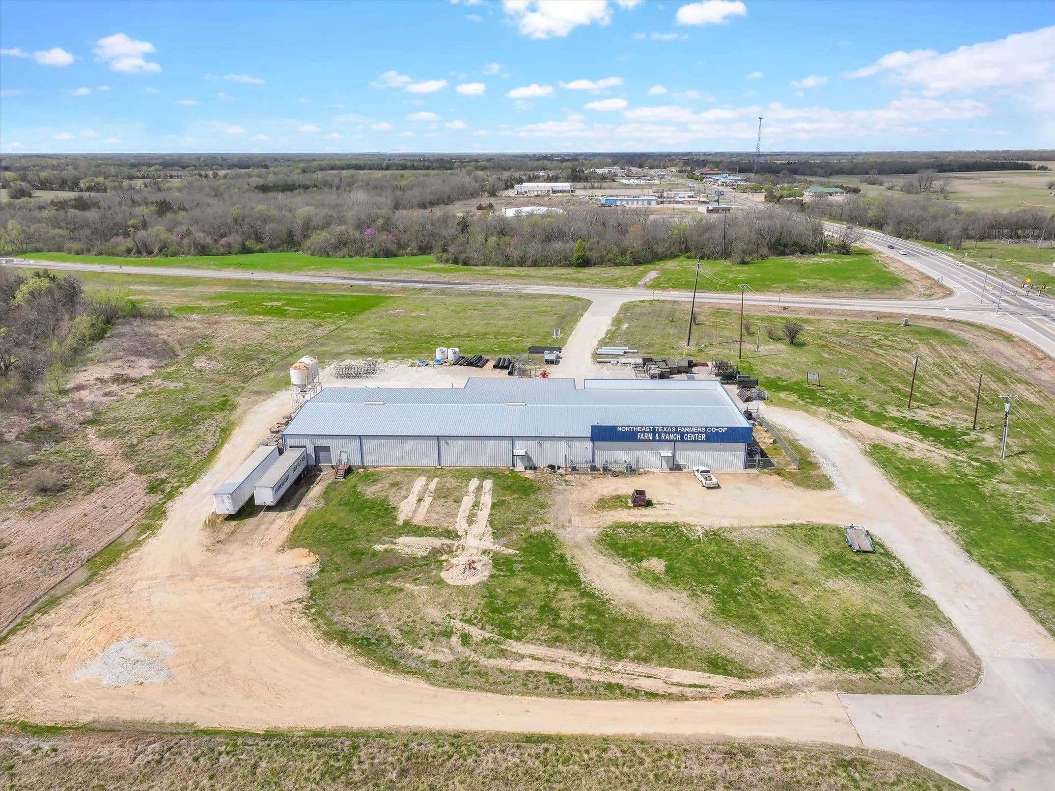 Strategically positioned at the hard corner of two State Highways in Clarksville, TX, this versatile commercial building offers 16,875 SF of gross leasable space on 8.427 acres. The facility includes 5,625 SF of climate-controlled space, ideal for retail, sales, or office use, and an 11,250 SF warehouse with 16–18 ft ceilings. Built on a durable poured-in-place concrete slab, the structure features five dock-high overhead doors for efficient shipping and receiving. With ample parking and significant room for future expansion, this property is well-suited for distribution, merchandising, or retail operations. Located just 57 miles from Texarkana and 40 miles from I-30, the site offers convenient access to major transportation corridors serving the Dallas Metroplex and beyond. Currently owner-operated and impeccably maintained, this property is move-in ready and positioned for growth.