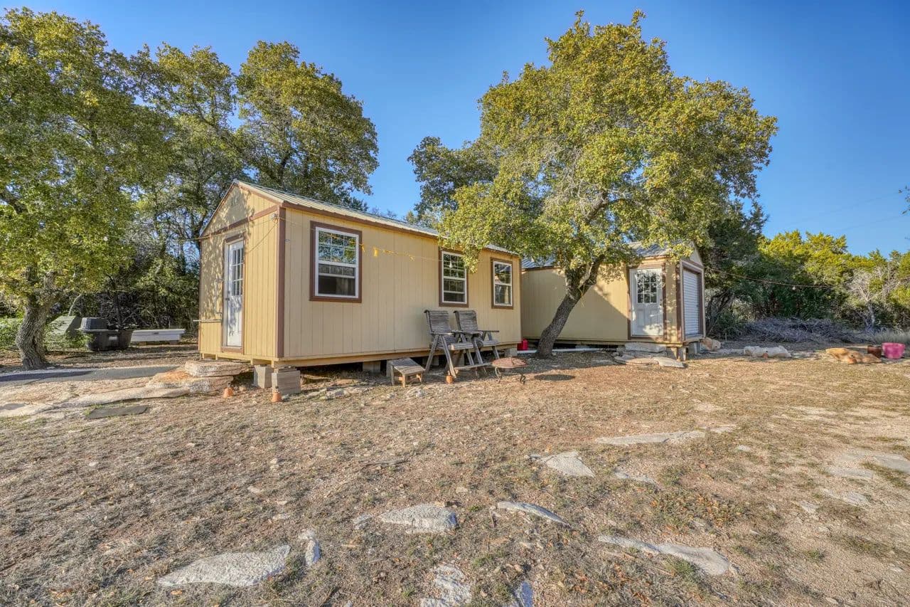 The property boasts a 1,760-square-foot main house and a 240-square-foot guest house. Built in 2021, the main house features a spacious master suite with a full bath, a half bath in the utility. House has a covered porch spanning 480 square feet, perfect for enjoying the serene surroundings. The guest house offers a cozy retreat with one bedroom and a full bath, ideal for hosting guests or providing rental opportunities. Modern appliances, purchased in 2021, enhance both homes, including a washer and dryer, water softeners, a side-by-side refrigerator/freezer with an ice maker, and a commercial propane range.