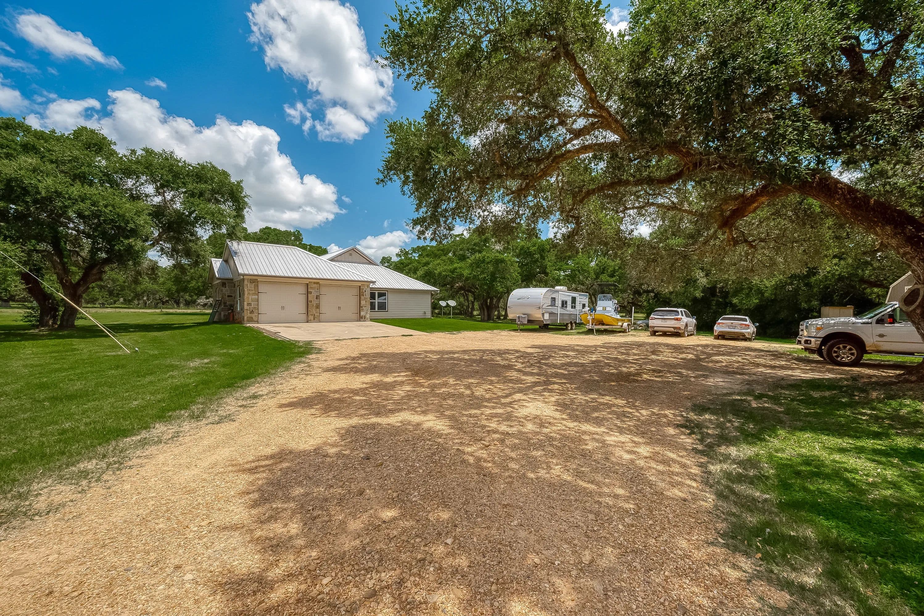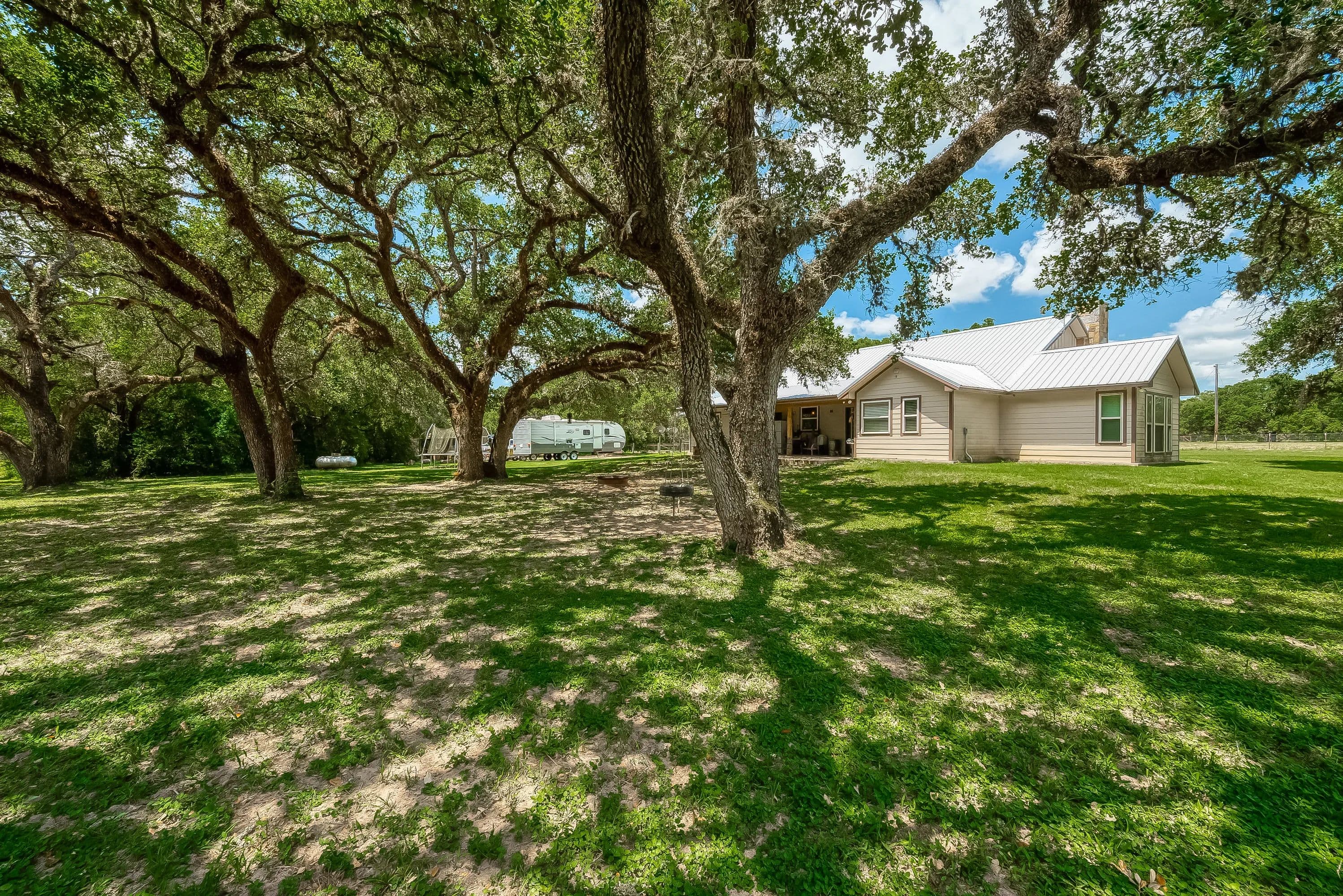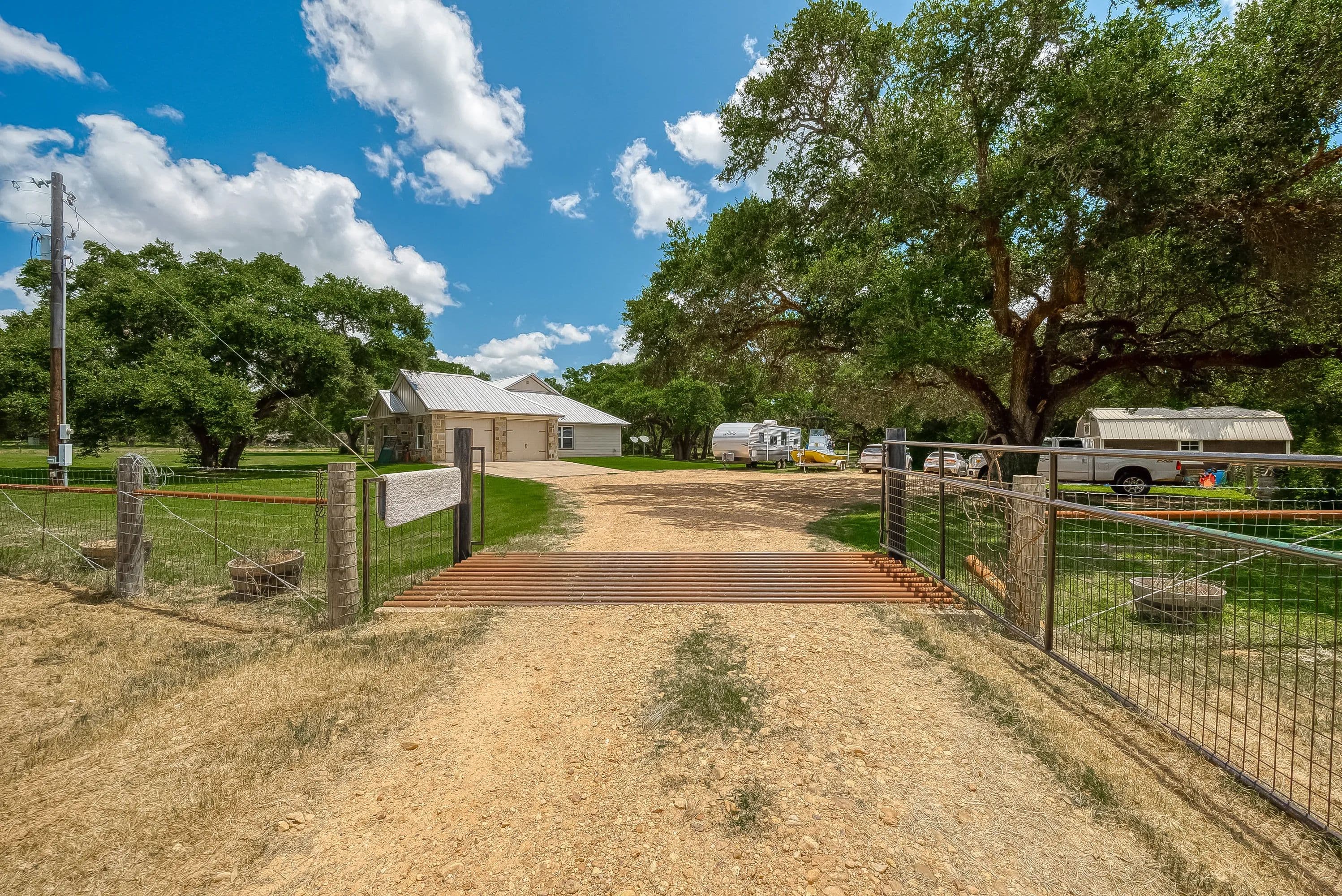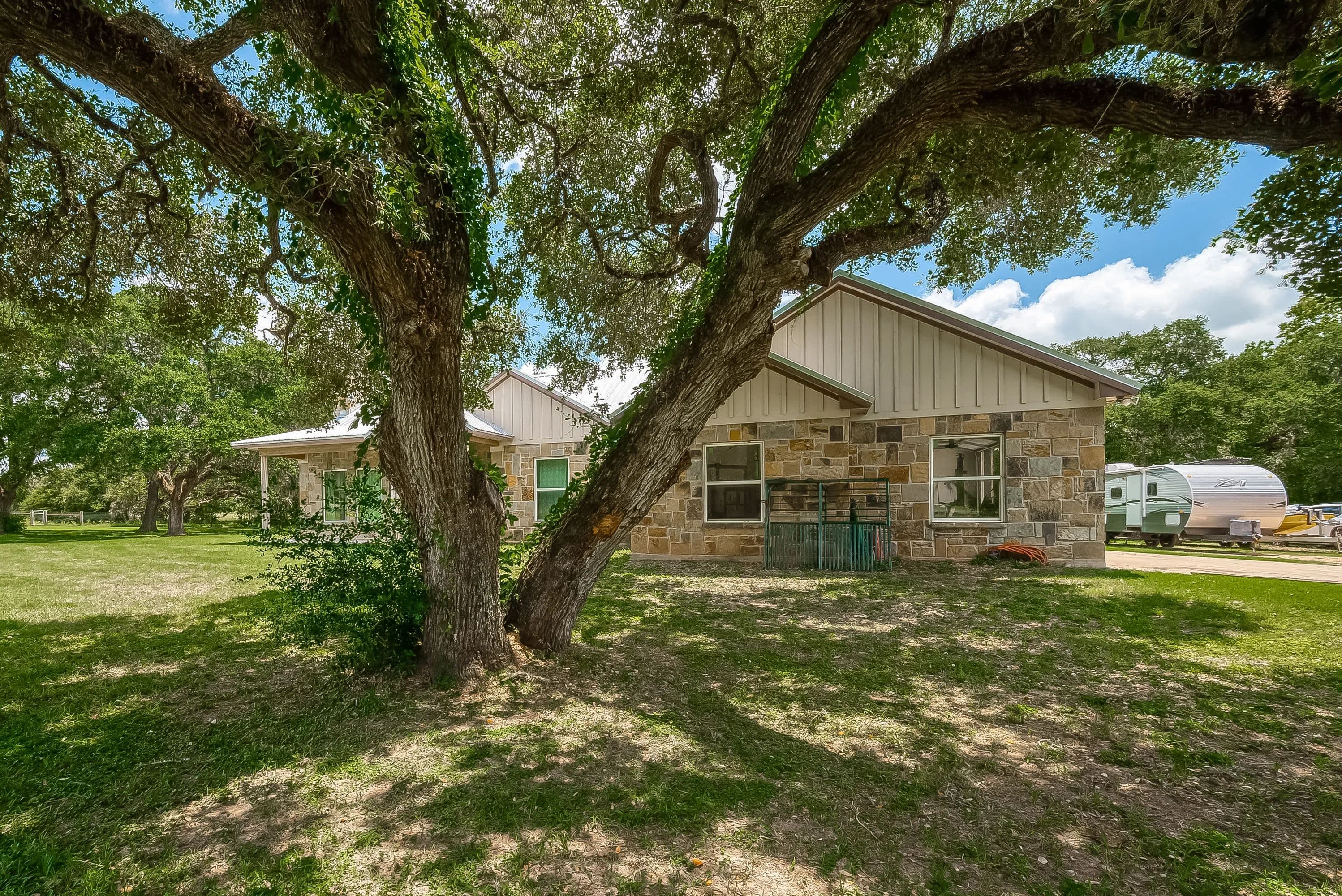 As you enter through the electric gate on Schobel Road you will travel along your private easement access which is fenced on both sides that leads to this fantastic 48 acre Ag. Exempt estate with a main house, guest house, several outbuildings and 3 ponds, all nicely enclosed by a perimeter fence. Located just 7 minutes from the “Big Easy Ranch”. The stone main home, completed in 2015, offers 2324 sq. ft. of living space. The beautiful open concept plan allows for a fantastic living room, formal dining area, an island kitchen with informal dining, a study, 3 spacious bedrooms and 2.5 bathrooms (one is a Jack and Jill style). All is finished with high end finishes and thoughtfully designed to accommodate wheelchairs and for energy efficiency with the Spray Foam insulation. The 1957 built guest home offers 1892 sq. ft. of living space with 2 bedrooms and 2 bathrooms which need updating/repair as has not been lived in for many years. Outside for recreational pleasure, you will find plenty of space to buzz around on ATV’s, tend to cattle or fish in one of 3 ponds. This one is free from flood plains, pipelines and oilfield equipment. Whether you’re looking for a property for full time living, for a weekend or corporate retreat, this one should be the obvious choice. Escape the hustle & bustle of city life! Call Nicola Hammett at 979/733-4594 to schedule your private viewing.