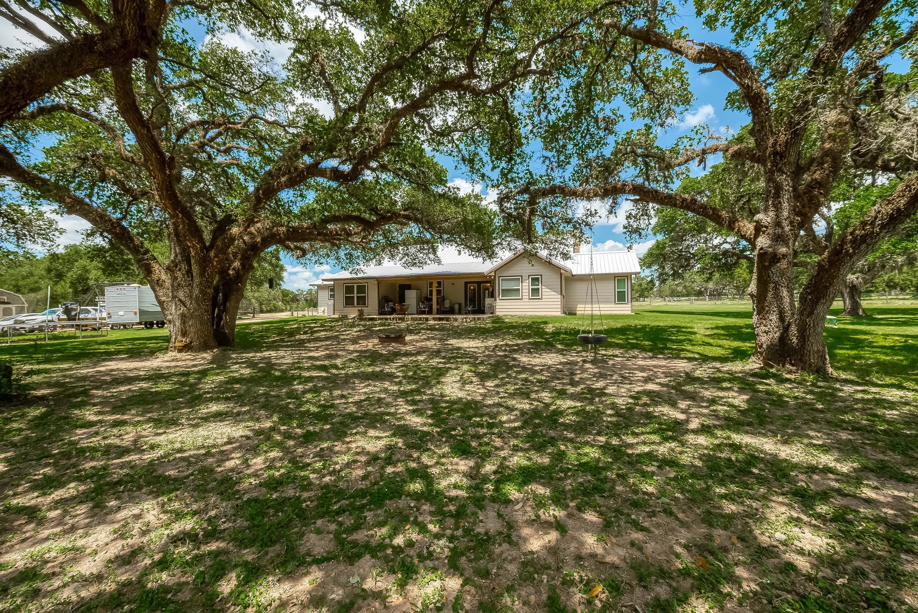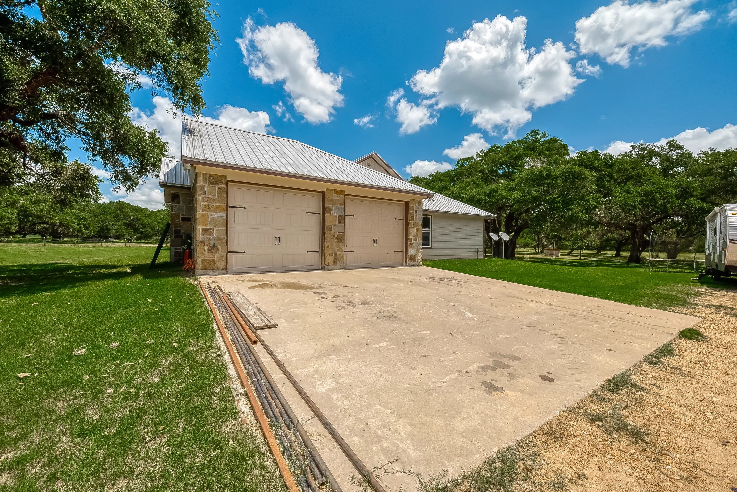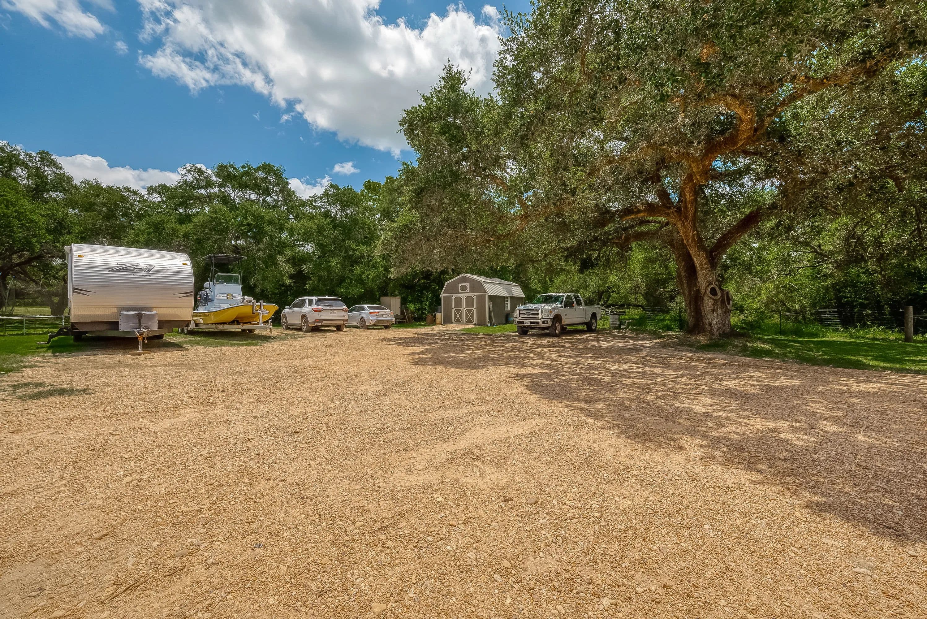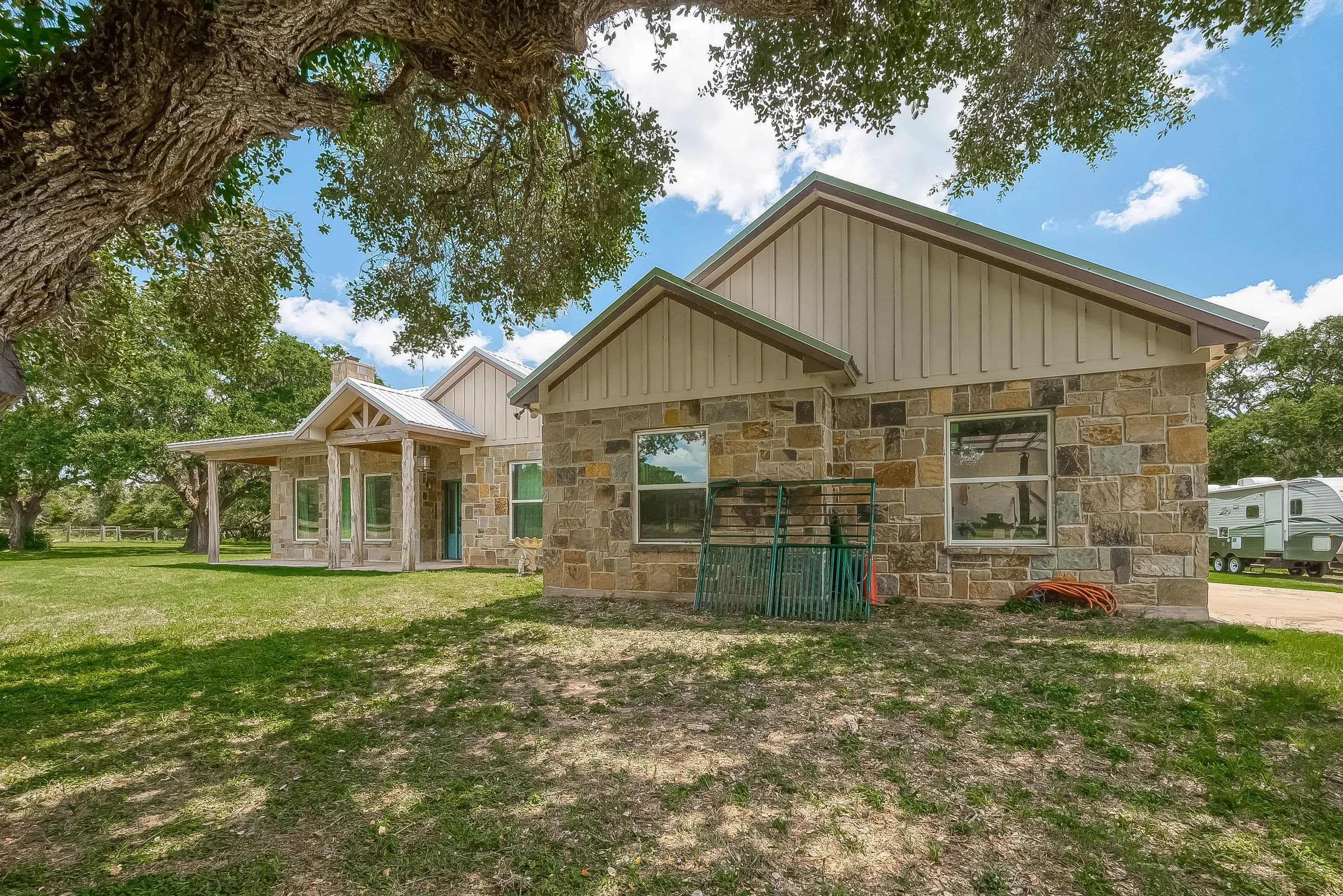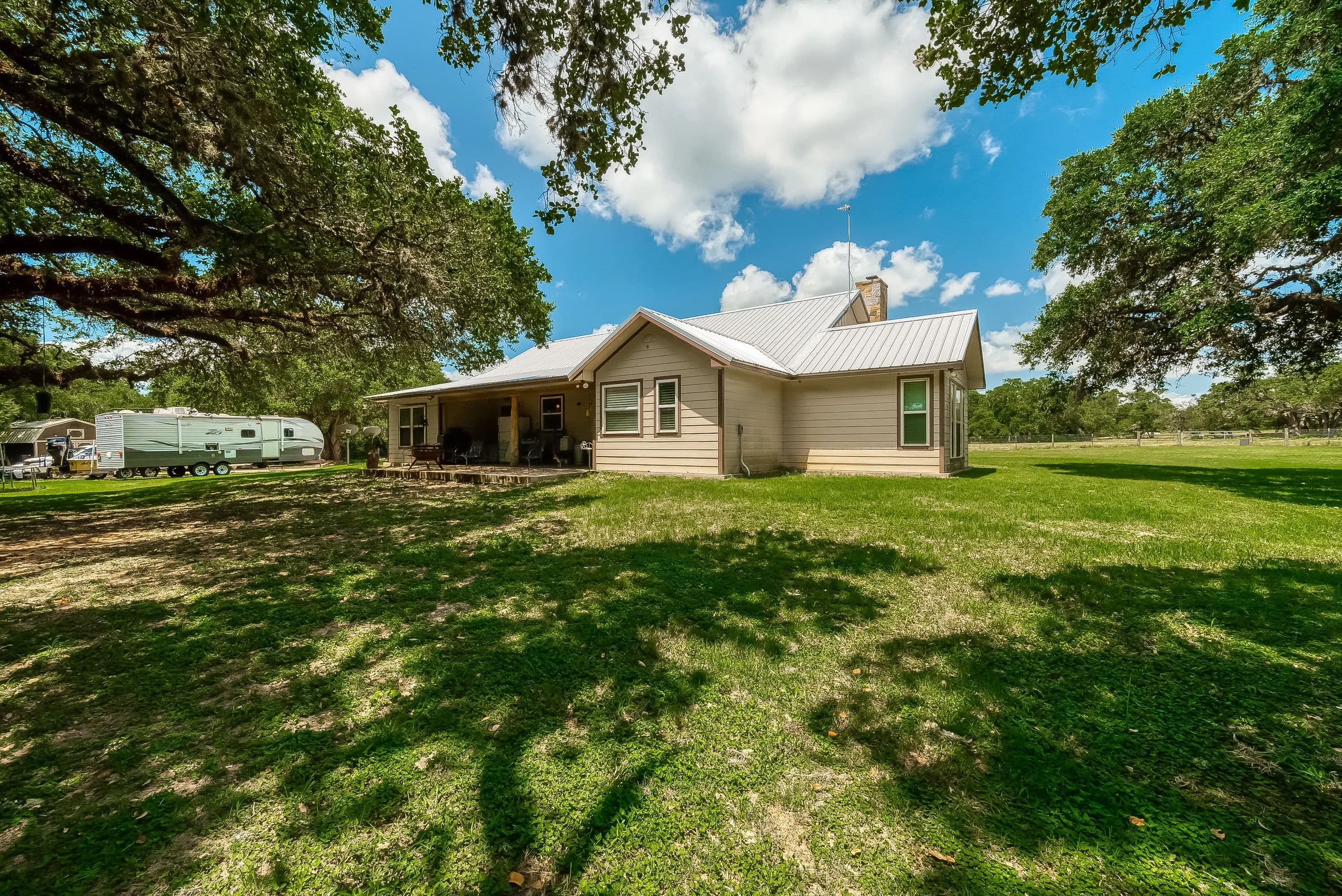 As you enter through the electric gate on Schobel Road you will travel along your private easement access which is fenced on both sides that leads to this fantastic 48 acre Ag. Exempt estate with a main house, guest house, several outbuildings and 3 ponds, all nicely enclosed by a perimeter fence. Located just 7 minutes from the “Big Easy Ranch”. The stone main home, completed in 2015, offers 2324 sq. ft. of living space. The beautiful open concept plan allows for a fantastic living room, formal dining area, an island kitchen with informal dining, a study, 3 spacious bedrooms and 2.5 bathrooms (one is a Jack and Jill style). All is finished with high end finishes and thoughtfully designed to accommodate wheelchairs and for energy efficiency with the Spray Foam insulation. The 1957 built guest home offers 1892 sq. ft. of living space with 2 bedrooms and 2 bathrooms which need updating/repair as has not been lived in for many years. Outside for recreational pleasure, you will find plenty of space to buzz around on ATV’s, tend to cattle or fish in one of 3 ponds. This one is free from flood plains, pipelines and oilfield equipment. Whether you’re looking for a property for full time living, for a weekend or corporate retreat, this one should be the obvious choice. Escape the hustle & bustle of city life! Call Nicola Hammett at 979/733-4594 to schedule your private viewing.