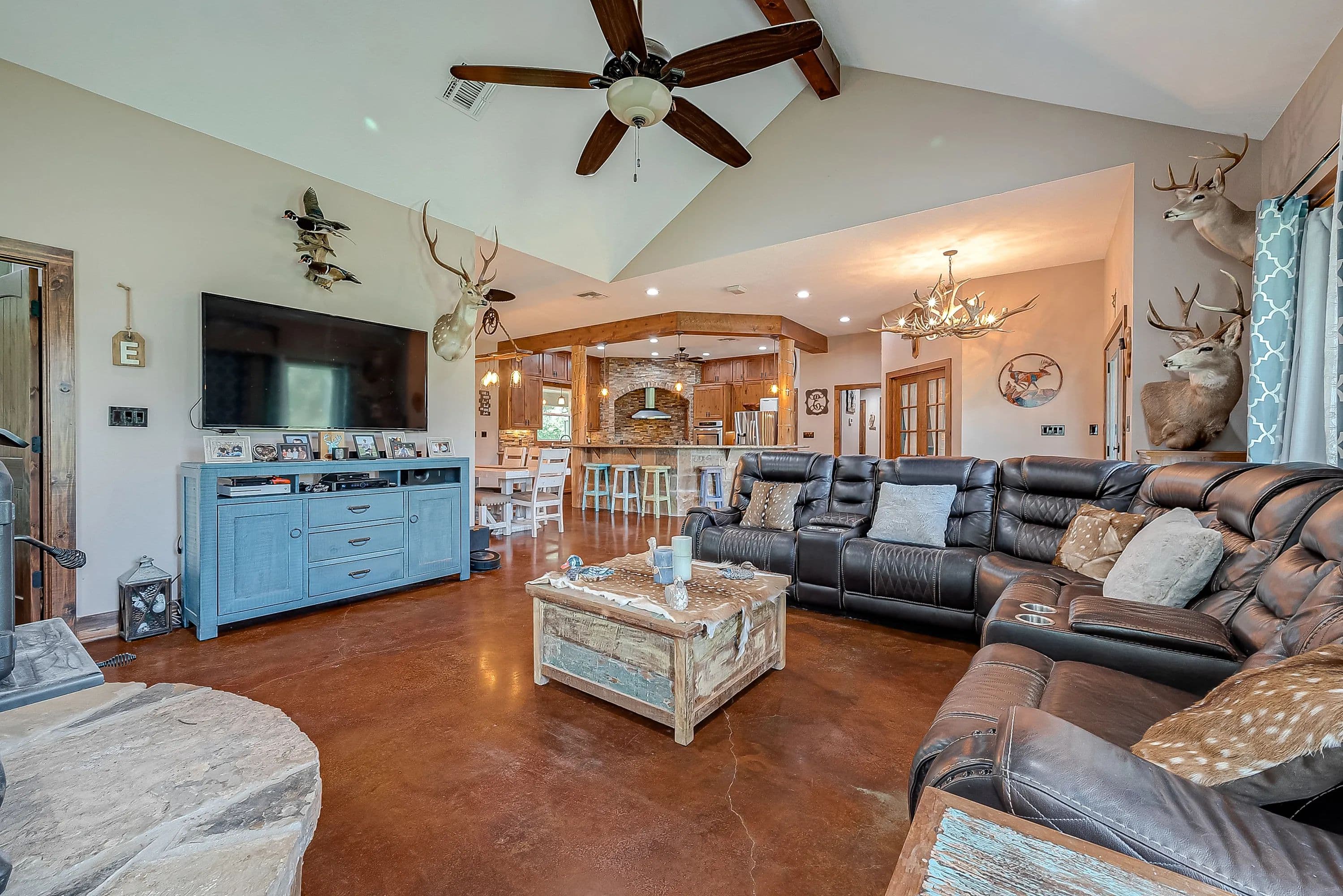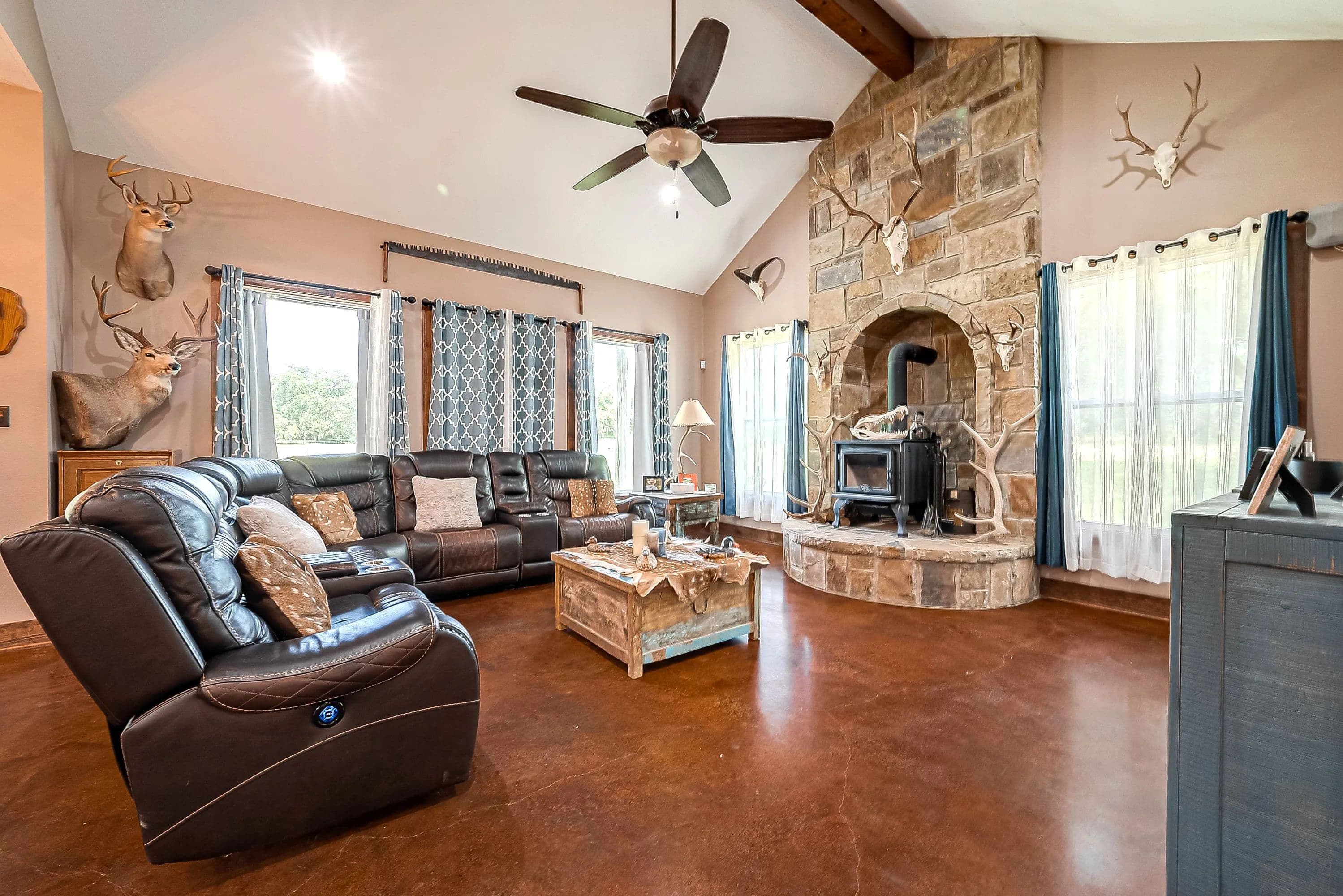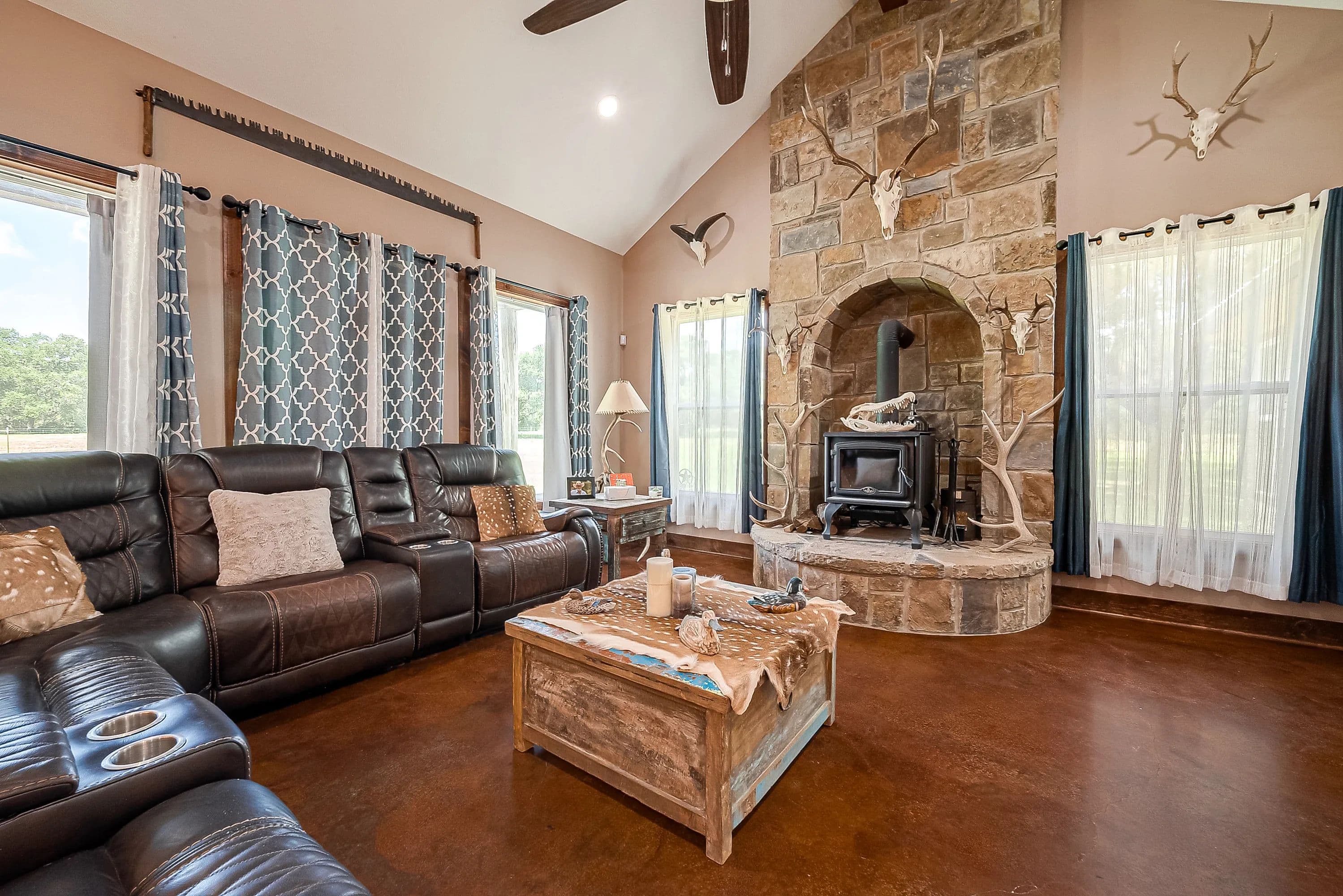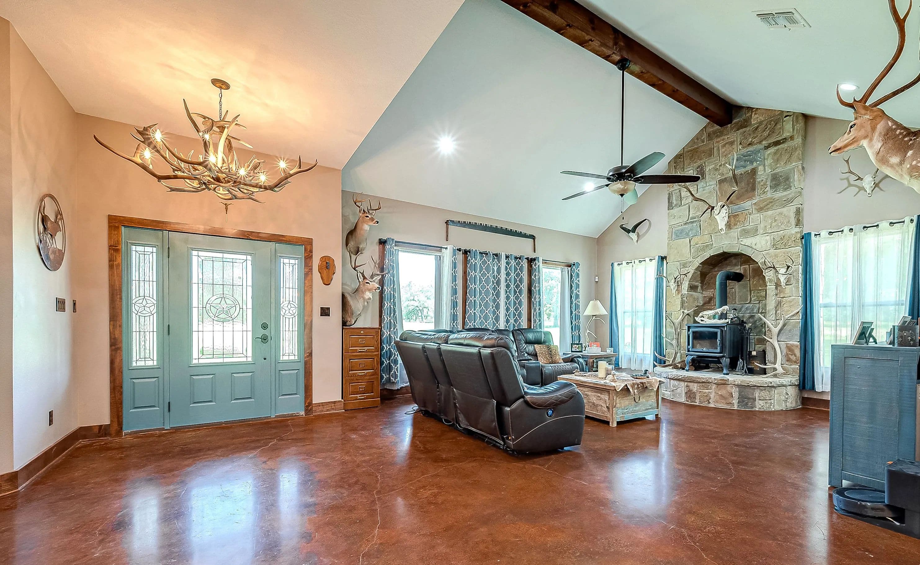 As you enter through the electric gate on Schobel Road you will travel along your private easement access which is fenced on both sides that leads to this fantastic 48 acre Ag. Exempt estate with a main house, guest house, several outbuildings and 3 ponds, all nicely enclosed by a perimeter fence. Located just 7 minutes from the “Big Easy Ranch”. The stone main home, completed in 2015, offers 2324 sq. ft. of living space. The beautiful open concept plan allows for a fantastic living room, formal dining area, an island kitchen with informal dining, a study, 3 spacious bedrooms and 2.5 bathrooms (one is a Jack and Jill style). All is finished with high end finishes and thoughtfully designed to accommodate wheelchairs and for energy efficiency with the Spray Foam insulation. The 1957 built guest home offers 1892 sq. ft. of living space with 2 bedrooms and 2 bathrooms which need updating/repair as has not been lived in for many years. Outside for recreational pleasure, you will find plenty of space to buzz around on ATV’s, tend to cattle or fish in one of 3 ponds. This one is free from flood plains, pipelines and oilfield equipment. Whether you’re looking for a property for full time living, for a weekend or corporate retreat, this one should be the obvious choice. Escape the hustle & bustle of city life! Call Nicola Hammett at 979/733-4594 to schedule your private viewing.