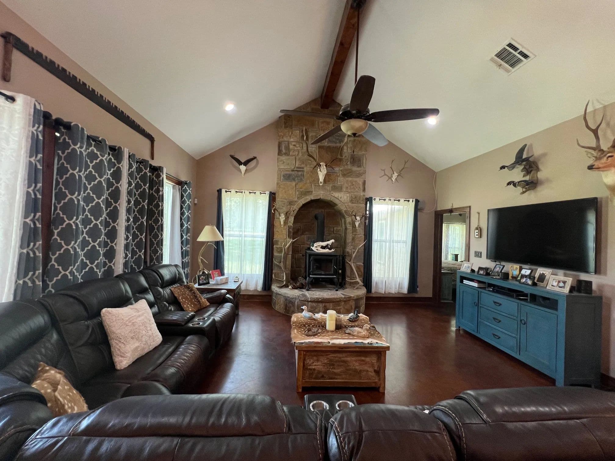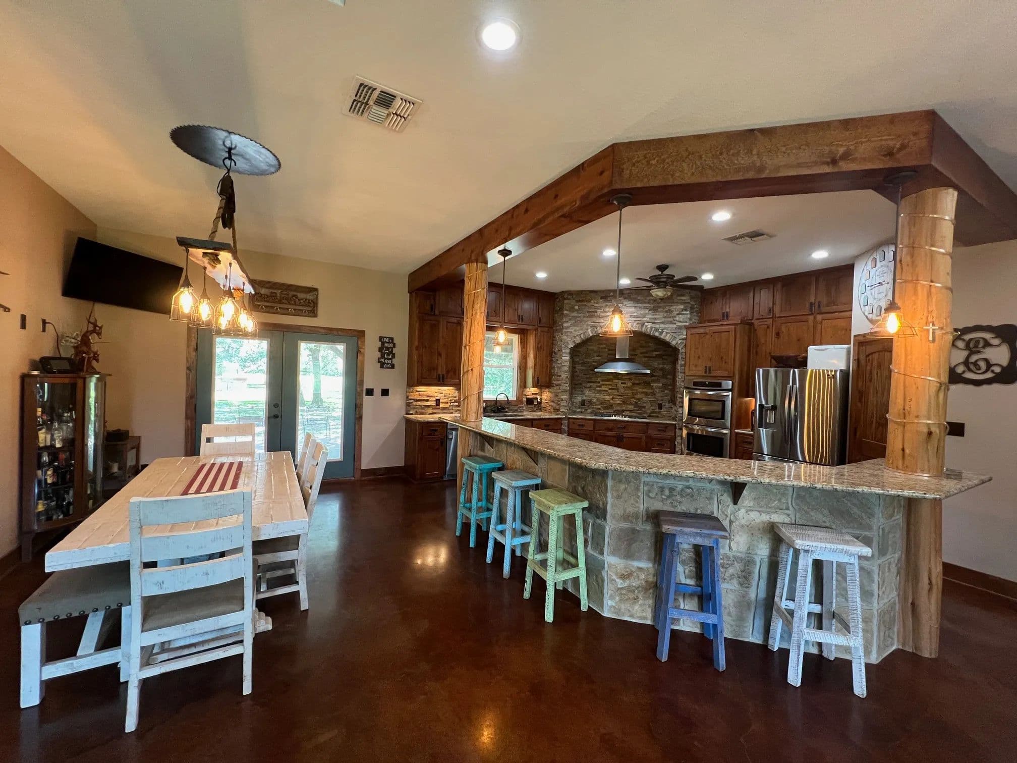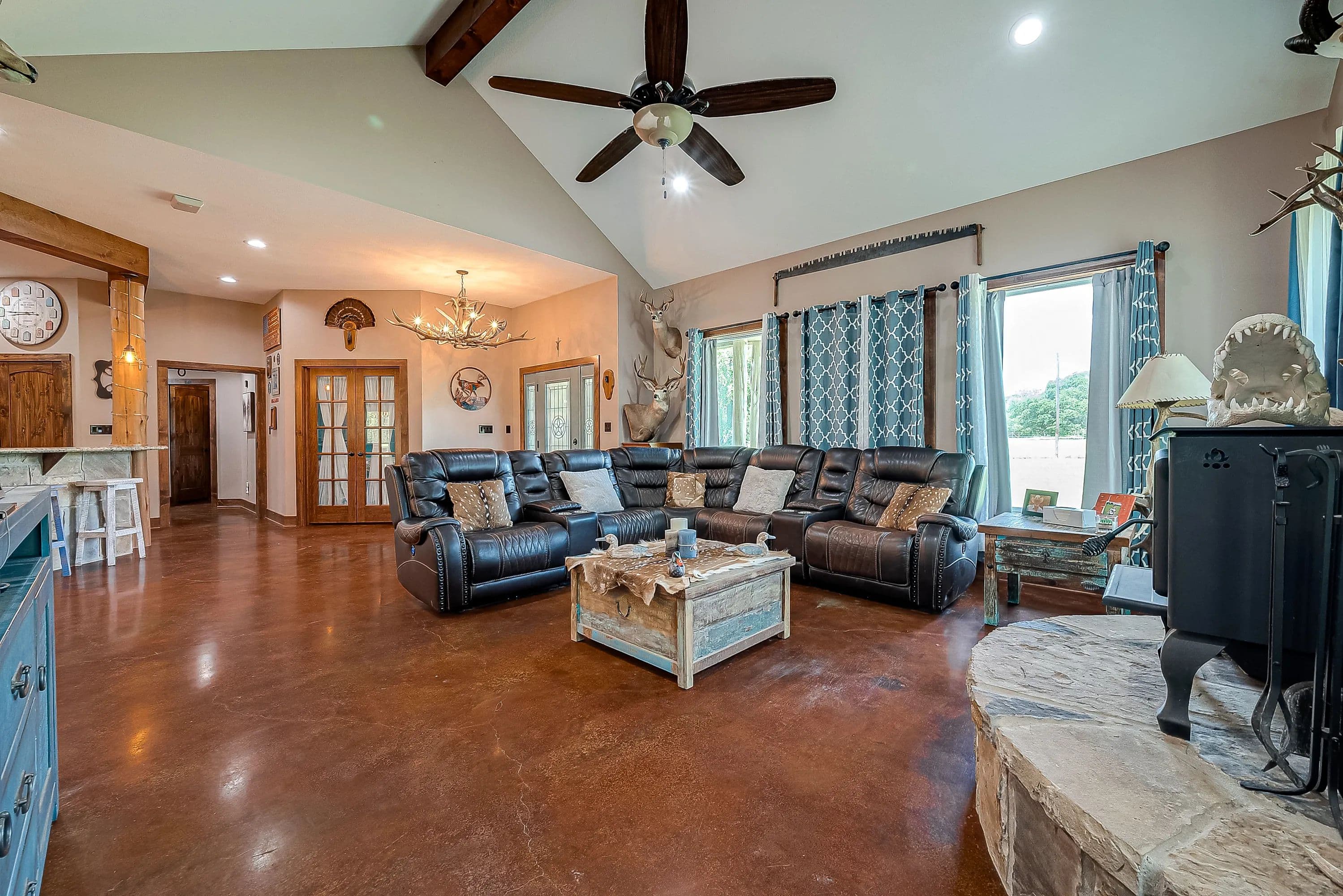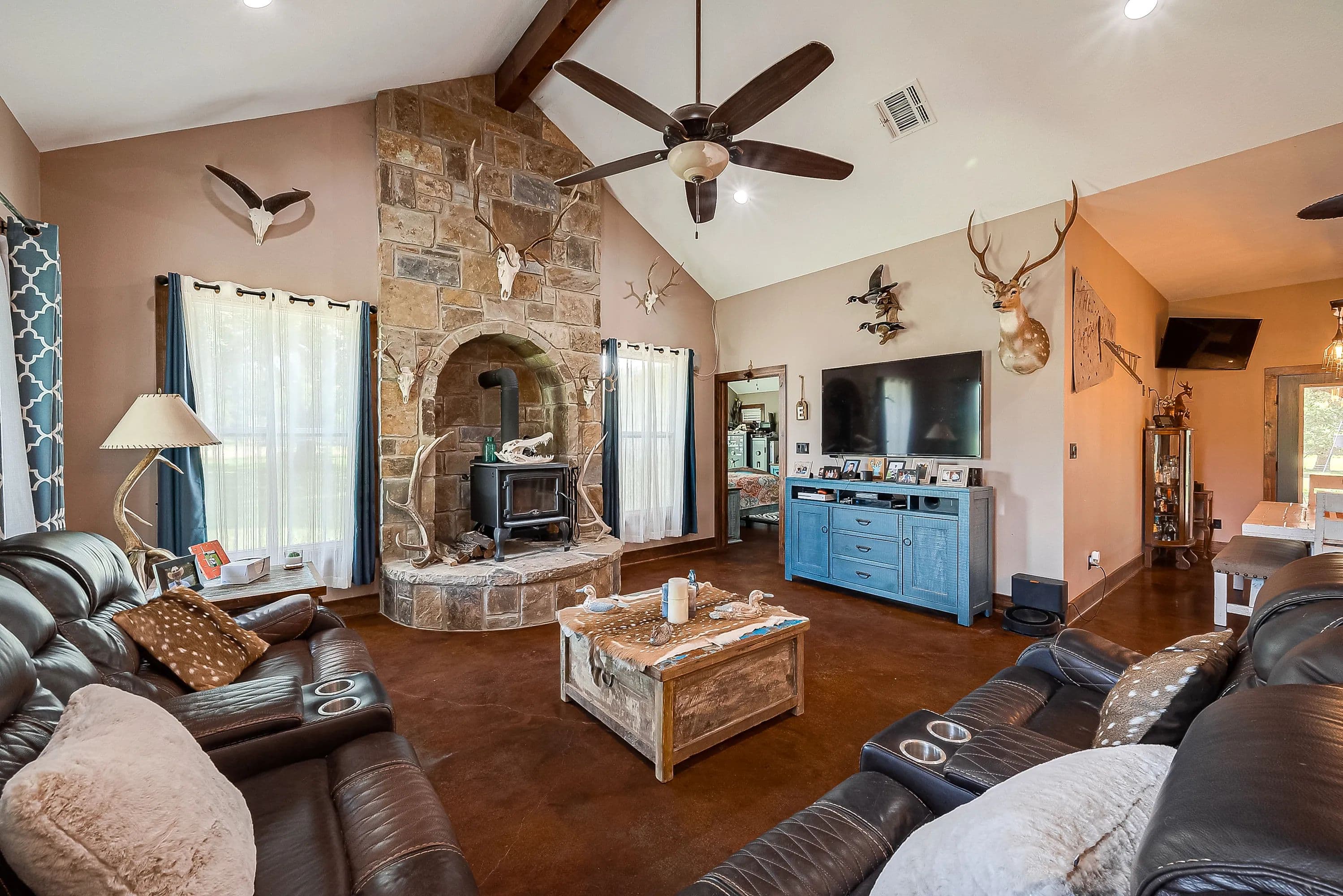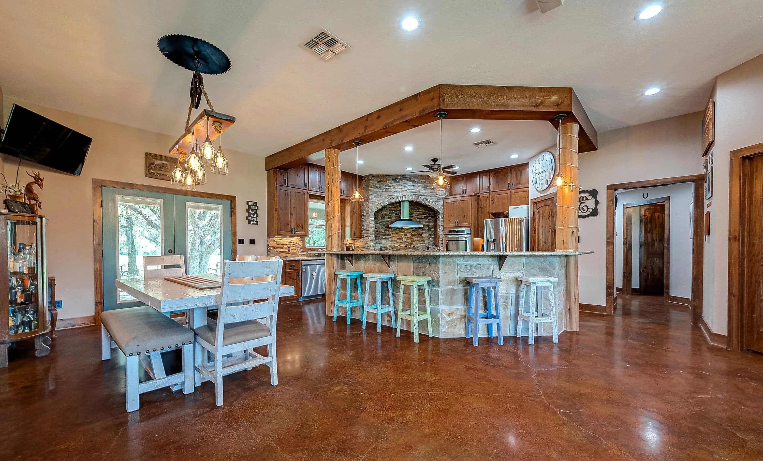 As you enter through the electric gate on Schobel Road you will travel along your private easement access which is fenced on both sides that leads to this fantastic 48 acre Ag. Exempt estate with a main house, guest house, several outbuildings and 3 ponds, all nicely enclosed by a perimeter fence. Located just 7 minutes from the “Big Easy Ranch”. The stone main home, completed in 2015, offers 2324 sq. ft. of living space. The beautiful open concept plan allows for a fantastic living room, formal dining area, an island kitchen with informal dining, a study, 3 spacious bedrooms and 2.5 bathrooms (one is a Jack and Jill style). All is finished with high end finishes and thoughtfully designed to accommodate wheelchairs and for energy efficiency with the Spray Foam insulation. The 1957 built guest home offers 1892 sq. ft. of living space with 2 bedrooms and 2 bathrooms which need updating/repair as has not been lived in for many years. Outside for recreational pleasure, you will find plenty of space to buzz around on ATV’s, tend to cattle or fish in one of 3 ponds. This one is free from flood plains, pipelines and oilfield equipment. Whether you’re looking for a property for full time living, for a weekend or corporate retreat, this one should be the obvious choice. Escape the hustle & bustle of city life! Call Nicola Hammett at 979/733-4594 to schedule your private viewing.