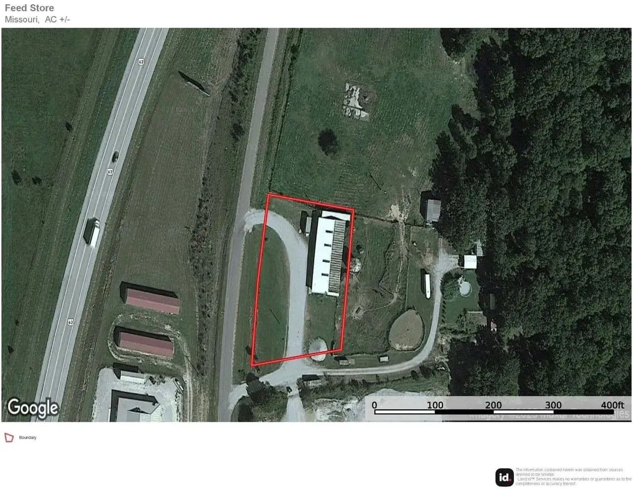 This property currently used as a local feed store is 40 X 100 foot pole barn with concrete floor as well as concrete loading dock. The building has a 20 x 40 store area with an office and a restroom. The building sits on a level lot with lots of frontage on a paved County Road at the Edge of town with visibility from Highway 63. A good circle drive for easy loading and unloading. There are many possibilities for this property, call today to take a look and see this great location!
