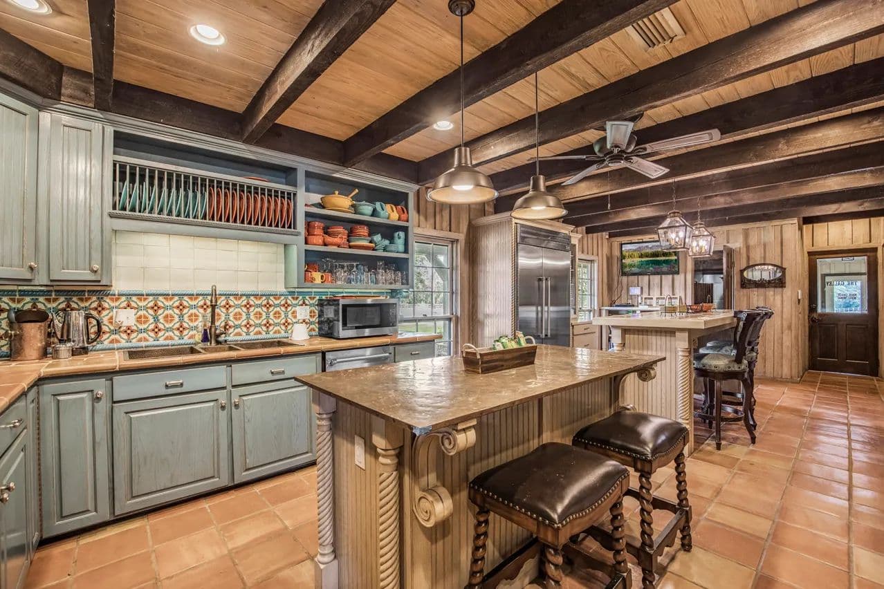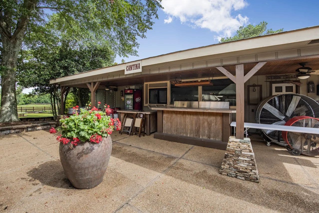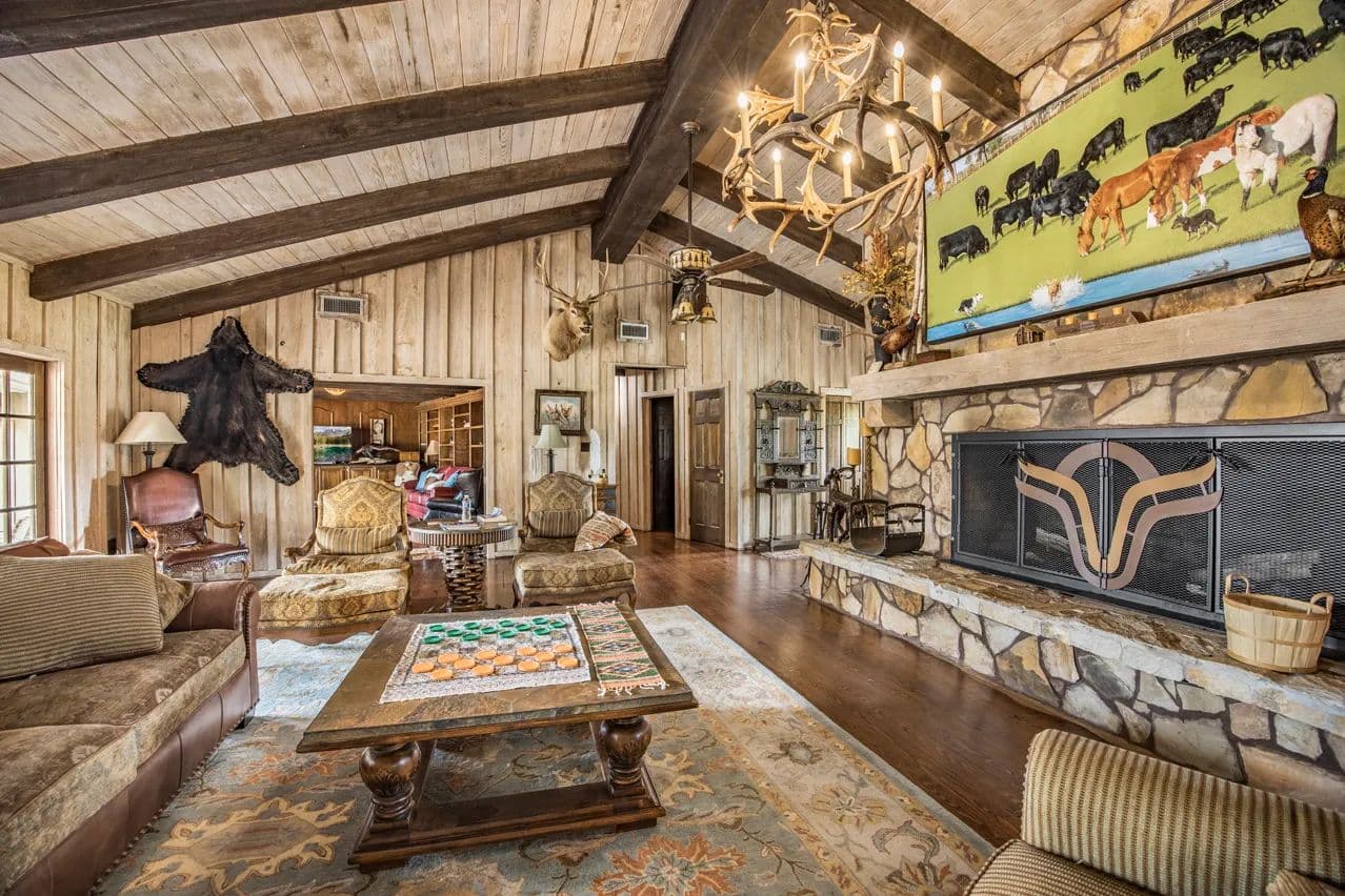 At the center of the ranch stands an 8,863 SF, 9 bedroom lodge, designed for both grandeur and comfort. A soaring stone fireplace, a stylish bar, and exquisitely appointed suites make it an ideal private estate or corporate retreat, offering a perfect balance of rustic charm and modern elegance. Behind the lodge is a fabulous stone veranda that includes a commercial kitchen, stone fire pit, and picturesque views of the countryside.