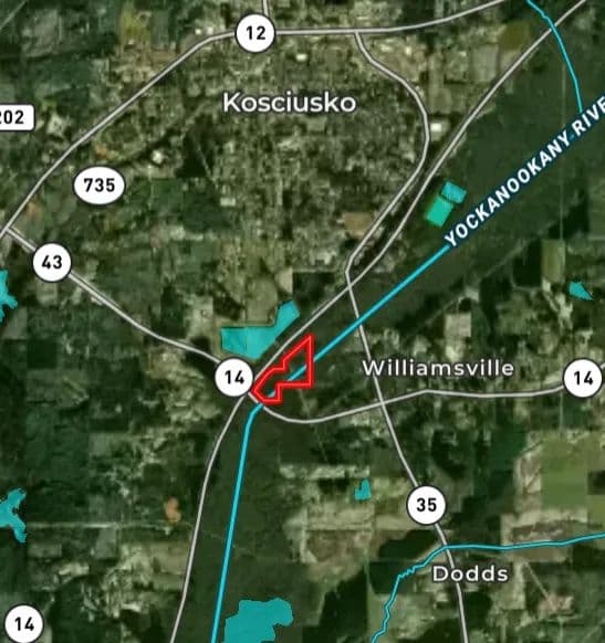Bordering the historic Natchez Trace Parkway and the Yockanookany River, this property is a prime location for hunting, recreational activities, or simply escaping into the beauty of unspoiled nature. Whether you’re looking to hunt, fish, or create lasting memories surrounded by pristine wilderness, this premium piece of land is ready to become your outdoor sanctuary. Kosciusko is less than four miles away, and Madison is approximately 57 miles south. Disclaimer: There is no deeded access.