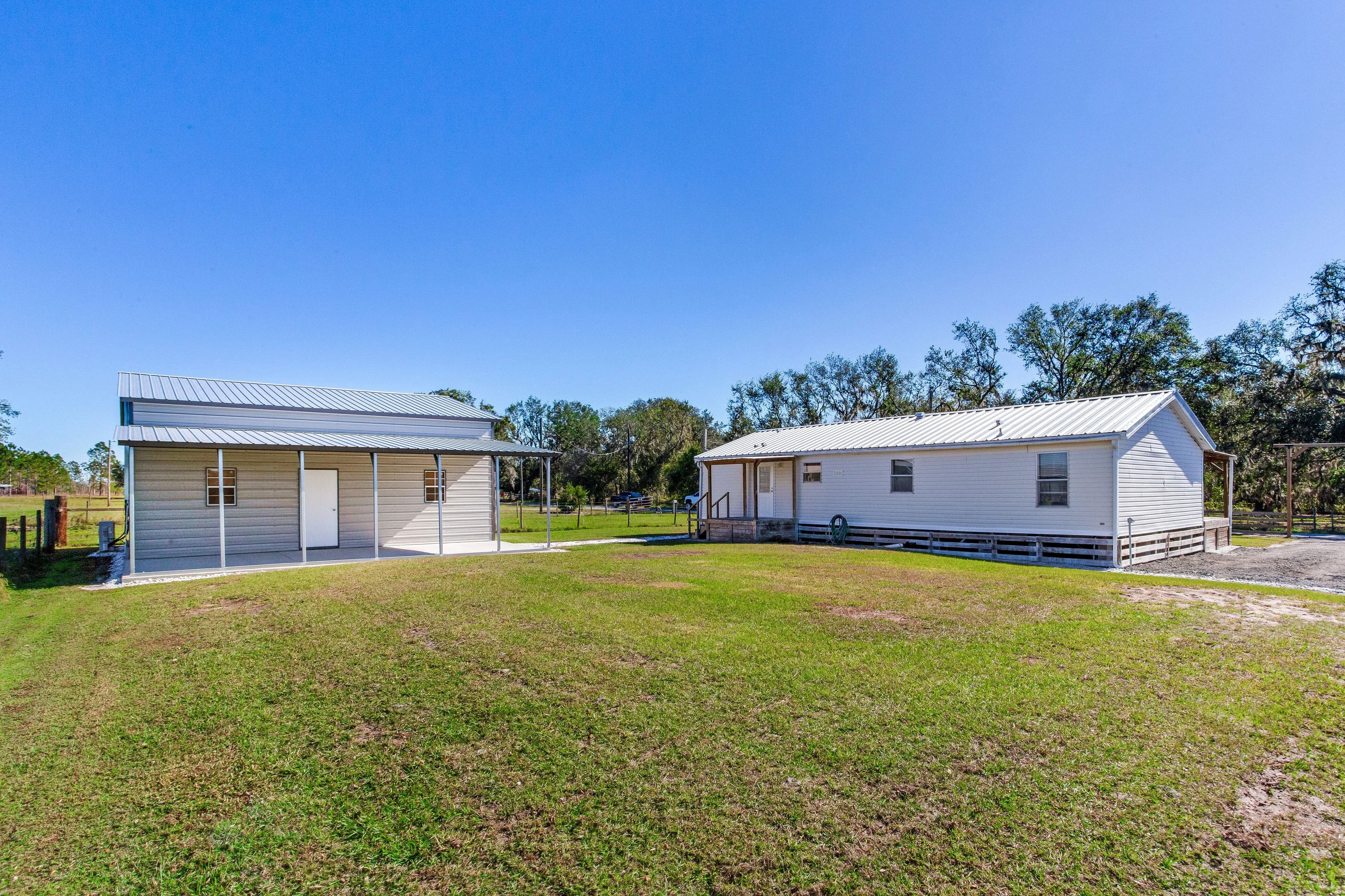 Nestled at the end of a secluded private road, this unique property offers unparalleled privacy and serenity. Situated on 12± acres, this estate features two homes, making it ideal for multi-generational living, rental opportunities, or a spacious guest retreat. These are the only residences on the road, surrounded by over 10,000 acres of undevelopable land, ensuring complete seclusion and a serene, private lifestyle. The improvements on this fully perimeter fenced property consist of a 3-bedroom, 2-bathroom manufactured home (1,195 SF), a 3-bedroom, 1 bathroom block home (1,066 SF), an insulated and air-conditioned metal building (30’x31), with a 12’x31’ lean, 30’x20’ pole barn, and 2 wells and 2 septic tanks. This property is a rare sanctuary, filled with abundant wildlife and endless possibilities for outdoor recreation. Whether you are seeking a private family compound, peaceful retreat, or an investment opportunity, this rare property offers flexibility, while just 15 minutes to the amenities of US 301 and 20 minutes to I-75.