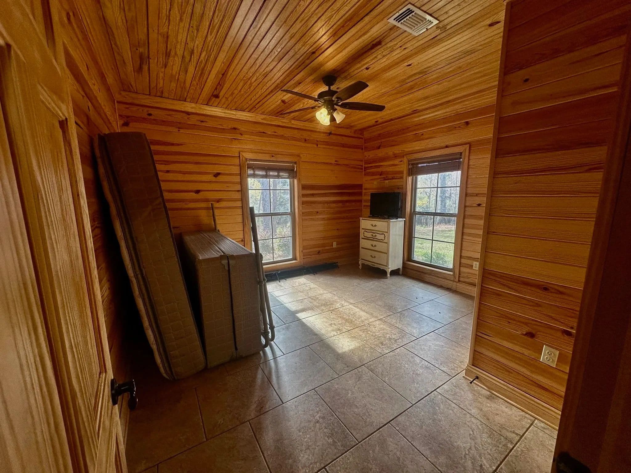 4 Bed 3 Bath House for sale with 125+/- acres on Kitterlin Bay in Jena, LA. The house sits on top of a hill overlooking Kitterlin Bay and offers 125 acres of hunting land with it. The house is 2,642 sq ft and was built in 2016 from the pine cut on this property. There is a large living room and kitchen area with glass windows overlooking the Bay. There are 30 acres of mature select cut pine around the house with the other 95 acres being 12+ year-old pine plantation. A pipeline runs through this property which is currently planted in food plots with multiple box stands and feeders for hunting. Rarely do you find a house this size with enough land to hunt and manage timber. Kitterlin Bay Hunting Club owns over 4,000 acres adjoining this property. The new owner of this house will have a chance to join this club which would give you access to duck, turkey, and deer hunting as well as fishing. There are so many opportunities that come with buying this house. The boundaries on this property will be just short of the water’s edge around Kitterlin Bay. If you want to learn more and would like to look at this property, schedule your own private showing today!