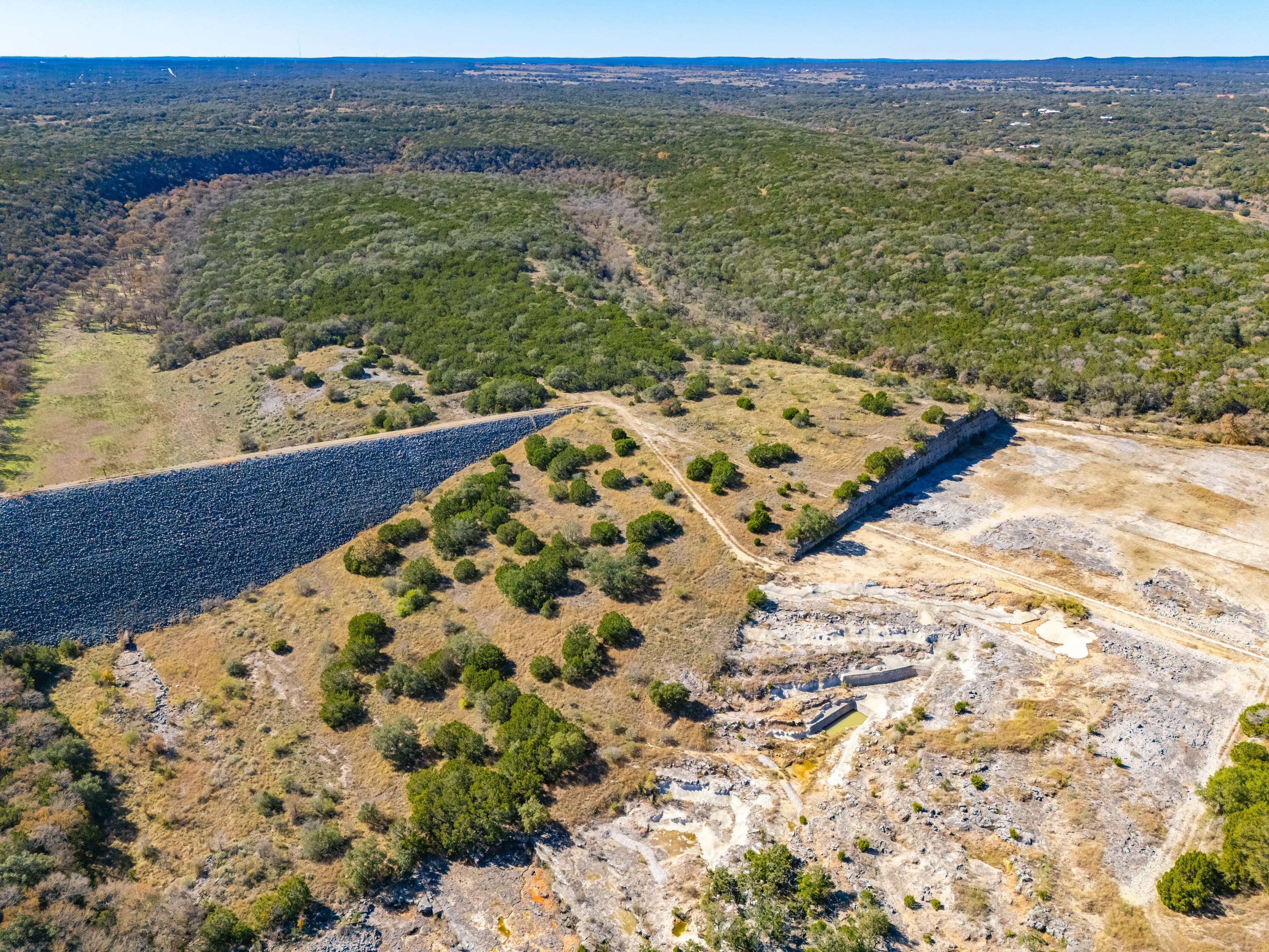 The ranch offers water wells, troughs, roads, some pens, fencing and existing electrical service. One intriguing additional improvement on the ranch is the Storey-Robinson Dam on Purgatory Creek. The dam is one of several in the broader area. It was constructed in 1981 to both protect the citizens of San Marcos and help to recharge the Edwards Aquifer. Aside from doing its job during flood events, the dam is an incredible view location on the ranch and provides easy access to other portions of the ranch.