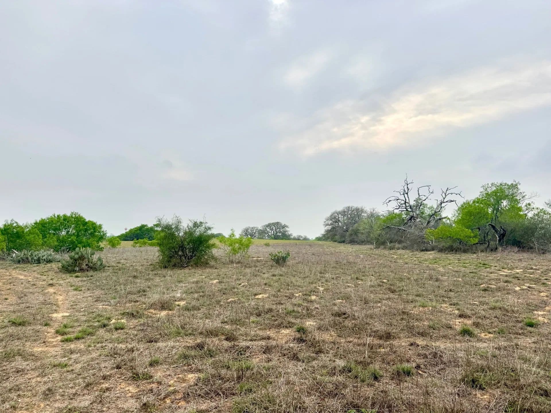 This is a nice ranch that is across from Poteet High School on paved Horton Road. It is in a perfect location to have easy access to the city and the schools, but not be in the city limits. You can see the Poteet strawberry water tower from the ranch. (it is in one of the pictures). There is a good combination of field land and brush country with nice tree cover. There are multiple pastures with good soil. There is a nice mix of Mesquites and Live Oaks.
