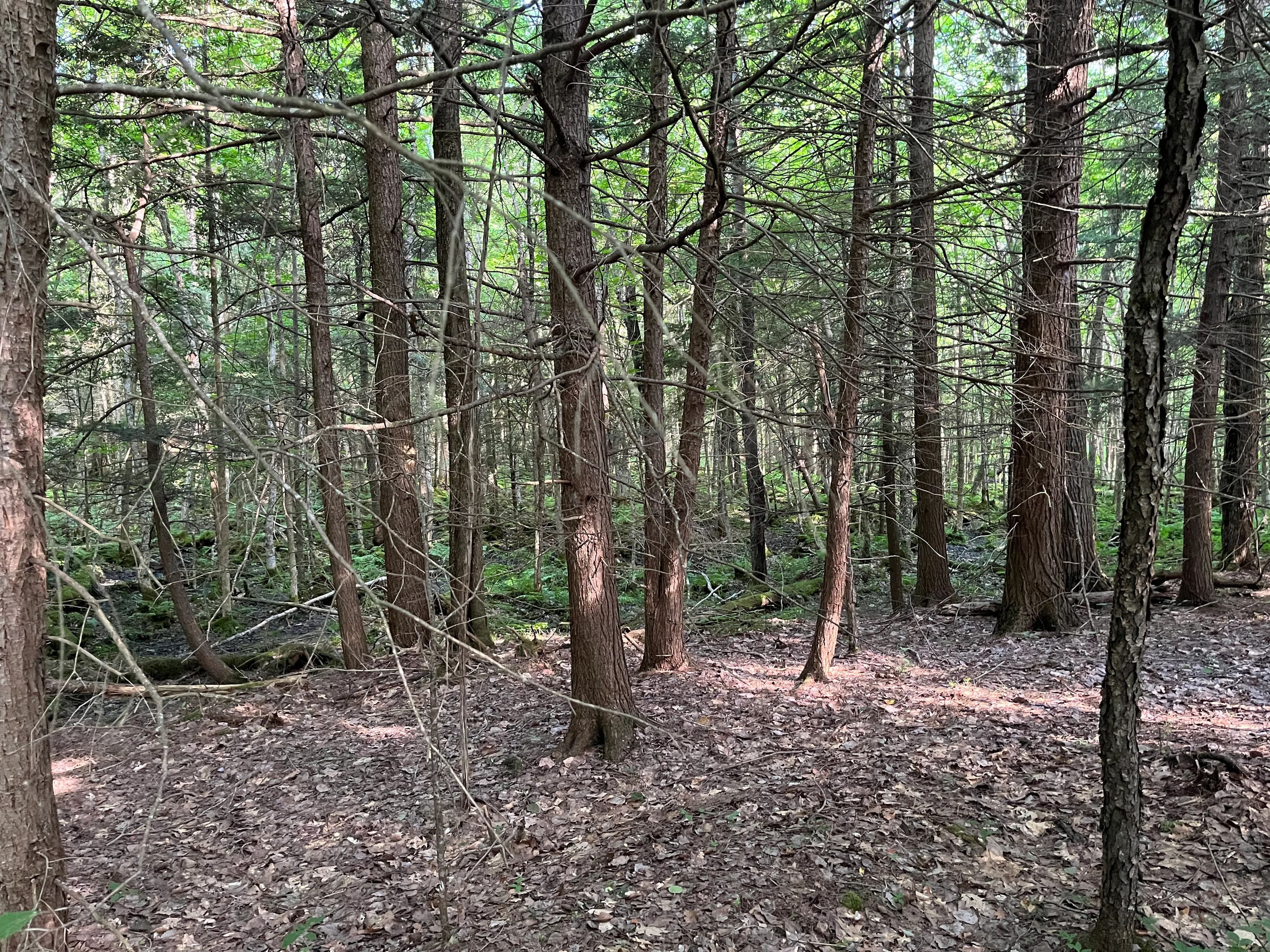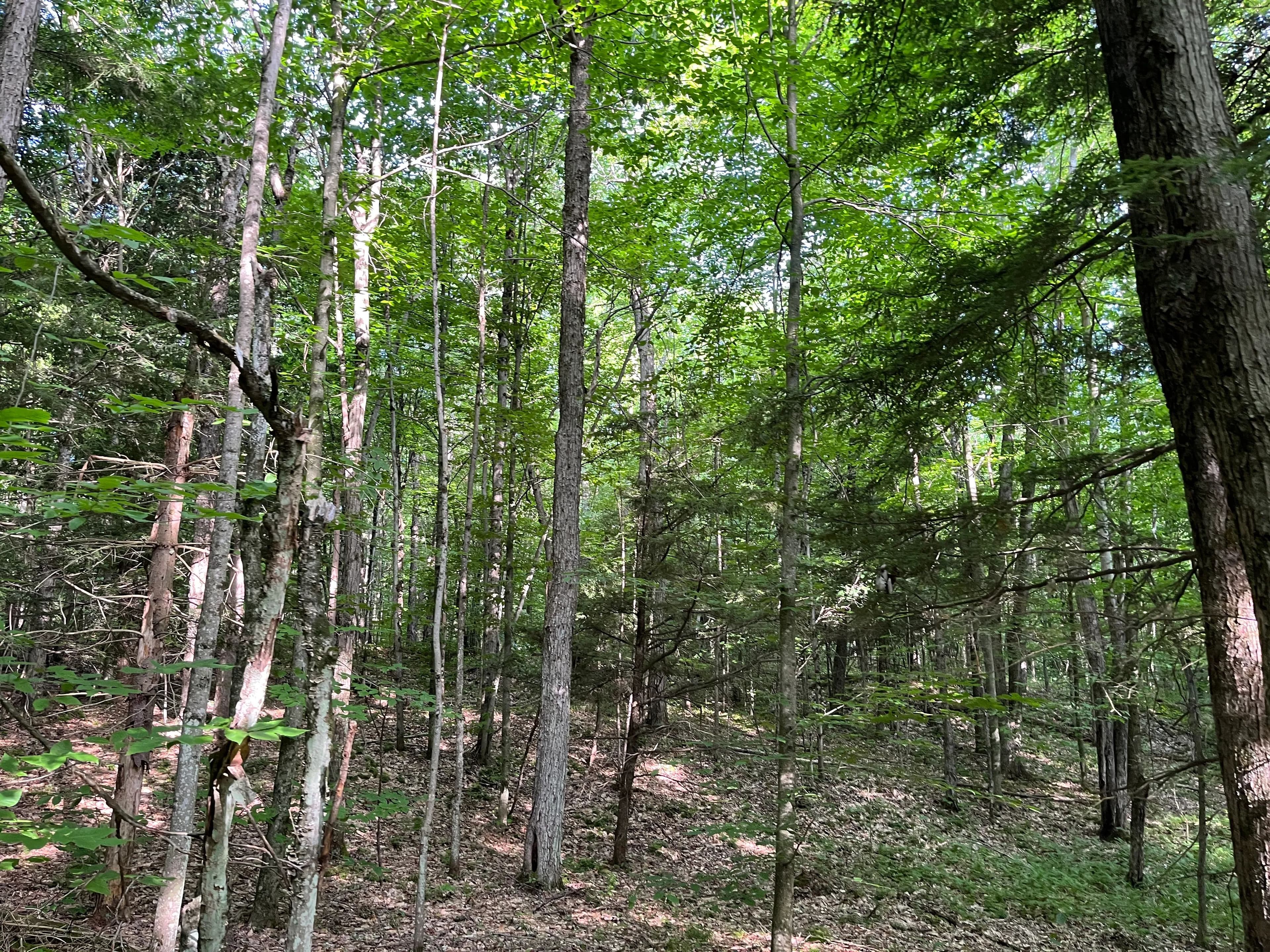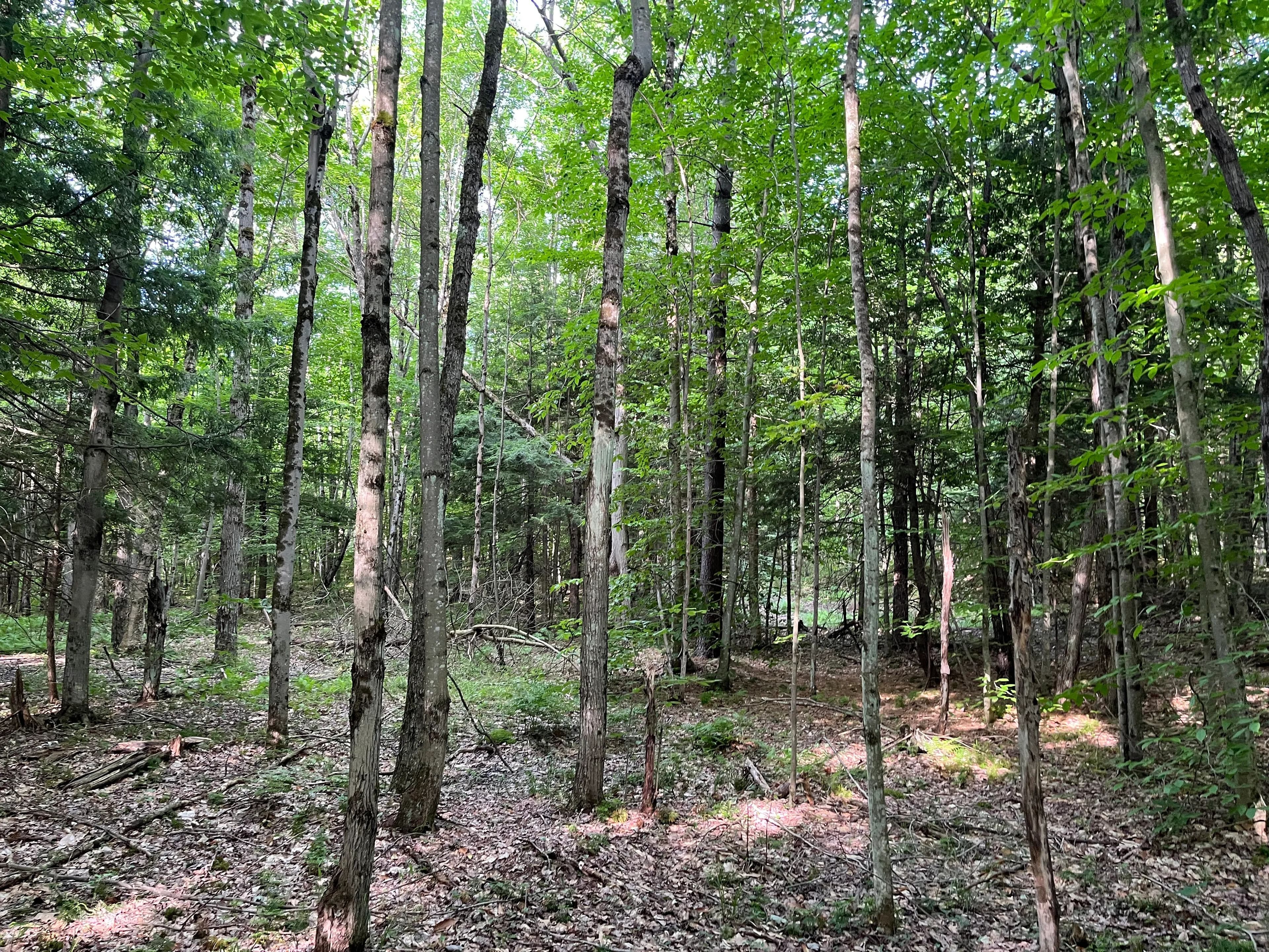 The property has rolling ridges, rock outcrops, and a beautiful hardwood forest with mixed hemlock and pine trees. The lot was recently surveyed, and the boundary lines are well marked. This is a great property to use as a base for all your outdoor activities.