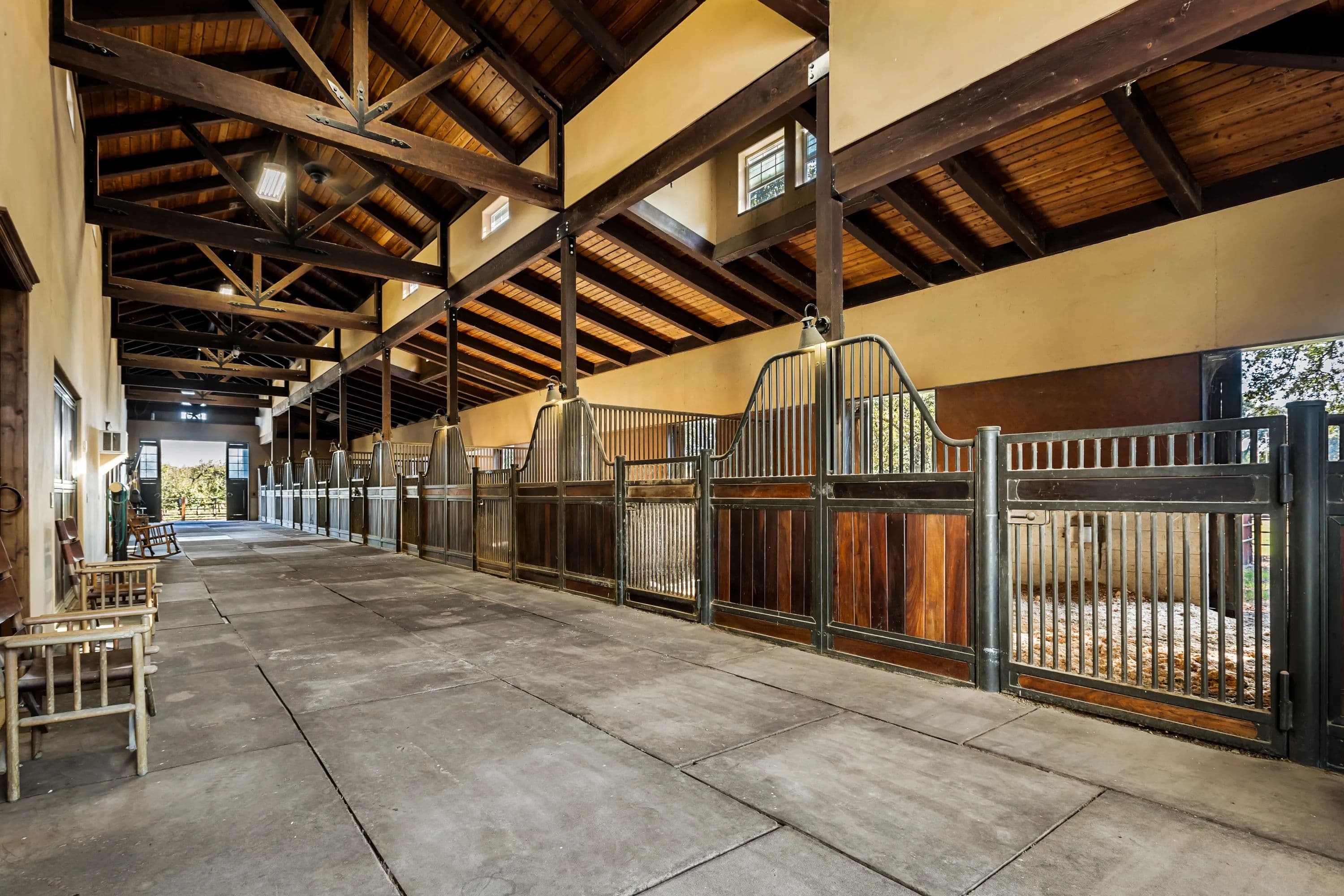 • Magnificent horse barn crafted from Brazilian hardwood with European-style stall fronts.