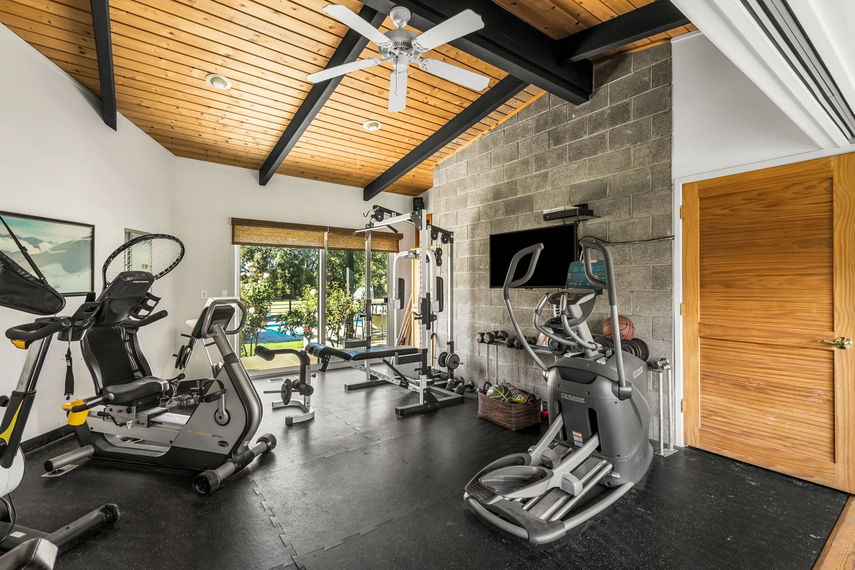 For the equestrian enthusiast, Legacy Ranch features a magnificent horse barn crafted from Brazilian hardwood and equipped with European-style stall fronts, runs for each stall, a pivot wall tack room, a wash rack, dedicated hay and feed rooms, and a comfortable lounge with living quarters. This barn is a dream come true for horse lovers, combining practicality with luxurious design.