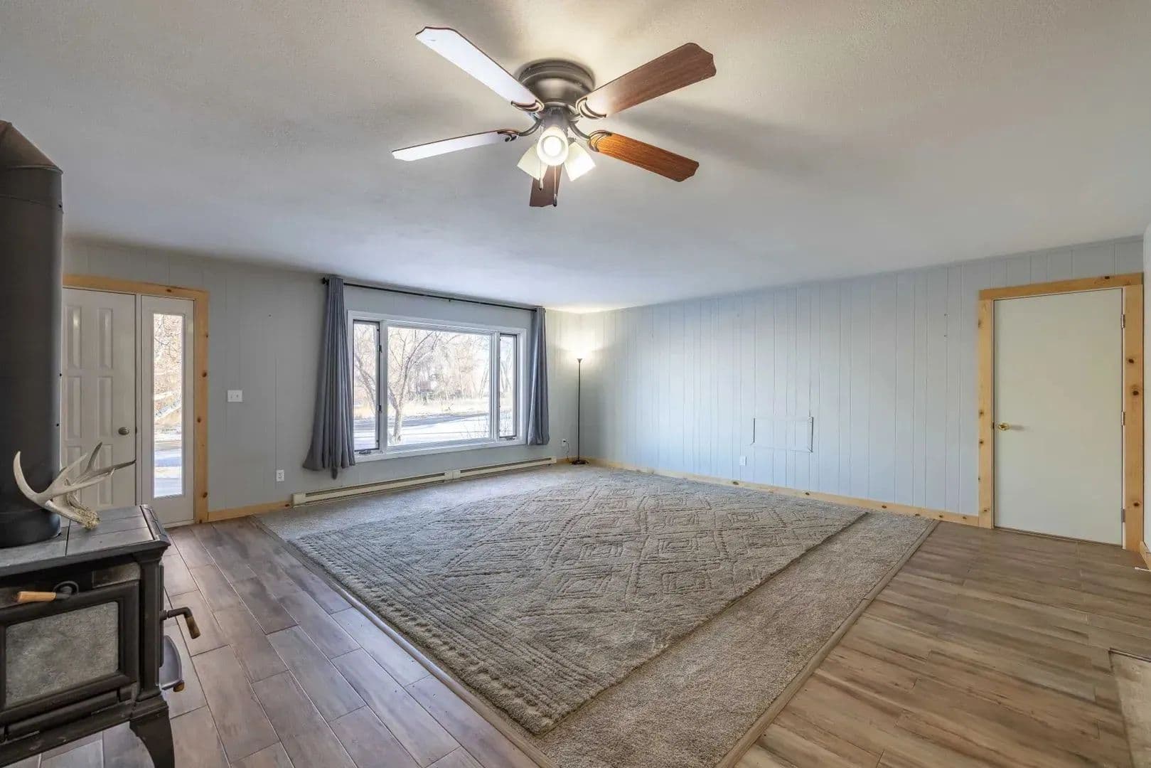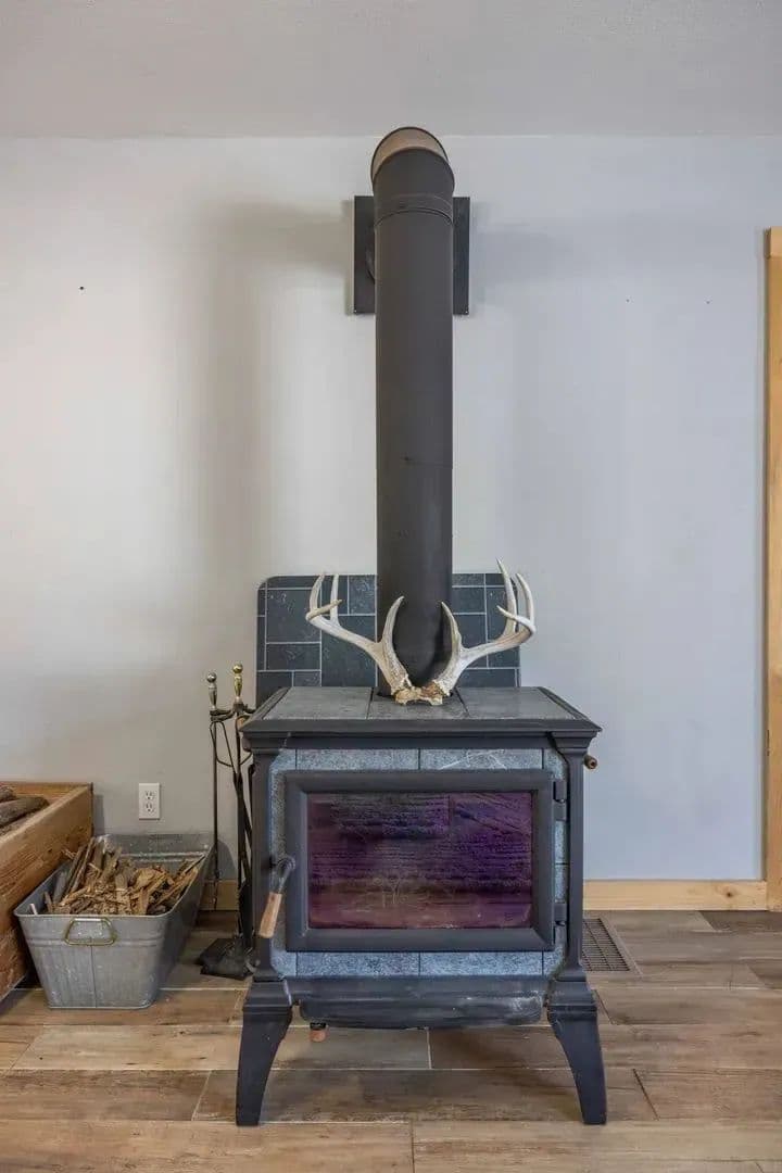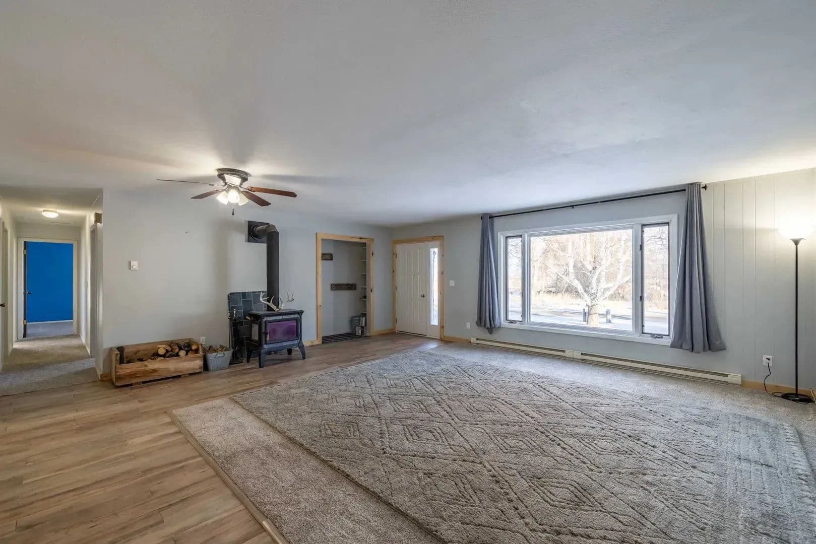 Improvements The bright white kitchen is equipped with newer stainless steel appliances, counter seating, and an adjoining dining area. Newer flooring runs throughout the home and large windows fill the living spaces with natural light. A cozy wood-burning stove adds warmth and character to the main living area.